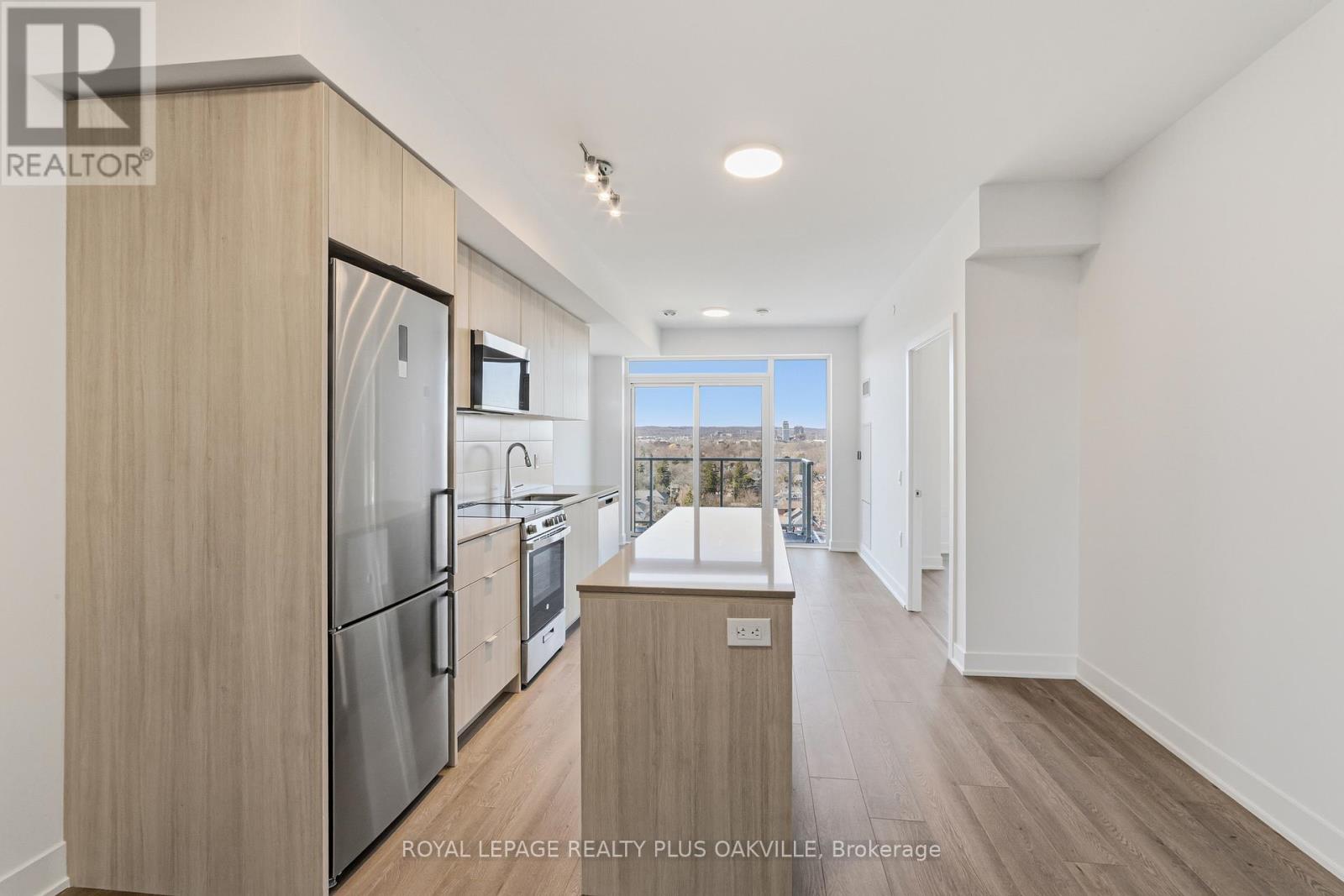 Experience modern living in this brand-new 1-bedroom suite at Martha James, Mattamy's newest boutique development in the heart of downtown Burlington. This never-lived-in condo features a sleek kitchen with a contemporary island, SS appliances, and modern finishes throughout. Additional lighting enhances the bright, open-concept layout, creating a functional and inviting space, perfect for professionals, commuters, or anyone seeking a vibrant urban lifestyle. The bedroom features a walk-in closet and a spacious bathroom with a contemporary bath package, built-in linen shelving and in-suite laundry, offering both comfort and practical storage. Ideally located just steps from the lake, Spencer Smith Park, the waterfront trail, charming cafés, restaurants, shops, and transit, this suite offers exceptional walkability and everyday convenience. Whether you're enjoying the pier, meeting friends nearby, or exploring downtown, everything is right at your doorstep. Martha James elevates everyday living with a modern lobby and 24-hour concierge, along with incredible amenities including a yoga studio, fitness center, co-working space, loft lounge, party room, and a private dining area. Residents can unwind or entertain on the beautiful rooftop terrace featuring outdoor BBQs and a community garden. For added convenience, the building also offers a secure mail room, parcel lockers, and a dedicated pet spa. With premium finishes, top-tier amenities, and an unbeatable location, this brand-new suite offers an exceptional leasing opportunity in one of Burlington's most desirable new developments. As an added bonus, there is an EV Charger conveniently located at your very own parking spot. (id:64974)