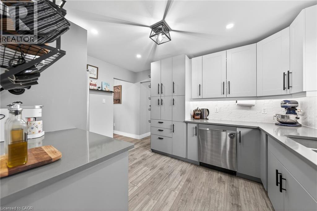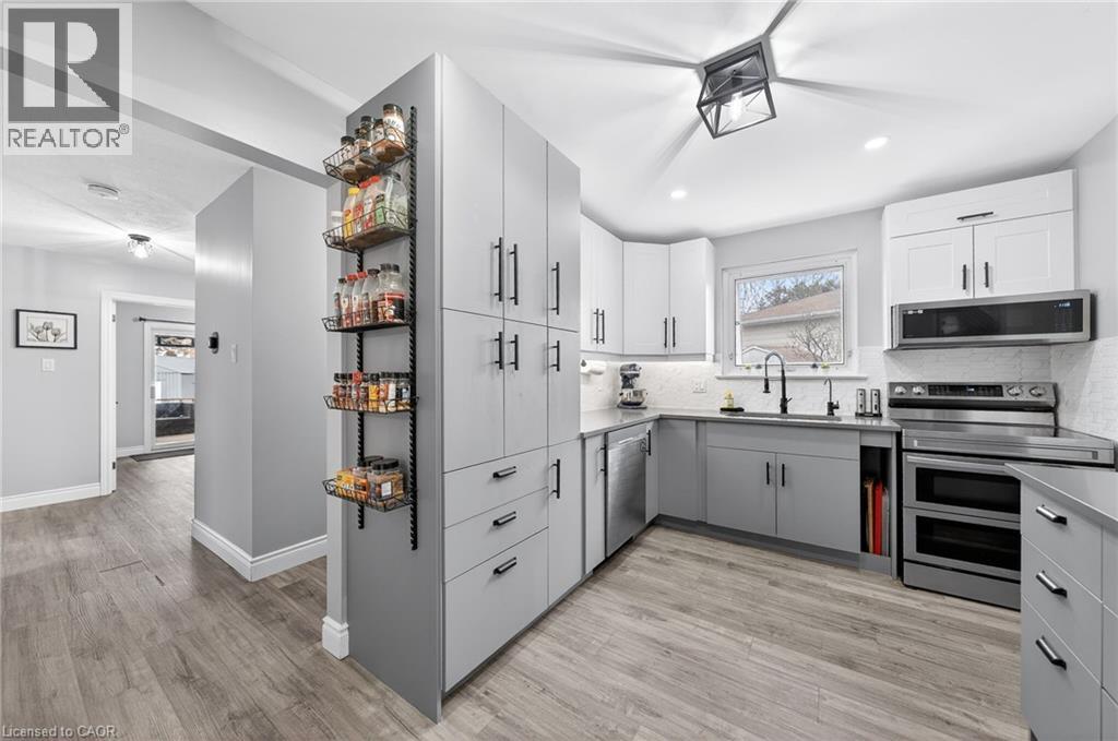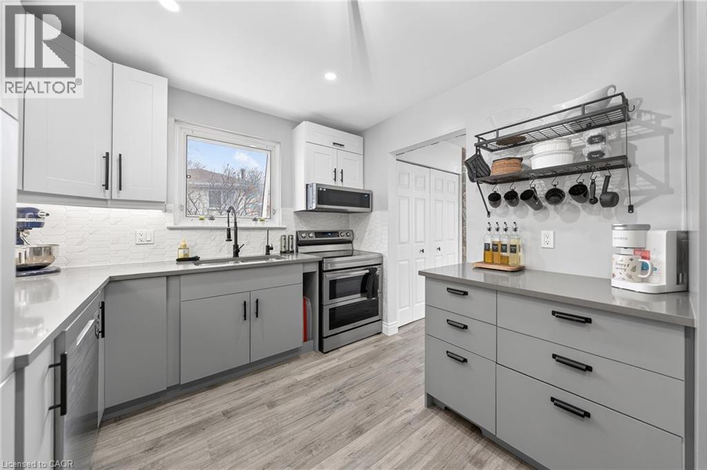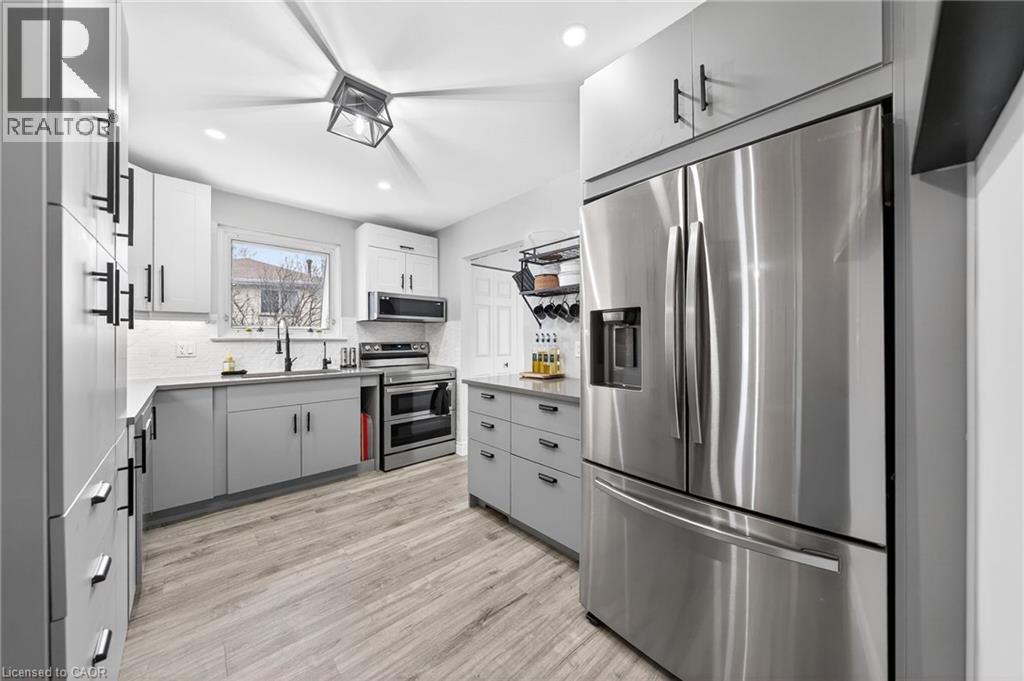 ONE-FLOOR LIVING | NO REAR NEIGHBOURS | IN-LAW POTENTIAL | $70k in upgrades! A home tells a story—and this one is ready for its next chapter. Set on a quiet, family-friendly street in desirable Preston, this beautifully updated bungalow offers the perfect blend of comfort, flexibility, and lifestyle. Backing onto no rear neighbours, you’ll enjoy rare privacy while still being just minutes from everyday essentials. Enjoy your morning coffee or evening time unwinding under your protected deck, listening to sounds of nature in your special retreat. Thoughtfully updated in 2022 ($70k in upgrades), the heart of the home is a stunning custom kitchen featuring quartz countertops, stylish backsplash, stainless steel appliances, and modern finishes throughout. New flooring, baseboards, lighting, and updated electrical, and new furnace & A/C mean peace of mind for years to come. Designed for effortless main-floor living, the layout includes 3 bedrooms (one currently used as a home office with walkout to a covered deck), a new 4-piece bath (2026), a full dining room, and a bright, welcoming living space. The separate side entrance opens up incredible potential in the lower level—ideal for multi-generational living or future income opportunities. Featuring a spacious rec room with gas fireplace, laundry, 3-piece bath, and additional rooms, the space is ready for your vision. Step outside to a private backyard retreat, complete with a covered deck and an impressive 12’ x 20’ detached shed—perfect for a workshop, studio, hobby space, or ultimate retreat. Located just minutes from Riverside Park, Cambridge Memorial Hospital, Cambridge Centre, and quick access to Highway 401, this home offers unmatched convenience in a quiet, established neighbourhood. Whether you’re upsizing, downsizing, or investing—this is a home that adapts to your lifestyle. (id:64974)