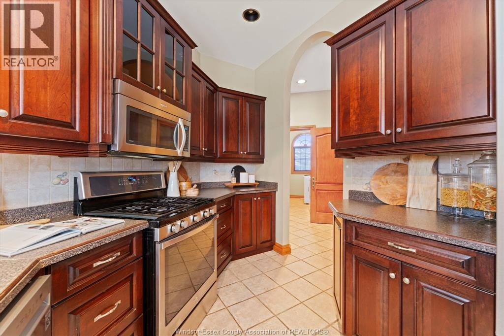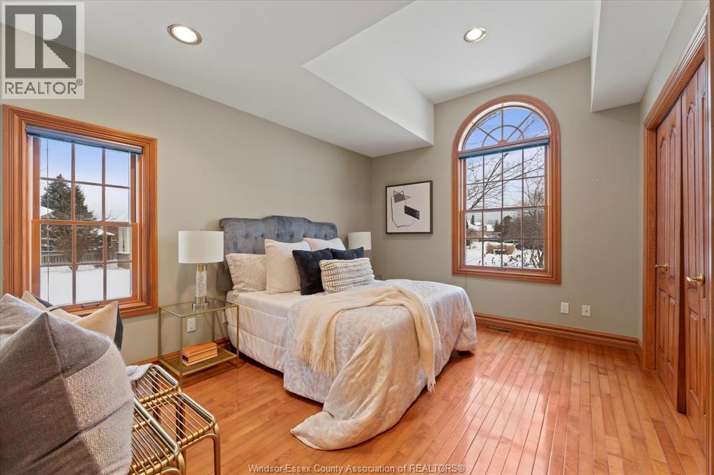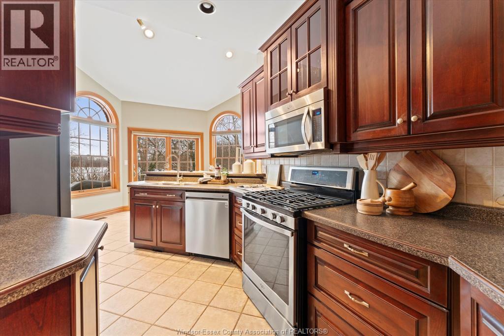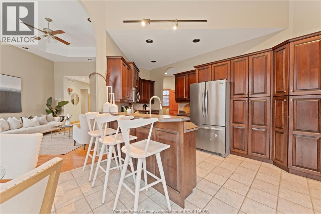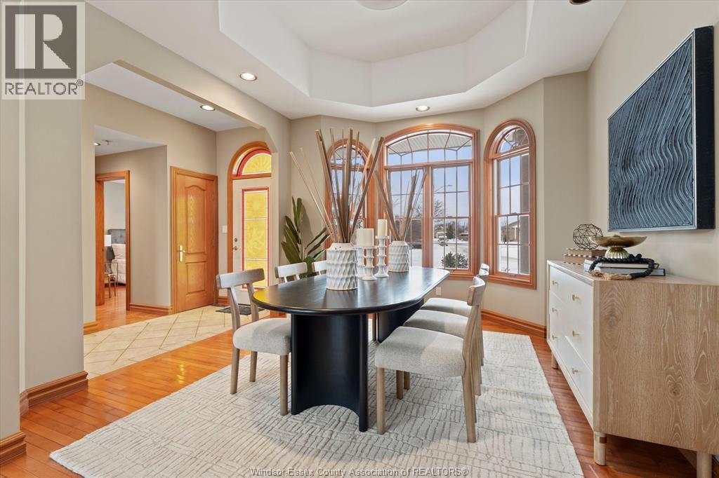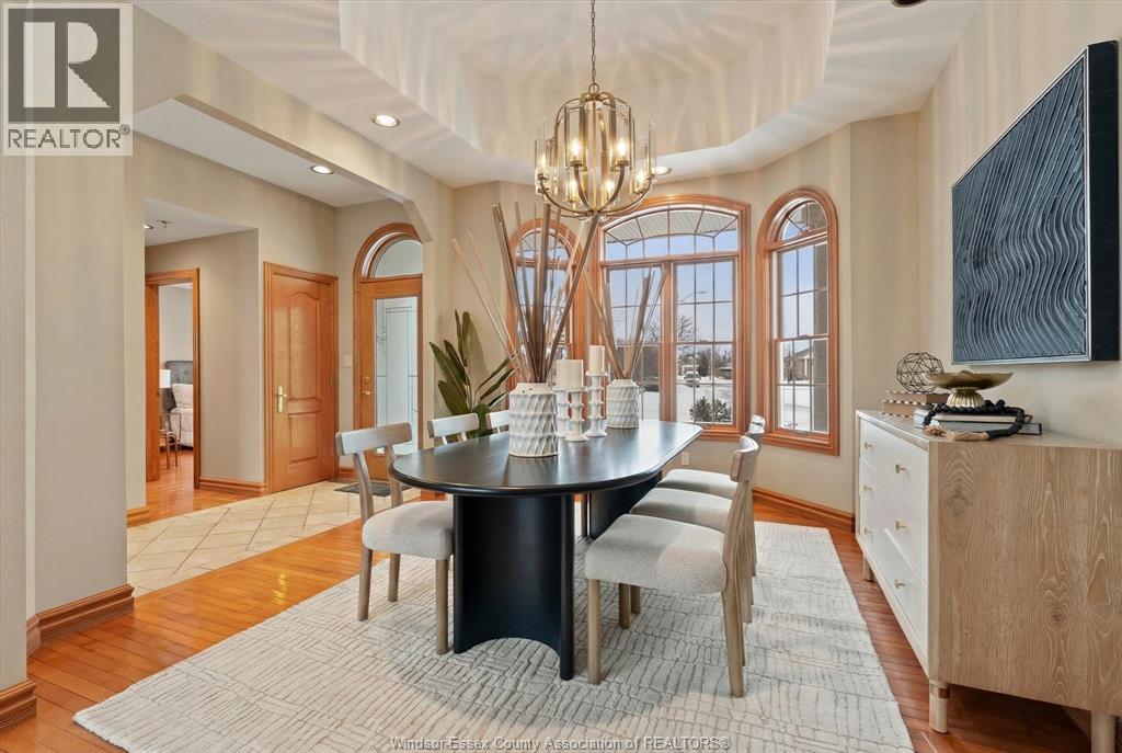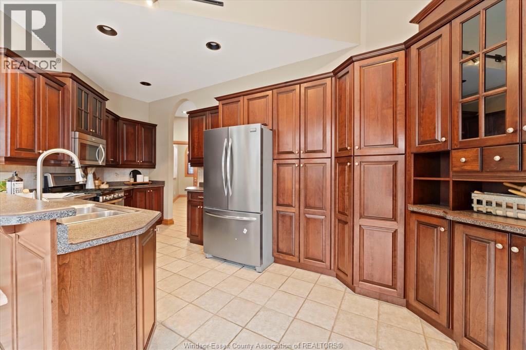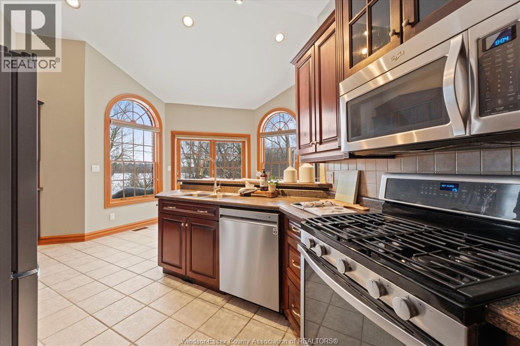 Exceptional craftsmanship & attention to detail, this custom-built charming brick brick ranch in Tecumseh offers immaculate living with no expense spared, nestled on a peaceful quiet street & backing onto pike creek with no rear neighbours providing a tranquil retreat; approx 1900 sq ft, 3+1 bdrms, 3baths gorgeous hardwood floors with huge ceiling to floor Anderson windows offering ample natural light thru out home; open-concept main floor family room features coiffered ceilings, formal dining room, immaculate grand custom kitchen perfect for family gatherings & main floor laundry. Master bdrm a true oasis w/large windows, walk-in closet & a luxurious ensuite. The partially finished lower level has a fourth bdrm & full bath with extra high ceilings, with potential for a mother-in-law suite; steel roof with a 50 year warranty (approx 15 year old)A pleasure to show! (id:64974)