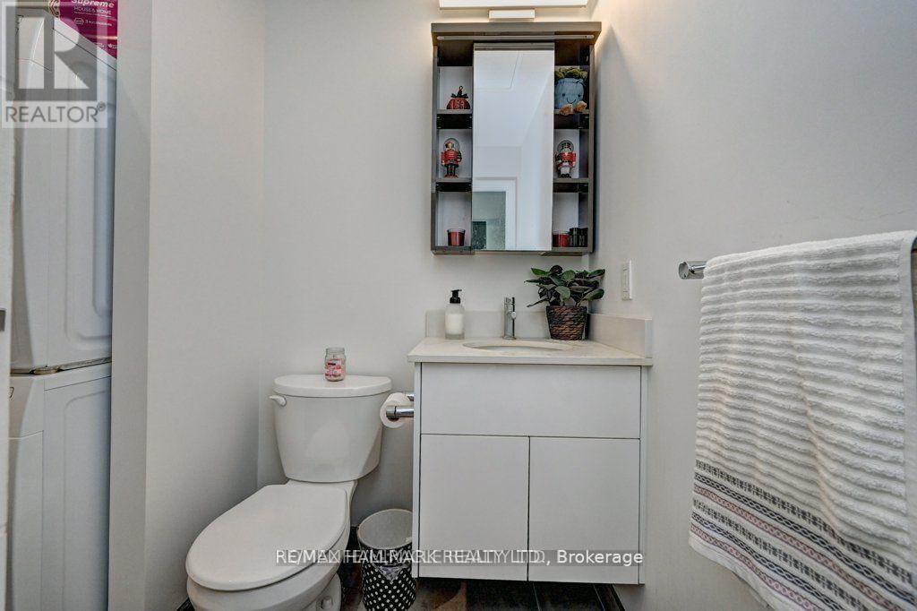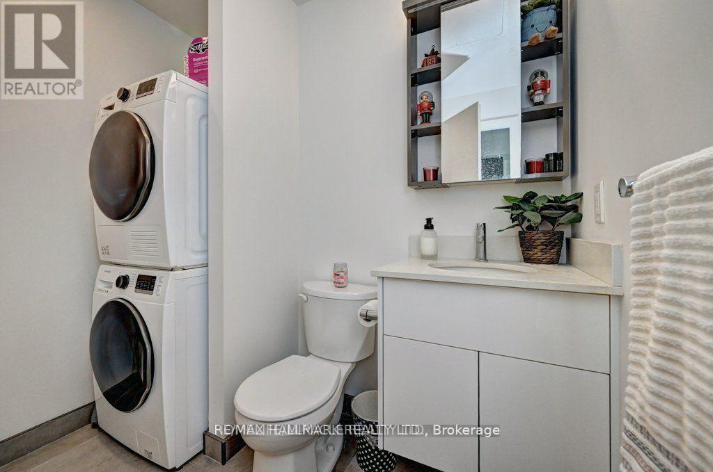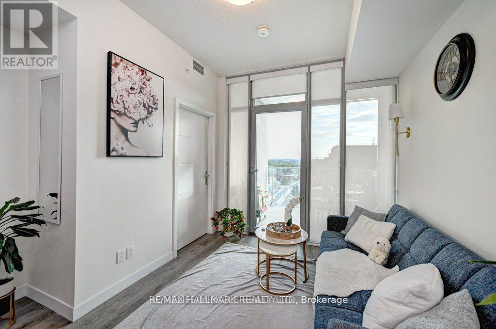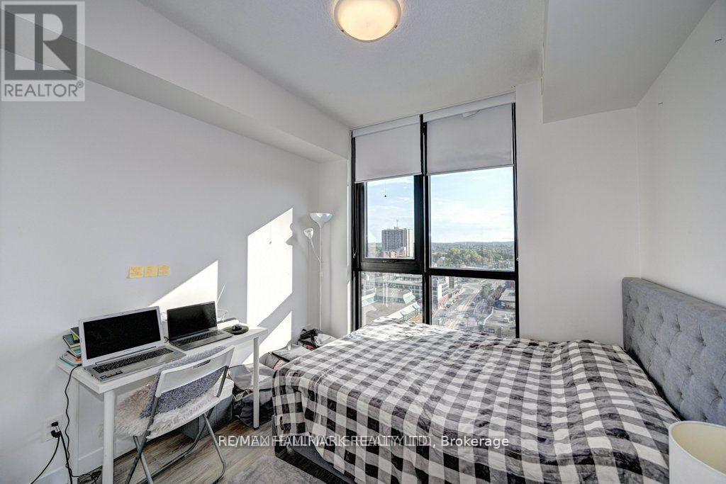 Modern 1-bedroom plus den, 2-bathroom suite at DTK Condos in the heart of Downtown Kitchener. This high-floor, open-concept unit features high ceilings, modern laminate flooring, and floor-to-ceiling windows offering unobstructed views. The kitchen is equipped with tall cabinetry, quartz countertops, a porcelain backsplash, and stainless steel appliances. A versatile den functions as a home office or second bedroom, complemented by two full bathrooms finished with porcelain tile. Integrated smart-home technology provides seamless control of unit features. Includes one underground parking space. Building amenities feature a 24-hour concierge, fitness centre, yoga studio, party room, and a rooftop terrace with barbecue areas. Situated with ION LRT and bus stops at the doorstep, providing rapid transit to the GO Station, University of Waterloo, Wilfrid Laurier University, and Conestoga College. Walking distance to the Kitchener Market, Victoria Park, and downtown dining. Tailored for professional couples or downsizers seeking a high-density urban core location. (id:64974)