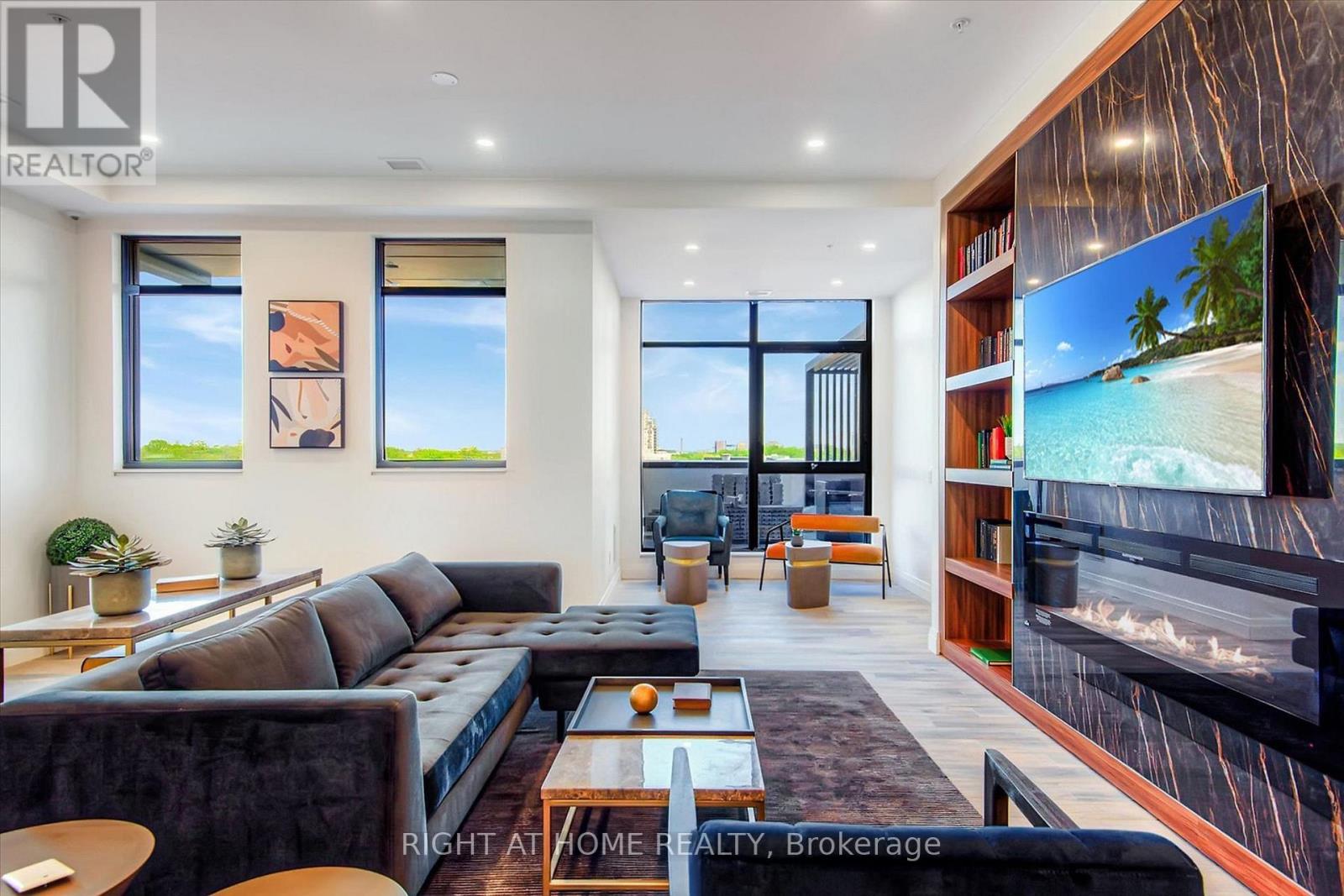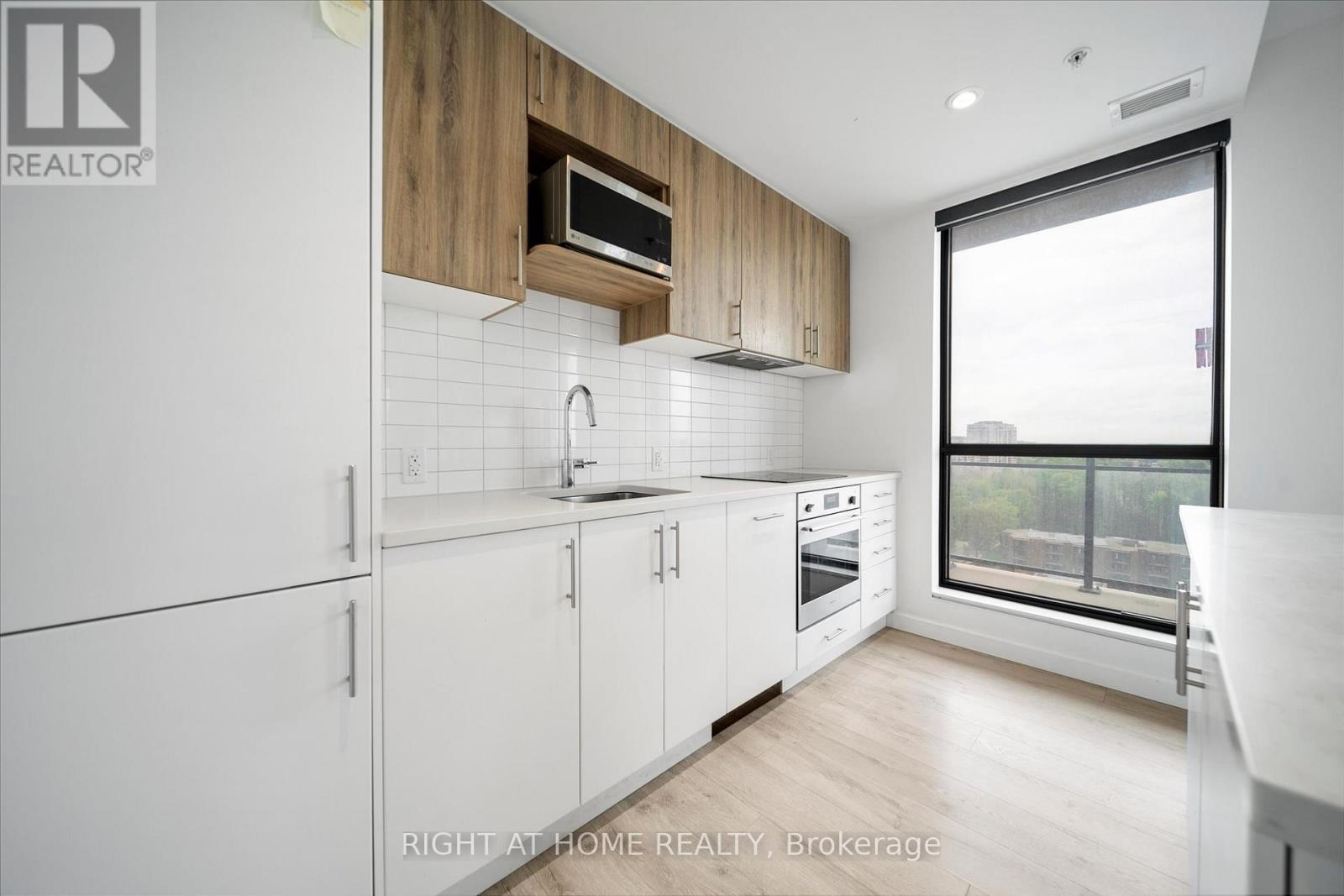 Welcome to Suite 1214 at Circa 1877 a rarely offered corner suite that blends modern luxury with the energy of Uptown Waterloo. This spacious 2-bedroom + den, 2-bath condo offers 1,100 sq ft of carpet-free living, plus a 280 sq ft wraparound balcony with panoramic city views.Flooded with natural light, the open-concept design features wide-plank laminate flooring, Lutron dimmable lighting, roller shades, and 9-foot ceilings. The sleek kitchen showcases quartz counters, subway tile backsplash, hidden fridge and dishwasher, stainless steel oven and cooktop, and a large island with seating ideal for both everyday living and entertaining.The versatile den is perfect for a home office or creative nook. The primary bedroom offers a built-in wardrobe and a stylish ensuite with a glass shower. The second bedroom and main 4-piece bath are perfect for guests or family. In-suite laundry completes the comfort.Step outside to your private wraparound balcony nearly 300 sq ft of outdoor living space for relaxing or entertaining year-round.Circa 1877 is more than a home, its a lifestyle. Enjoy rooftop amenities including a pool, private cabanas, fitness centre, yoga zone, indoor-outdoor lounge with BBQs, co-working space, and direct access to Lala Social House cafe and bar.Located in the heart of the Bauer District, you're just steps to the LRT, Waterloo Park, top restaurants, shops, grocers, and the city's thriving tech hub, with Google, Deloitte, and both universities nearby. Suite 1214 includes secure underground parking. Experience elevated urban living at Circa 1877 modern, stylish, and connected. (Some pics are virtually staged) (id:64974)
