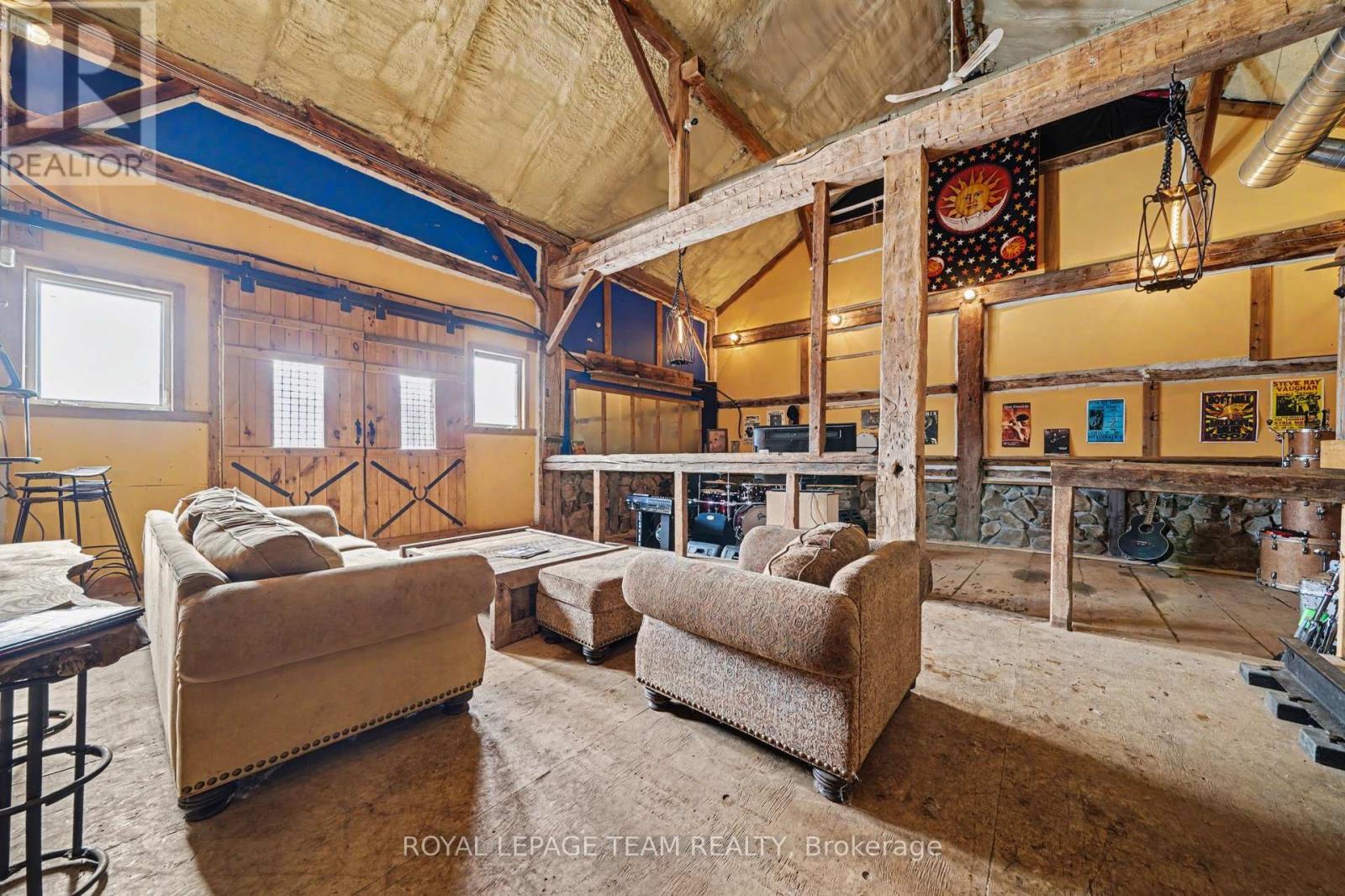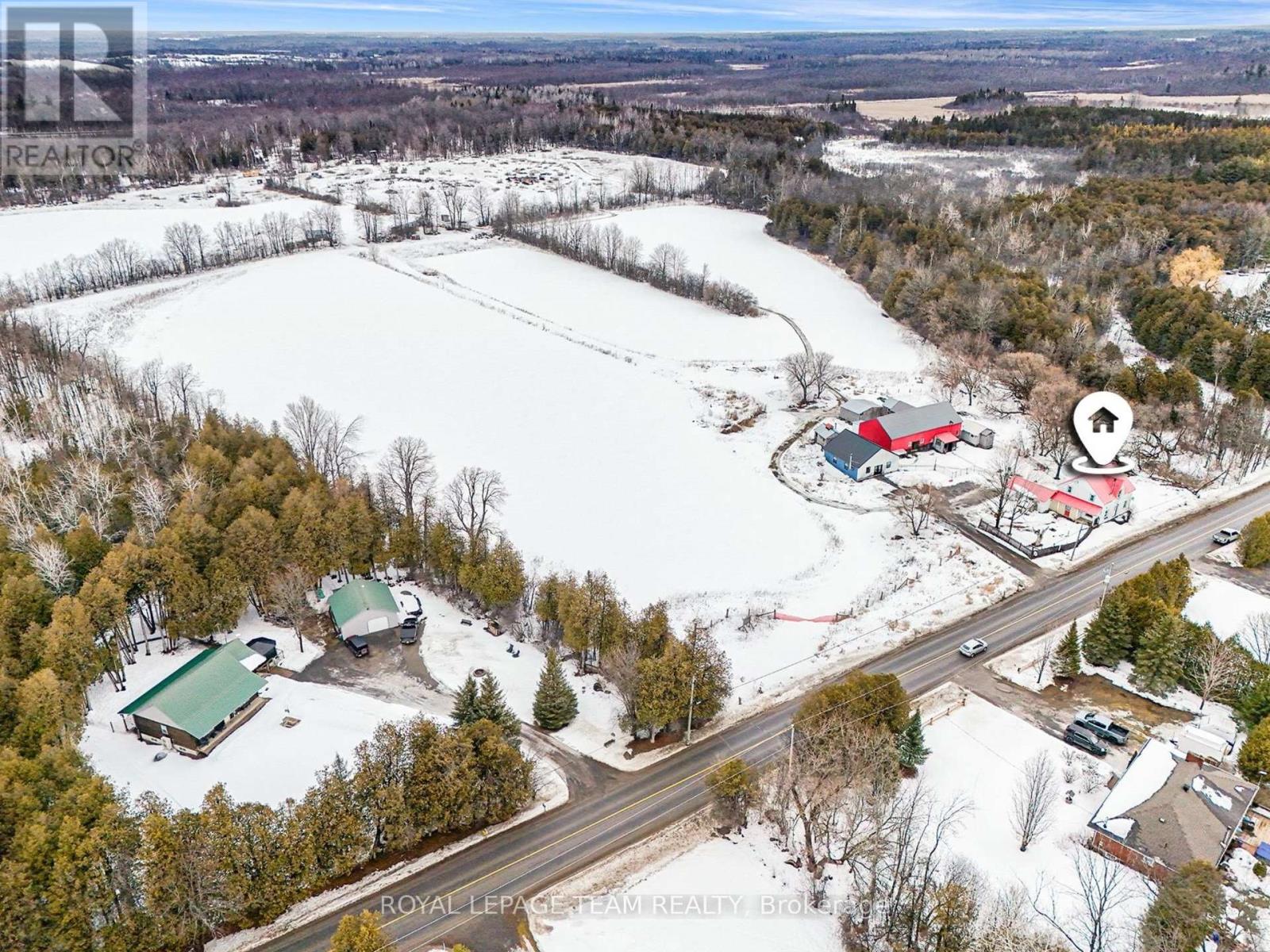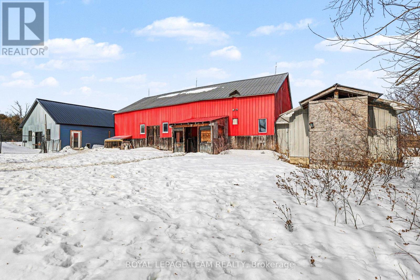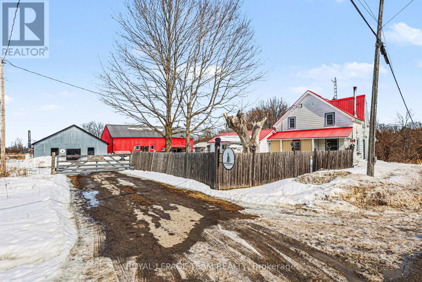 Discover the possibilities Situated on approximately 94 acres just 17 minutes from Ottawa, this unique rural property offers an exceptional blend of privacy, natural beauty, and opportunity while remaining conveniently close to city amenities. The land features a mix of open agricultural fields and mature forest, with trails winding through the back portion of the property and a beautiful sugar bush in the rear section-ideal for outdoor recreation, maple syrup production, or simply enjoying nature. The open land is currently maintained by a local farmer, helping keep the fields in excellent condition with no land lease in place. The property is zoned RU and also includes kennel zoning at the front of the property, with a kennel license permitted annually. Supporting documentation and zoning details are available with the listing. A major highlight is the newly constructed shop (2024) featuring poured concrete floors, a 60-amp subpanel, vinyl siding on three sides with a metal front and roof, and full insulation with a wood stove for heat-perfect for a workshop, hobby space, or small business use. The original dairy barn has also seen significant upgrades including poured concrete floors, electrical panel, plumbing, and ductwork, with spray foam insulation in the walls and ceiling. A compostable toilet connection has been installed, offering excellent potential for a studio, workspace, or possible secondary dwelling unit (subject to buyer verification).The country farmhouse offers timeless character with wide plank flooring, a metal roof, and a cozy wood stove, along with forced air propane heating and existing ductwork throughout. Beautiful perennial gardens surround the home, while mature trees provide shade and privacy across the property. With expansive acreage, multiple outbuildings, and flexible zoning opportunities, there is incredible potential for hobby farmers, entrepreneurs, or anyone seeking space and a peaceful rural lifestyle close to Ottawa. (id:64974)