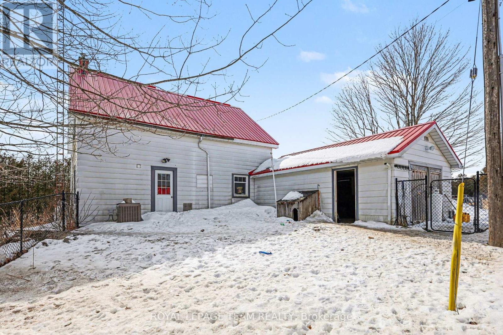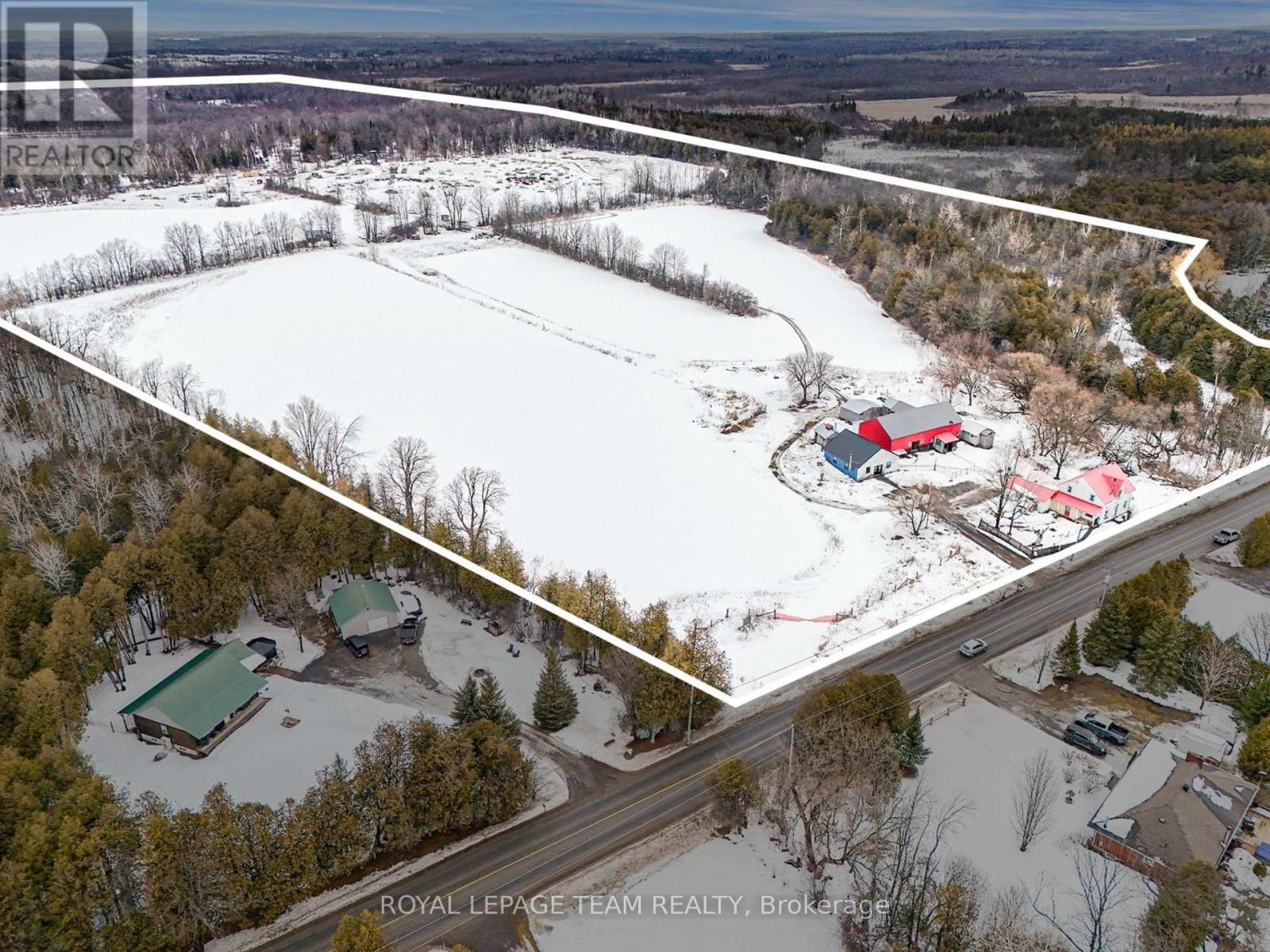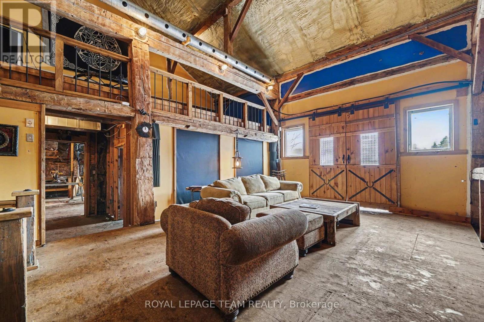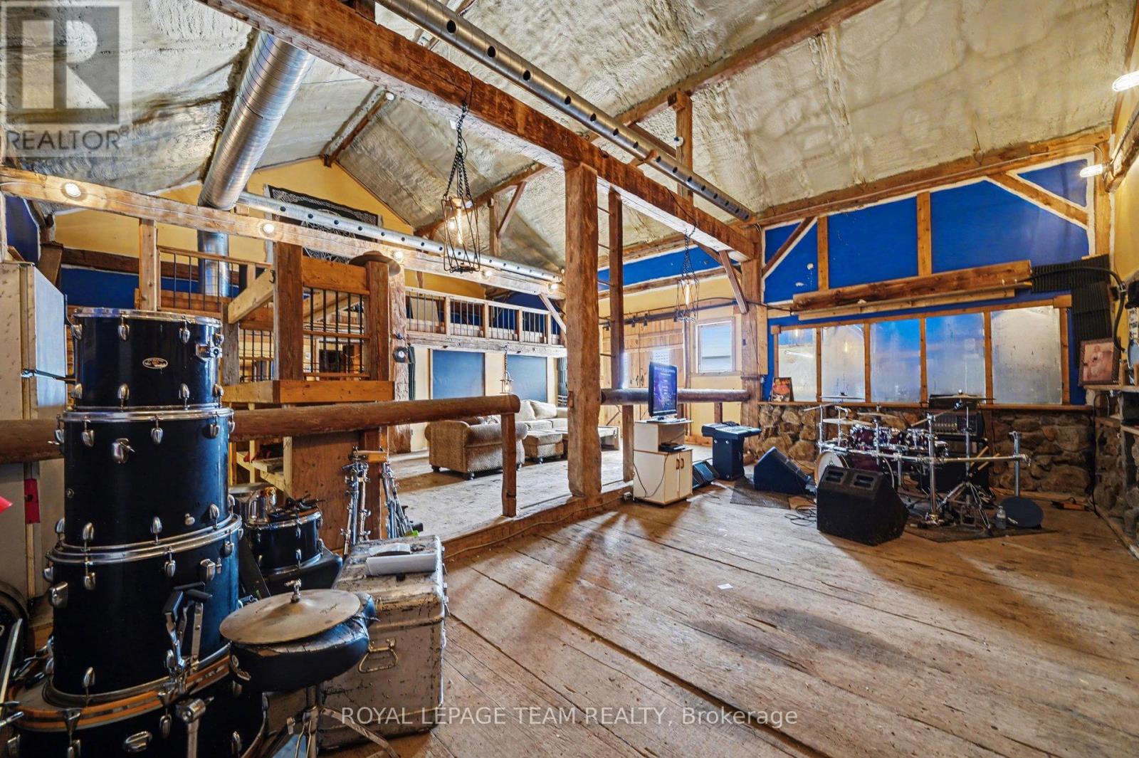 Discover the possibilities Situated on approximately 94 acres just 17 minutes from Ottawa, this unique rural property offers an exceptional blend of privacy, natural beauty, and opportunity while remaining conveniently close to city amenities. The land features a mix of open agricultural fields and mature forest, with trails winding through the back portion of the property and a beautiful sugar bush in the rear section-ideal for outdoor recreation, maple syrup production, or simply enjoying nature. The open land is currently maintained by a local farmer, helping keep the fields in excellent condition with no land lease in place. The property is zoned RU and also includes kennel zoning at the front of the property, with a kennel license permitted annually. Supporting documentation and zoning details are available with the listing. A major highlight is the newly constructed shop (2024) featuring poured concrete floors, a 60-amp subpanel, vinyl siding on three sides with a metal front and roof, and full insulation with a wood stove for heat-perfect for a workshop, hobby space, or small business use. The original dairy barn has also seen significant upgrades including poured concrete floors, electrical panel, plumbing, and ductwork, with spray foam insulation in the walls and ceiling. A compostable toilet connection has been installed, offering excellent potential for a studio, workspace, or possible secondary dwelling unit (subject to buyer verification).The country farmhouse offers timeless character with wide plank flooring, a metal roof, and a cozy wood stove, along with forced air propane heating and existing ductwork throughout. Beautiful perennial gardens surround the home, while mature trees provide shade and privacy across the property. With expansive acreage, multiple outbuildings, and flexible zoning opportunities, there is incredible potential for hobby farmers, entrepreneurs, or anyone seeking space and a peaceful rural lifestyle close to Ottawa. (id:64974)