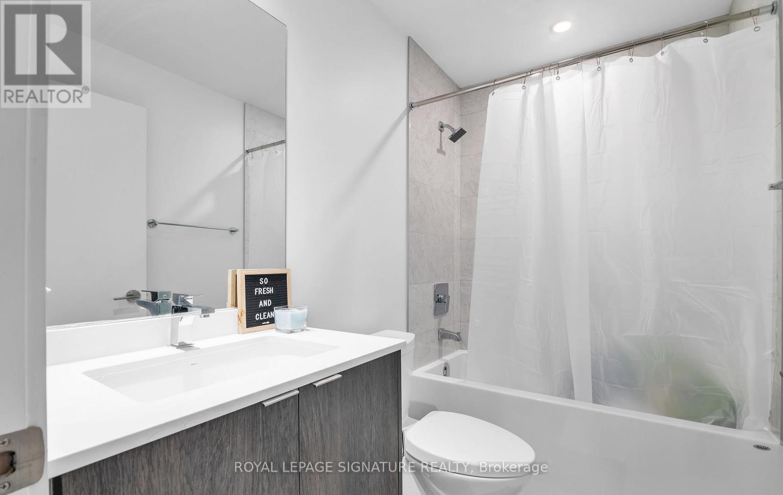 Welcome to Mirabella Condos - a bright and modern 1-bedroom plus spacious den, 2-bathroom suite offering a functional open-concept layout with abundant natural light. The large den provides excellent flexibility and can easily serve as a second bedroom, guest room, or home office. The contemporary kitchen features quartz countertops and stainless steel appliances, seamlessly flowing into the open living and dining area-perfect for everyday living and entertaining. Step onto your private balcony and enjoy scenic views of High Park and Lake Ontario. Additional features include in-suite laundry and high-speed internet, all within a prime waterfront location. Just steps to Sunnyside Beach, the Boardwalk, Martin Goodman Trail, Humber Bay Shores, and High Park, with TTC access nearby and Bike Share at your doorstep. Residents enjoy 24-hour concierge service and access to outstanding amenities including an indoor pool with lake views, fitness centre, yoga studio, sauna, library with fireplace, business centre, guest suites, children's play areas, pet grooming room, and a beautifully landscaped 11th-floor terrace with BBQs, lounge areas, and a reflecting pool. New comers and students welcome! (id:65010)