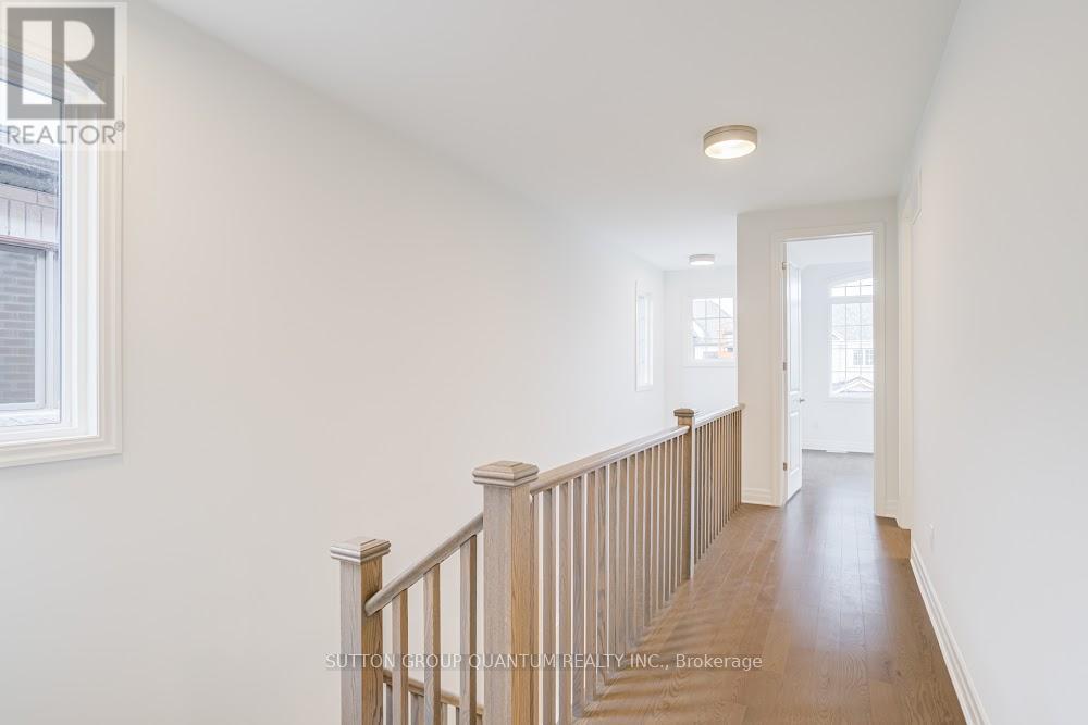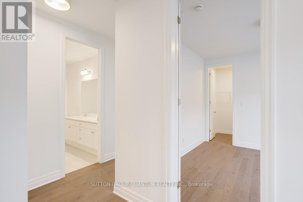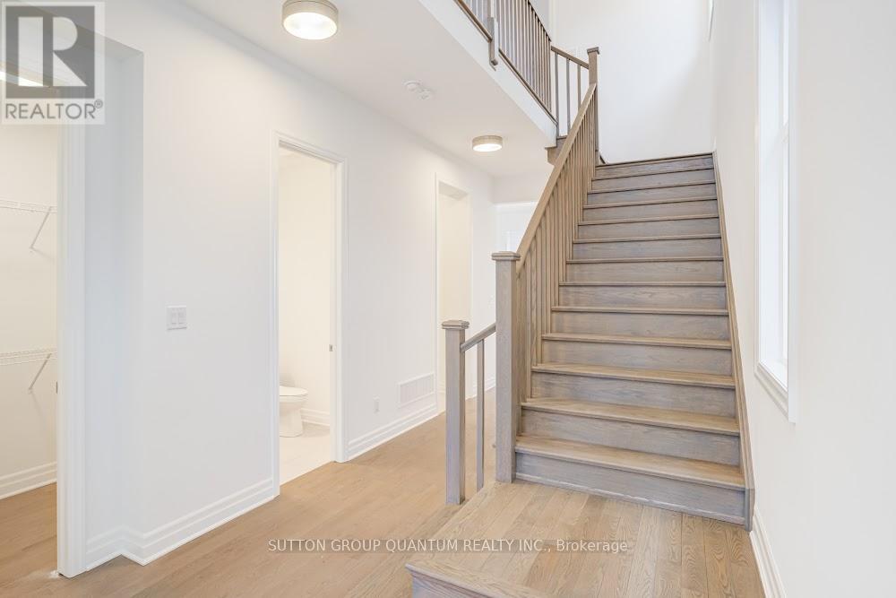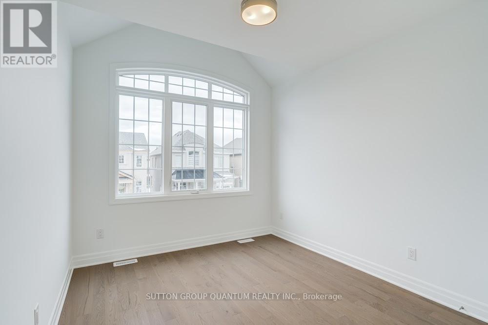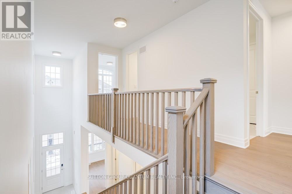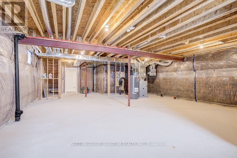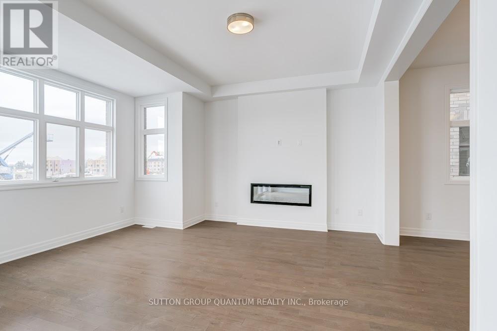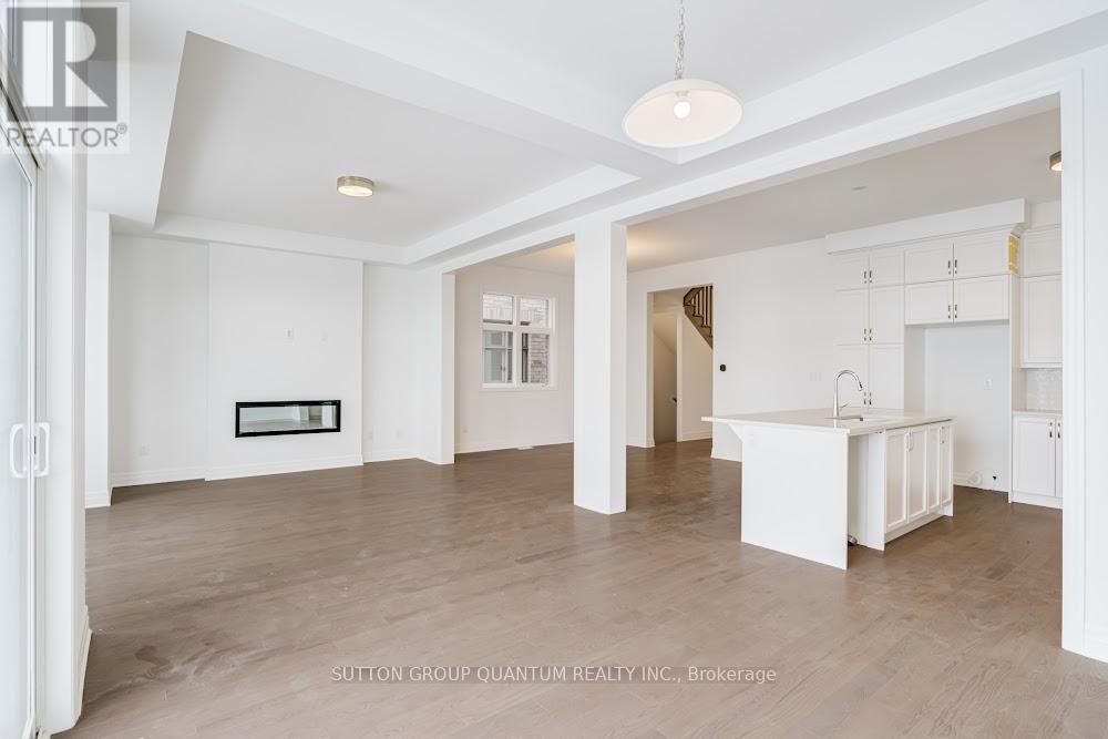 Located at Dundas St. E. and Trafalgar in Joshua Creek, this Mattamy "Reign" model (English Manor elevation) offers 2,758 sq. ft. including 70 sq. ft. open to below, with geothermal energy for long-term efficiency and comfort. Solid brick with stone skirt exterior and single car garage. The main floor features a welcoming foyer open to above, a spacious front walk-in closet to keep daily life organized, and a mudroom with direct garage access. A main floor office/den provides flexibility for work or study. The principal living area is beautifully open and connected - kitchen, dining and family room combined for bright, airy everyday living and easy entertaining. The kitchen is finished in timeless neutral tones with white cabinetry, chrome accents and linen cream quartz counters. Bathrooms are finished in white with Blanco Maple quartz counters and 12" x 24" white floor tiles. Hardwood flooring runs throughout the principal rooms in a neutral Lauzon Talpa finish. Upstairs, the large 14' x 14' primary bedroom comfortably accommodates full bedroom furniture and features a thoughtfully designed "quiet wall" - a clean, uninterrupted wall ideal for anchoring the room and creating a calm focal point. The laundry room is ideally located between the bedrooms for everyday convenience. A Home Office Package is available in select bedrooms and dens (please speak to the Design Consultant for details). Interior doors are Carrara style with two square panels, adding a clean, transitional touch throughout. **Eligible First Time Home Buyers may be able to receive up to an additional 13% savings on the purchase of this home through the proposed Government FTHB Rebate Program** (id:64974)