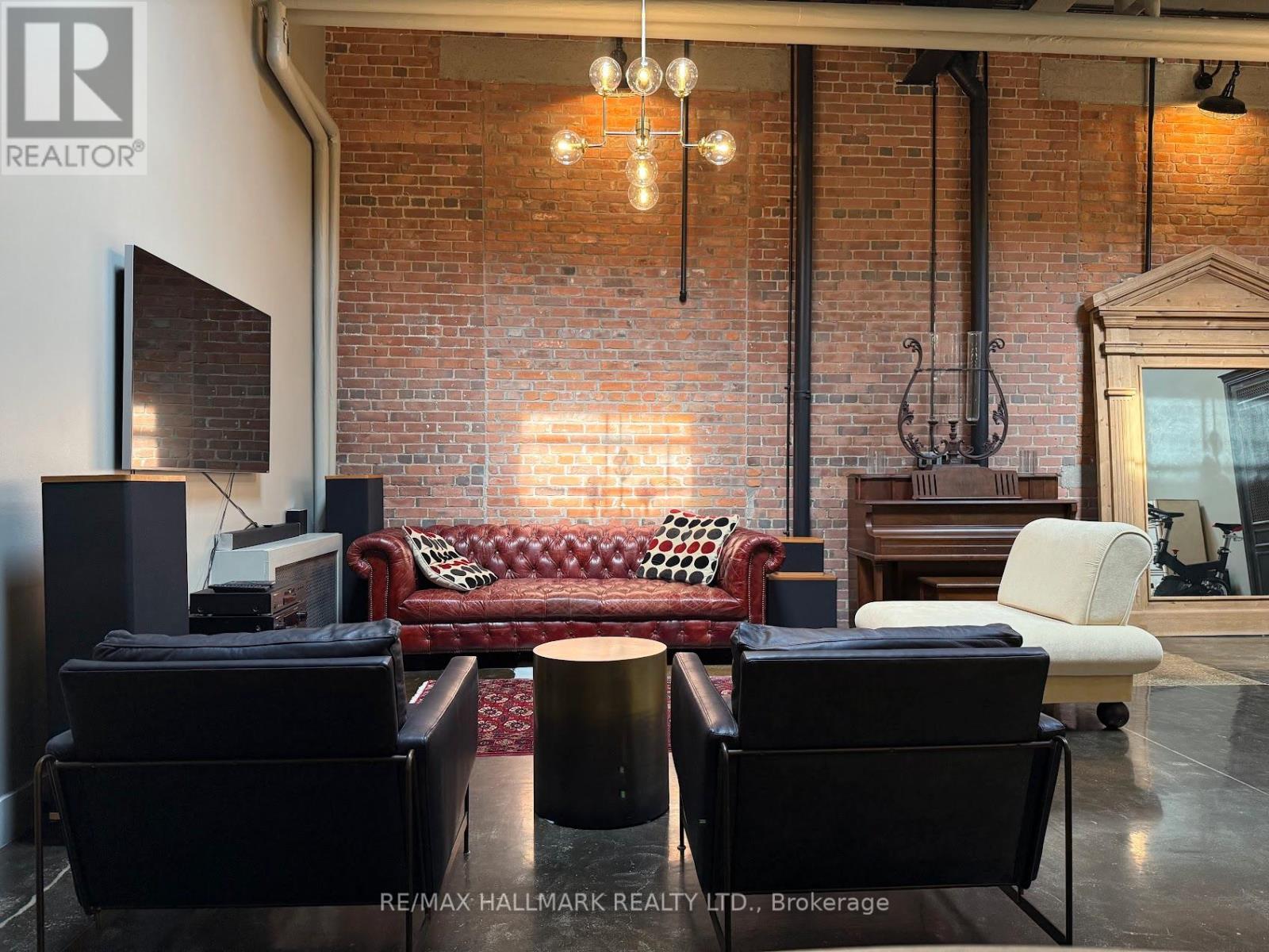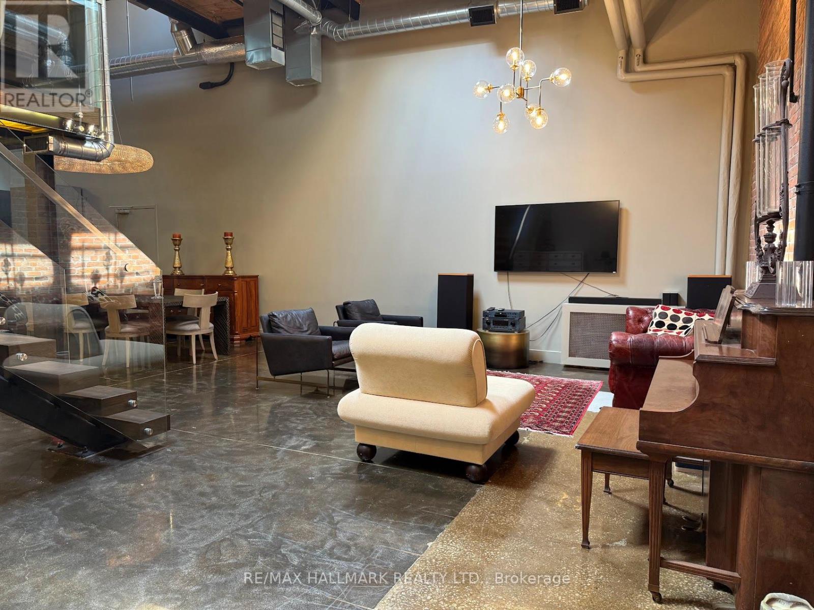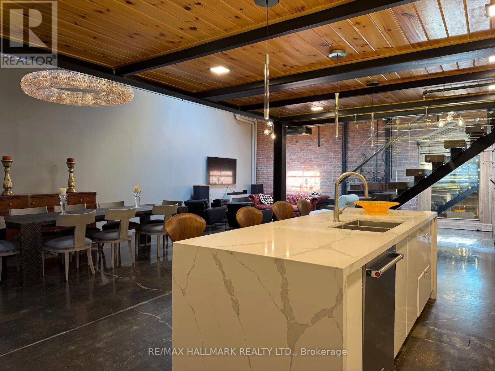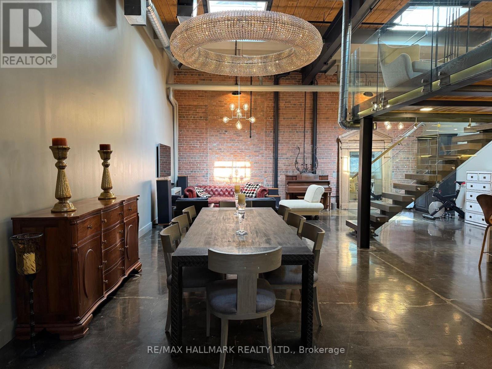 Rare opportunity to lease a fully furnished loft in Leslieville's iconic I-Zone. Offering 2,329 sq ft of living space with soaring timber & beam ceilings peaking at nearly 25 ft, exposed brick, polished concrete floors, and a private 375 sq ft rooftop terrace, this authentic hard loft is truly one-of-a-kind! The chef-inspired kitchen showcases quartz counters, oversized island, and a full suite of top-of-the-line KitchenAid appliances including large oven/stovetop, double-door fridge, wine fridge, and whisper-quiet dishwasher. The open layout flows seamlessly between dining and living spaces while skylights flood the loft with natural light. Every furnishing and finish has been thoughtfully selected: Restoration Hardware dining set, bed, storage units and mirrors, Elte armchairs and coffee tables, hand-knotted Persian rugs, solid rosewood entry chest, and crystal decanters. Essentials are all included, linens, bedding, cutlery, plates, cookware, Breville automatic toaster, Blendtec industrial blender, and Coway Airmega air purifier sized for the entire loft. Simply turn the key and enjoy immediate high-end living. The main level includes a spacious second bedroom, three-piece bath with glass shower, and expansive living areas. The upper-level primary suite offers custom closets and a spa-like six-piece ensuite. This loft comes with a dedicated private underground parking spot. Located in a vibrant, creative hub steps to Queen St Easts trendy restaurants, cafes, galleries, parks, fitness studios, and transit, with quick access to the DVP, Gardiner, and Lakeshore. A rare offering, this is loft living at its absolute best! (id:64974)