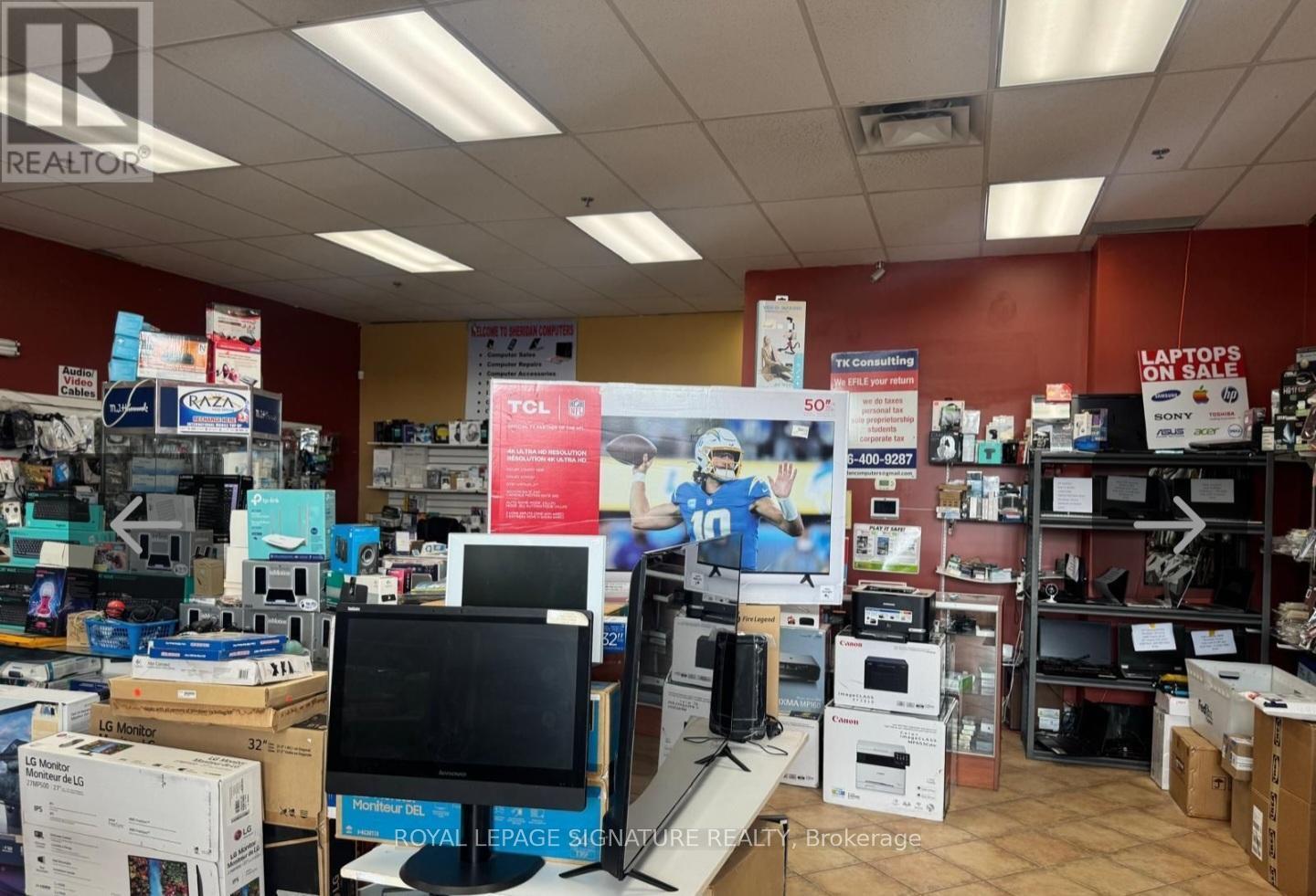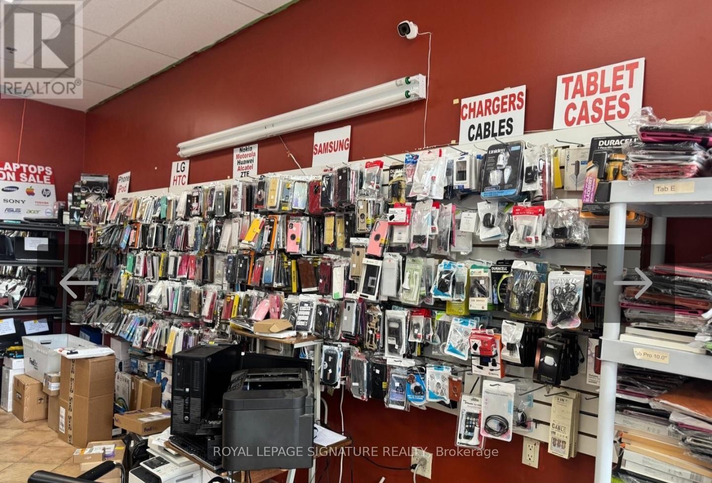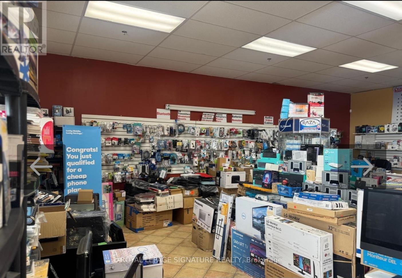An excellent opportunity to own a running business in a desired and very busy neighborhood. Electronics retail, cell phone and computer repair, U-Haul dealer, Koodo dealer, FedEx Dealer, Oye dealer, Raza telecom dealer, Internet service provider, IPTV. Price include the inventory. Regular inventory like Phones, Computers, Laptops, Mac Book, TVS, Accessories. Interac Machine, Fax Machine, Microwave, Fridge etc. Annual gross income is $250-$270K. 22 years at the same location. lLow rent. Exclusive rights activation services of Koodo and Lucky mobile. Exclusive with Uhaul rental, FedEx, Oye phone to up, Internet services, Fax and printing services. Get most of your investment back in one year. This business has a high potential can be opened 7 days and longer duration of hours. Location is one of the busiest especially in the neighborhood of busy retail grocery store like Freshco, Tim Hortons, shoppers drug mart etc. Excellent neighborhood and highly populated , very close to schools , commercial areas, Hwys. . Full training can be provide. (id:64974)
