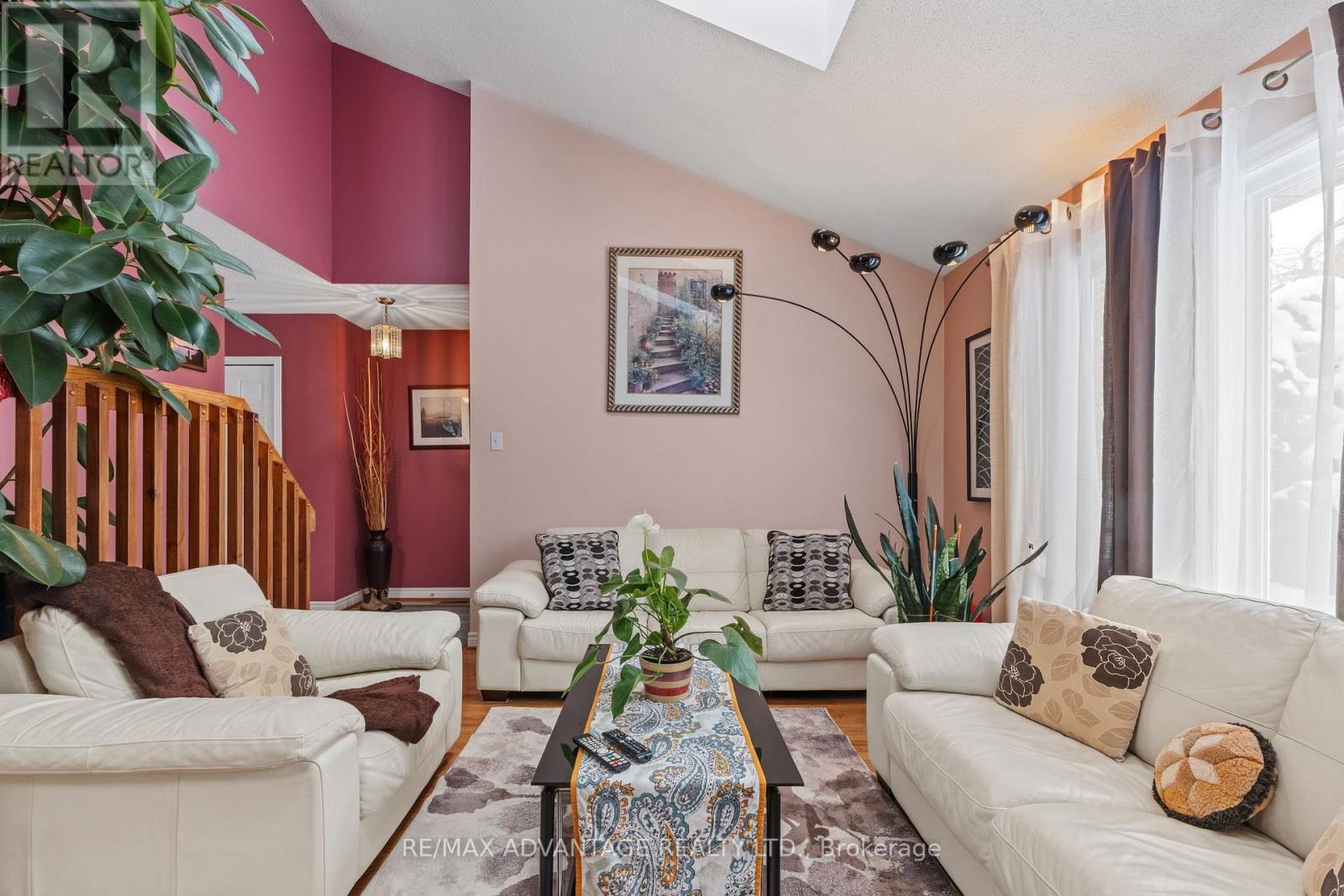 Located in desirable North London, this well-maintained home offers exceptional space, light, and long-term pride of ownership. Set on an impressive 99-ft wide lot, the property features a bright two-storey living room highlighted by a single-slope ceiling and skylights, filling the home with natural light throughout the day. A beautiful solid wood staircase anchors the main level, leading to an upper-level balcony overlooking the living room, adding architectural interest and openness. The home offers three generous bedrooms and 2.5 bathrooms, along with a functional eat-in kitchen ideal for everyday living and entertaining. The finished basement provides additional living space and is complete with a wood-burning fireplace, perfect for cozy evenings. Outside, enjoy a large, mature backyard surrounded by established trees, flowers and plants, enhanced by a cedar wood patio (2021) an ideal setting for outdoor relaxation and entertaining. Notable updates include furnace & AC (2018) and windows (2020). Additional highlights include an attached garage, double-wide driveway parking, and a prime location close to all major amenities, including shopping, food/entertainment, banking, healthcare & Costco. Quick access to downtown and 400 series highways. Here's a rare opportunity to be in a great home in sought-after neighbourhood. (id:64974)