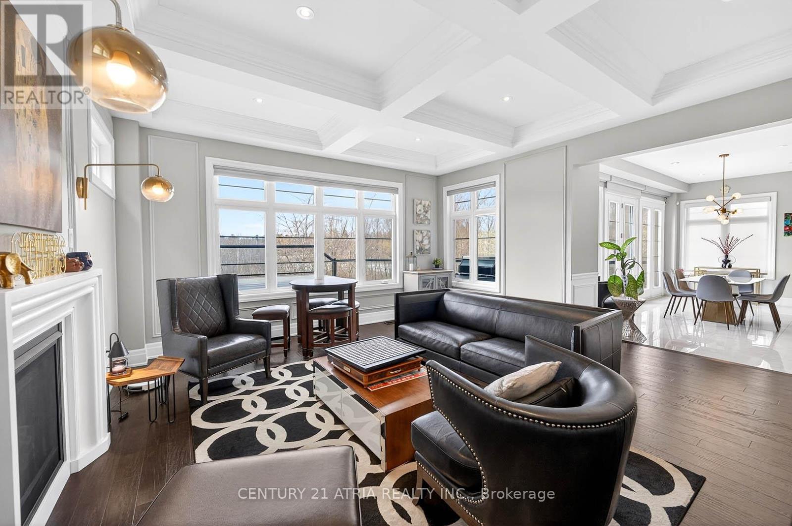 Nestled on a premium 88' wide ravine lot, this spectacular 3-car garage custom executive home offers over 4000 sqft of luxurious living with a professionally finished walkout basement overlooking a serene ravine. This beautifully crafted two-storey detached home delivers elegance and functionality in one of King City's most desirable communities. Step inside to a grand foyer with large porcelain tile flooring, soaring 10-foot ceilings on the main level, creating a bright and airy setting. Rich handscraped hardwood floors run throughout all principal living areas, hallways, and bedrooms, complemented by extensive molding, wainscoting, and refined millwork throughout the home. Designed for both entertaining and everyday living.The home features elegant formal living and dining areas along with a dramatic family room with waffle ceiling, double-sided fireplaces. The chef's kitchen showcases a large centre island, premium cabinetry, and panoramic ravine views, complete with Sub-Zero Wolf appliances, the spacious breakfast area overlooks the lush natural setting. Upstairs, enjoy 9 foot ceilings andfour spacious bedrooms, each with their own private ensuite bathroom wit heated floors and walkin closet. The luxurious primary retreat features a double-sided gas fireplace shared with thespa-like ensuite. A second-floor laundry room adds everyday practicality, with an additional laundry area located in the basement. The finished walkout basement extends the living spacewith large recreation area with a wet bar, multiple rooms and direct access to the gorgeous landscaped backyard oasis featuring a large elevated deck, and a heated swim spa tucked beneath the deck for year round relaxation. The large driveway with no sidewalk allows parking for upto six vehicles in addition to the 3-car garage. Located minutes from King City GO Station ,Highway 400, boutique shops, fine dining, supermarkets, new Zancor Centre, scenic trails offering a balance of nature and lifestyle. (id:64974)