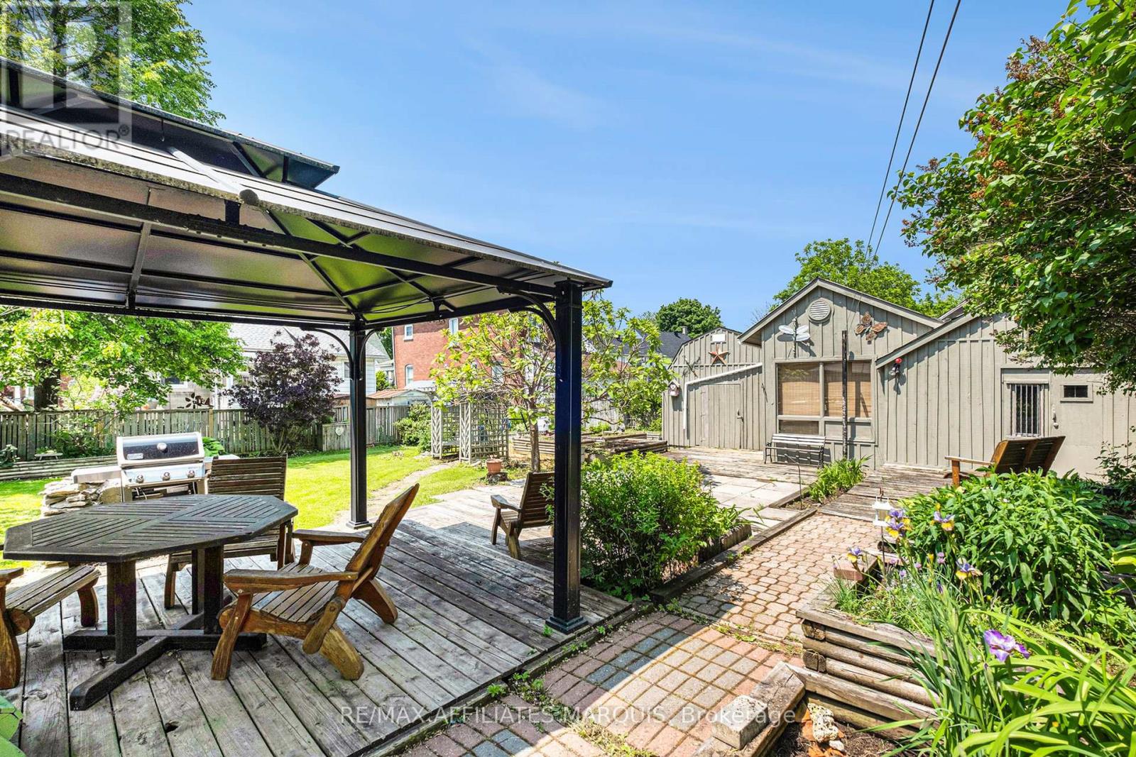 Looking for something different, with a flare for entertaining, check this customized home out. A former local woodworker has made many personal touches that his family and friends enjoyed. The main level includes a large kitchen with island, formal dining area, living room, enclosed foyer, mudroom with laundry at the back entrance, a 4-piece bathroom with a shower & jetted tub plus a family room (was used as a main level bedroom). Upstairs there are 3 good sized bedrooms, a walk-in closet and a second 4-piece bathroom. Mostly hardwood and tile flooring throughout. Outside you will find an oasis of relaxation. A large wrap around deck (partially covered), a gazebo, patio area, raised garden beds, garden shed plus a two-room handyman workshop with power. Shingles approx. 12 years old. Wiring recently updated, (old knob & Tube wiring disconnected and now updated). There is a paved driveway suitable for 5 vehicles. Heated with a natural gas furnace. Gas on equal billing $144/m. Hydro $1293. Water & Sewer $1042. Hot water rental $24,70/m (id:64974)