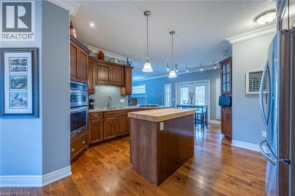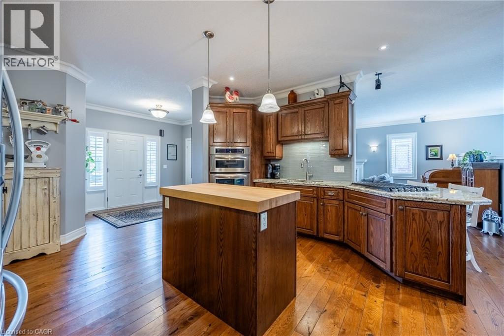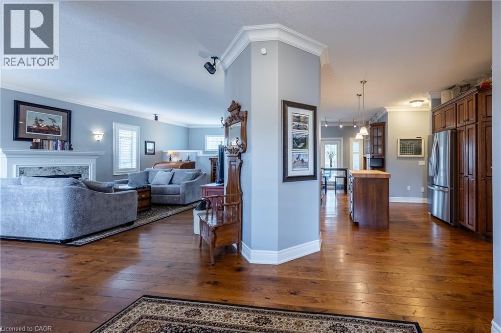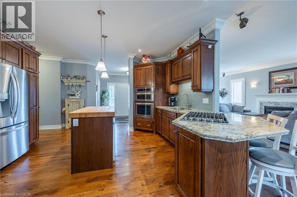 Beautifully maintained all-brick bungalow offering over 3298 sq ft of finished living space in one of Port Dover’s most desirable neighbourhoods. Perfectly positioned for those seeking a relaxed lifestyle without compromise, this home delivers both style and everyday comfort. The open-concept main floor showcases 9-foot ceilings, rich oak hardwood flooring, and refined 5” trim, creating a warm yet upscale atmosphere. The spacious living room invites you to unwind by the gas fireplace, while the kitchen impresses with granite countertops, quality winger cabinetry, and a seamless flow into the dining area—ideal for entertaining. Large windows dressed with California shutters fill the space with natural light. Step outside to a 12x16 covered deck overlooking a landscaped yard and fire pit, perfect for quiet evenings or hosting family and friends. Designed for convenient main-floor living, you’ll find a laundry room, powder room, and inside access to the 2-car garage, along with two generous bedrooms—each featuring walk-in closets and private ensuites. The lower level adds exceptional versatility with 1531 sq ft of finished space which includes: a rec room and fireplace, additional bedroom, 3-piece bath with walk-in shower, workshop, and flexible space for a gym, games room, or hobby area. Enjoy being just a short 10-minute walk to the marina and minutes from Port Dover Beach, local shops, restaurants, and waterfront trails. Commuters will appreciate easy access to Simcoe (10 minutes), Brantford (approx. 45 minutes), and Hamilton (just over an hour). Whether you’re retiring, raising a family, or simply dreaming of life near the water, this exceptional home offers the perfect blend of location, lifestyle, and livability in one of Ontario’s most beloved beach towns. Book your showing today! (id:64974)