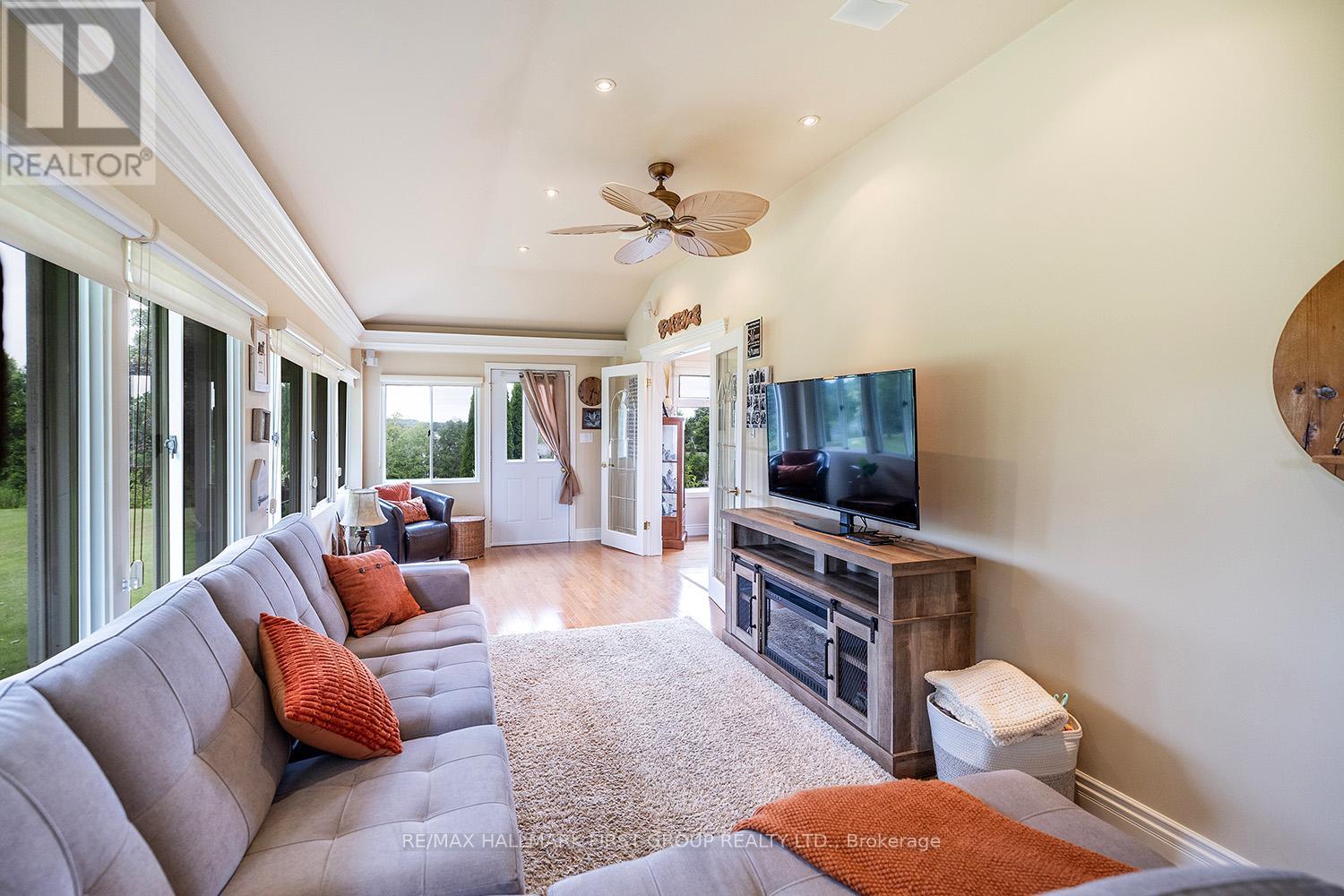 **OPEN HOUSE CANCELLED FOR SUNDAY, MARCH 15TH. Welcome to 122 Gilson Point Road. As you drive up, you are taken back by the postcard setting this 2-acre property offers with 3 road frontages, including views of the countryside, lake views, westerly sunsets, plus sunrises. Pride of ownership is shown throughout this 3-bedroom 2-bathroom raised bungalow featuring a heated double car garage, 30' x 24' detached garage/workshop with endless possibilities, plus multiple walk-outs to enjoy outdoor entertaining. This well maintained home showcasing a separate entrance to the breezeway with stairs leading down to the basement plus access to the garage, a modern eat-in kitchen with granite counters, pantry and breakfast bar combined with the dining room with a large picture window capturing natural sunlight, gleaming hardwood floors, cozy family room with French doors and a separate entrance to a patio, plus a finished walk-out basement featuring a spacious rec room for family gatherings, and a multi purpose craft room. Conveniently located between Port Perry and Lindsay for all your shopping and dining needs! (id:64974)
