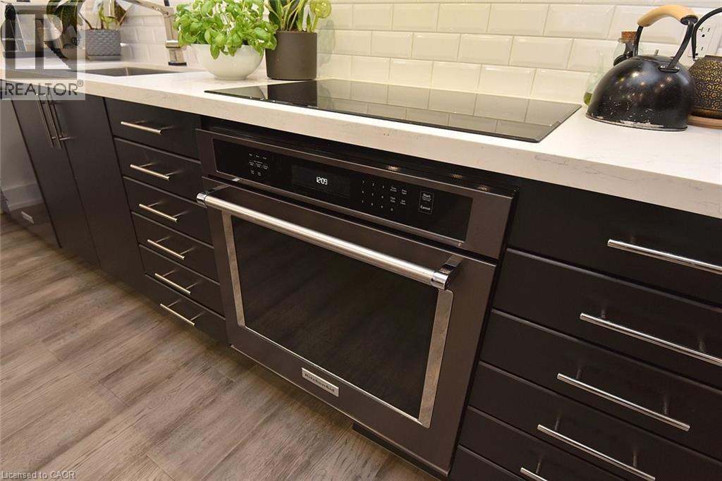 Fully renovated home with loads of conveniences and quality finishes. Quartz countertops throughout with soft-closing doors & drawers, under-mounted large stainless steel sink, polished nickel Kitchen touch Cabinets with polished nickel hardware, LED lighting over the kitchen island, plus a wine fridge. Quality appliances, a side-by-side fridge with water and ice dispensers on the door. 5 cu ft, wall oven, 30-inch induction cooktop range with power boost & simmer functions. 600 CFM ventilation wall-mounted hood with 4 speeds, LED lighting with touch controls. feature-loaded dishwasher. Large Samsung washer & dryer. Electrical panel replaced & ESA Certified. In the garage, there is an electric car charging plug. Additional attic insulation. Backyard Pergola with professionally installed heaters & exterior outlets for outdoor smoker & outdoor lighting. Minutes' walk to the Community Pool, plus access from the complex to the Applewood Trail for walkers and bike riders from Dundas to Eglinton. (id:64974)