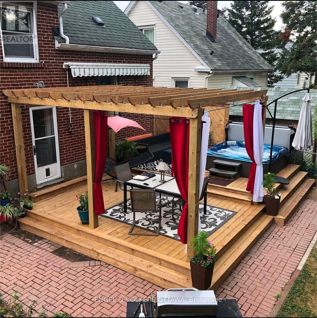 This charming and well-maintained home is situated in a quiet pocket of Ridgemont and is set on a spacious lot, making for quick and easy access to many parts of the city while maintaining a quaint neighbourhood feel. The main level of the home features a bright and inviting layout with hardwood flooring and abundant natural light. The spacious living room is anchored by a cozy fireplace with a traditional mantel and built-in shelving. Through the arched doorway, a bright and airy dining area is conveniently positioned near the updated kitchen, which features stainless steel appliances, ample cabinetry, generous counter space, and a stylish feature wall. Proper dining room & a 4-piece bathroom round off the main floor. The second level has two comfortable bedrooms, each with warm hardwood flooring and charming sloped ceilings that add character to the space. The fully finished lower level expands the living space with a rec room, an additional bedroom, and a beautifully finished 3-piece bathroom added in 2023. This level also includes a dedicated laundry area, storage space, and direct access from the side door. The deep backyard is a standout feature, with a large 2-tiered deck, interlock patio, pergola-covered seating area, and hot tub, all added in 2019, making for a great space for relaxing or entertaining! A detached garage with laneway access and a separate garden shed add plenty of storage space. This home offers easy access to parks, both elementary and high schools, a variety of shopping, and multiple public transit stops, with quick connections to downtown, Carleton University, and the south-end. (id:64974)