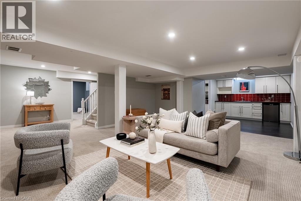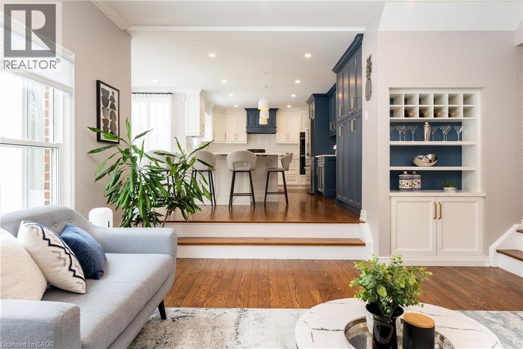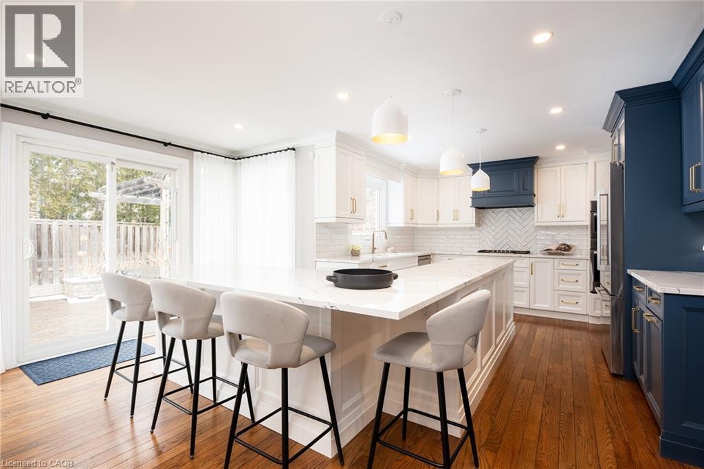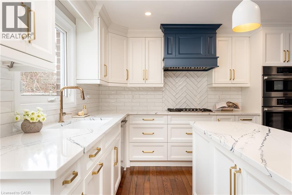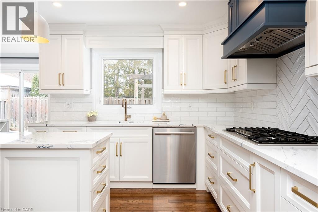 Welcome to 1225 Old Post Drive, a beautifully renovated family home on a mature, private lot in Glen Abbey’s sought-after Abbey Park school district. Extensively updated inside and out, this 4+1 bedroom residence offers refined finishes, thoughtful upgrades, and a fully finished lower level with in-law potential. The custom kitchen, renovated in 2021, features Cambria quartz counters, brass hardware, custom cabinetry, a large L-shaped island with breakfast bar, and premium Bosch appliances. Open to the sunken great room with wood-burning fireplace and custom built-ins, it creates an inviting space for everyday living and entertaining. Separate formal living and dining rooms showcase site-finished oak hardwood, including elegant herringbone detailing. Upstairs, the spacious primary suite includes a sitting area, walk-in closet, and a renovated 5-piece ensuite with freestanding soaker tub, glass shower, skylight, and double vanity. Three additional bedrooms and a renovated main bath complete the level. The finished lower level offers a large recreation area, kitchenette, office, fifth bedroom, and 3-piece bath, ideal for extended family or guests. Professionally landscaped backyard with interlocking patio and custom pergola. Major updates include furnace, A/C and 60-gallon hot water tank (2020), roof (2014), 200 amp service, renovated baths, updated lighting, and more. A turnkey opportunity in one of Oakville’s most established neighbourhoods. (id:64974)
