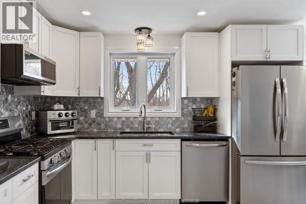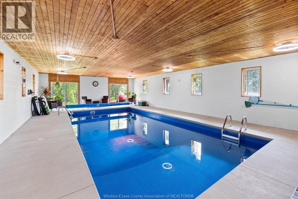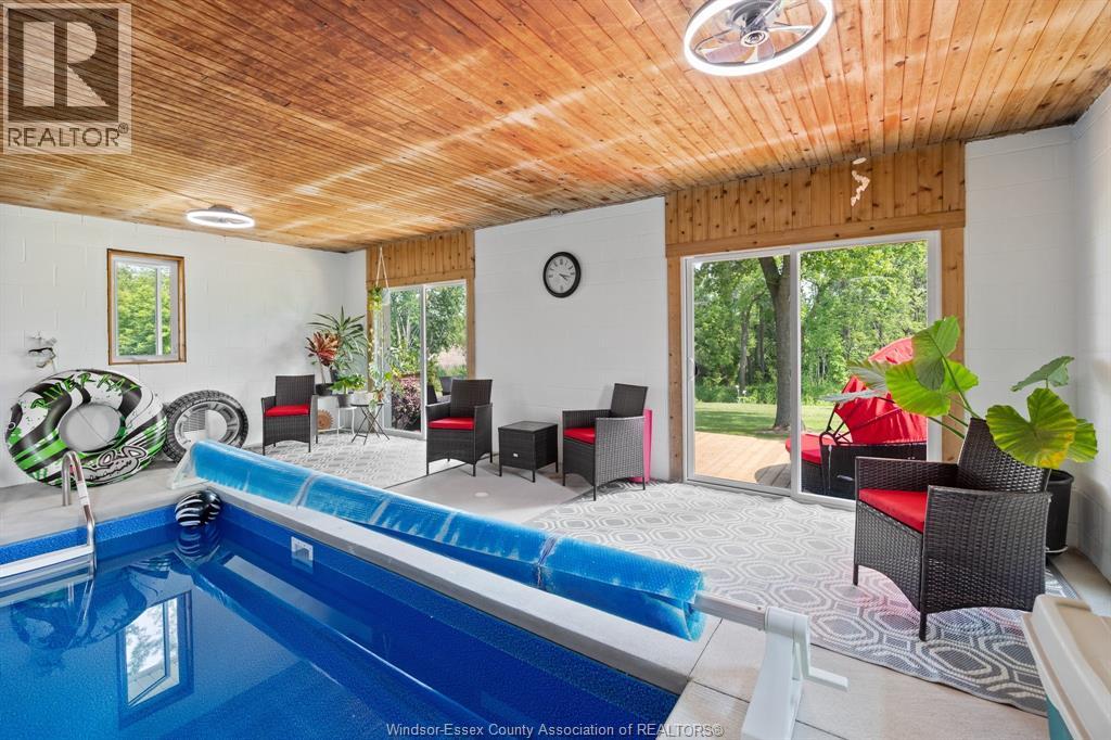 RELAX AND VACATION AT HOME IN THIS SPRAWLING BRICK TO ROOF RANCH SITUATED ON JUST UNDER 1 ACRE PEACEFUL AND QUIET CUL-DE-SAC ROAD FEATURING AN OVERSIZED BRIGHT LIVING ROOM, GORGEOUS WRAPAROUND GRANITE, CERAMIC AND STAINLESS ACCENTED KITCHEN (2026) WITH SEPARATE DINING AREA, DOUBLE GARDEN DOORS TO PRIVATE PATIO, 3 GENEROUS SIZED BEDROOMS, 2 RENOVATED BATHROOMS (2025) LOWER LEVEL FAMILY ROOM (2022) OFFICE/DEN, BONUS INDOOR SWIMMING POOL (2024) WITH SPA SIZED SAUNA AND SEPARATE WASHROOM, MULTIPLE WINDOWS PLUS PATIO DOORS (2025) LEAD TO A CUSTOM LOUNGING DECK OVERLOOKING A BREATHTAKING MANICURED TREED YARD BACKING ONTO THE RUSCOM RIVER AND PARKLAND WITH ACCESS TO WALKING TRAILS IN THE MEMORIAL PARK, 2 1/2 CAR GARAGE WITH SEPARATE TOOL ROOM, DOUBLE WIDE CEMENT DRIVE WITH EXTRA SIDE PARKING PAD (2023) FORCED AIR GAS FURNACE (2022) CENTRAL AIR, HARDWOOD FLOORS, MAIN FLOOR LAUNDRY, APPLIANCES INCLUDED, VINYL REPLACEMENT WINDOWS AND DOORS (2023, 2025) COUNTY LIVING WITH EASY ACCESS TO WINDSOR FROM HWY 401 OR COUNTY ROAD 42 (id:64974)