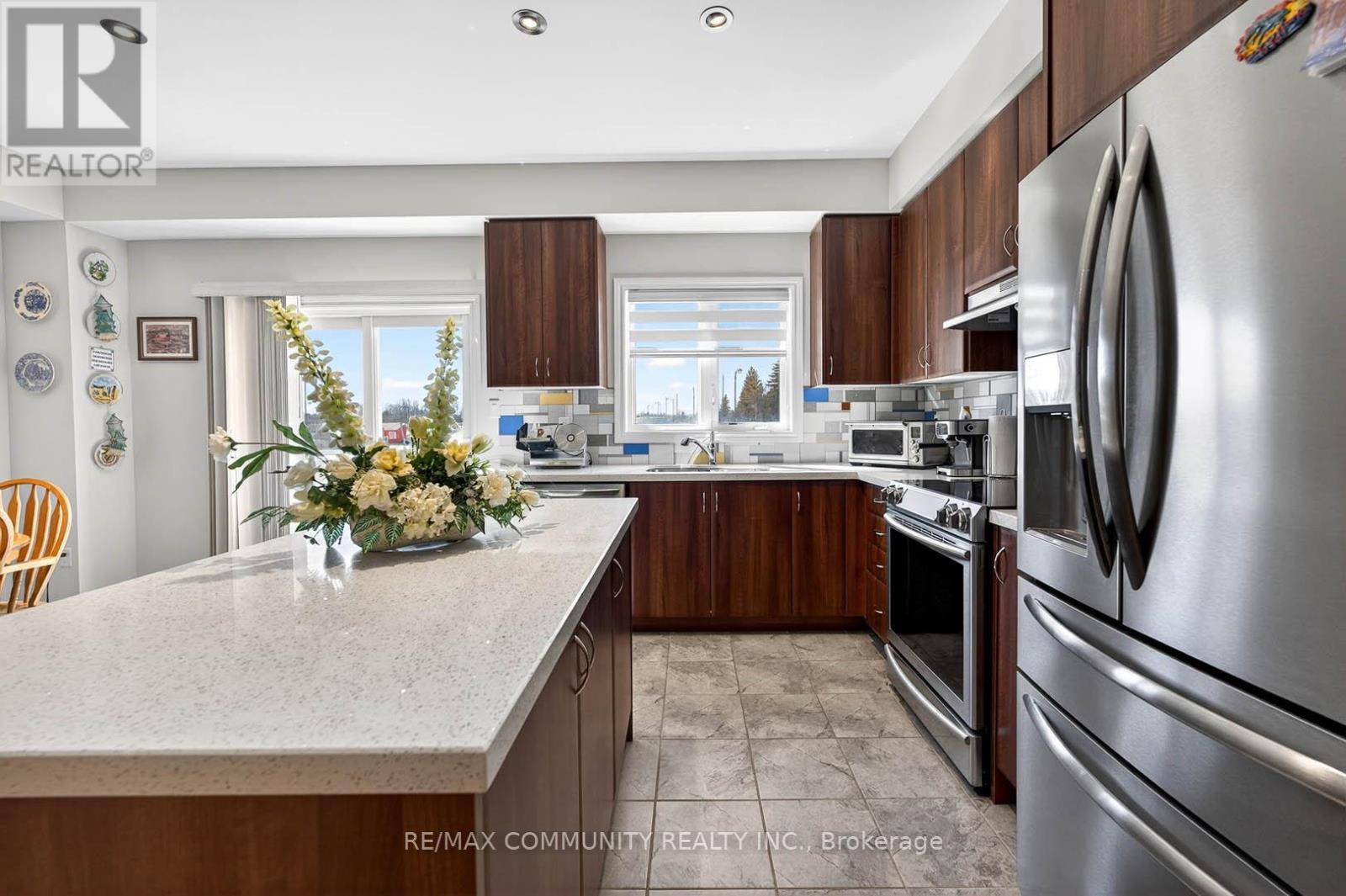 Welcome to this beautiful 3-bedroom home featuring a functional open-concept layout designed for today's lifestyle. The upgraded kitchen showcases quartz countertops, stylish backsplash, centre island with breakfast bar, and flows seamlessly into the dinette and great room - perfect for everyday living and entertaining. Enjoy 9' smooth ceilings and pot lights on the main floor, adding a bright and contemporary feel throughout. The breakfast area offers a walk-out to the patio, ideal for indoor-outdoor living. Upstairs, the primary bedroom retreat features a 5-piece ensuite with double sinks and a walk-in closet, along with the convenience of second-floor laundry. Located just 10 minutes to Hwy 400 and close to Lake Simcoe beaches, parks, and all amenities, this home offers the perfect blend of comfort, style, and location. (id:64974)
