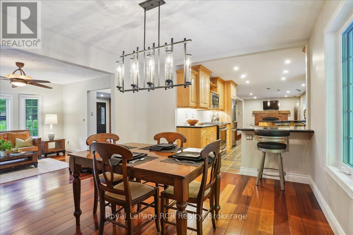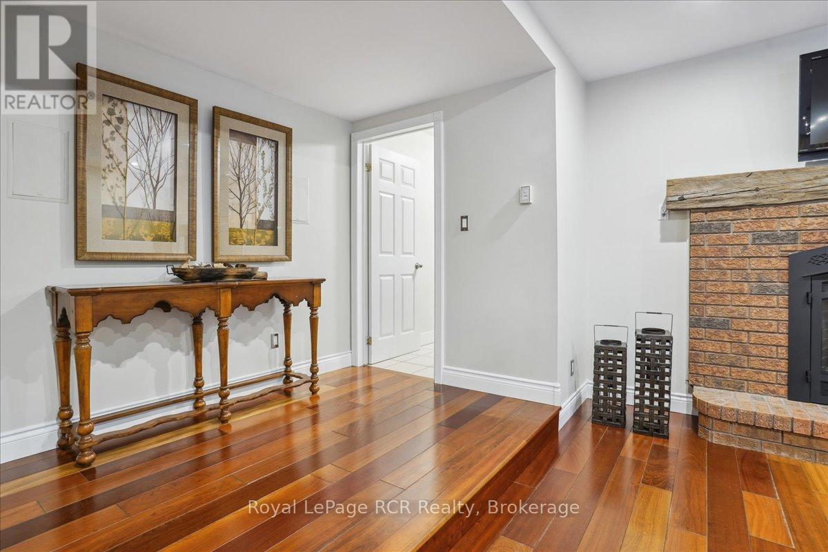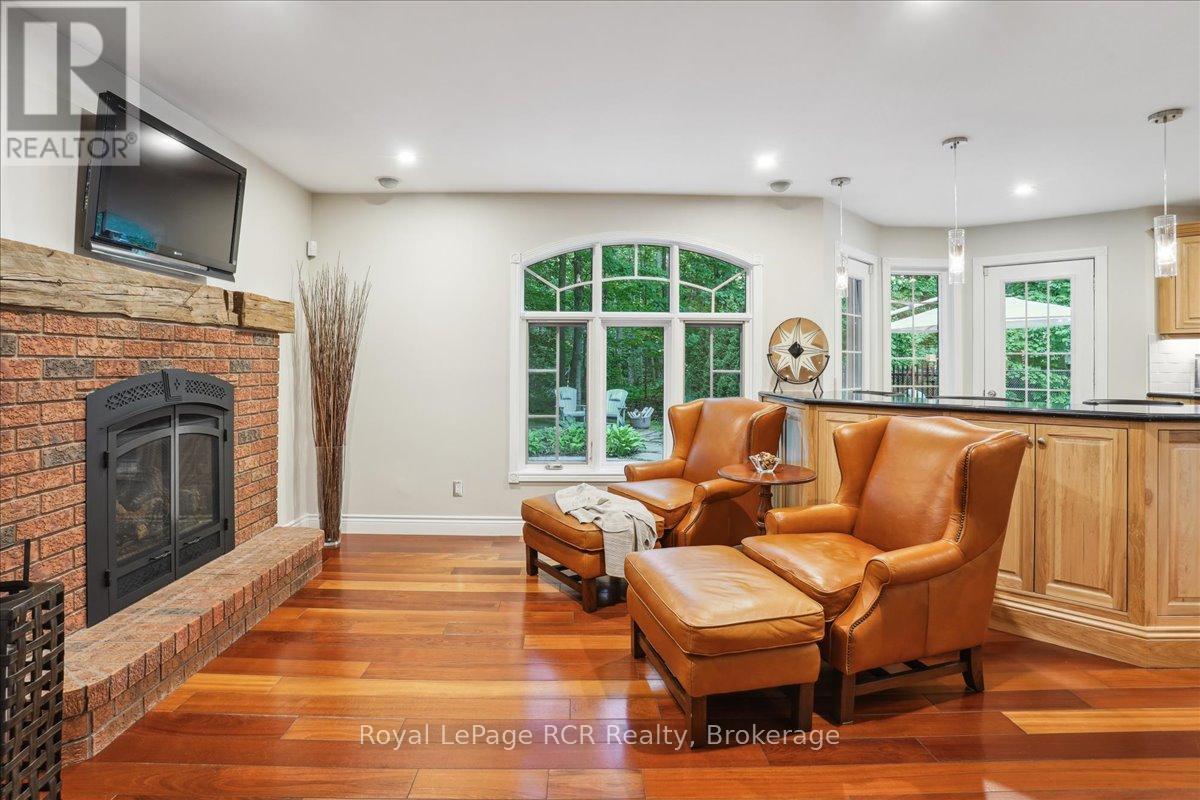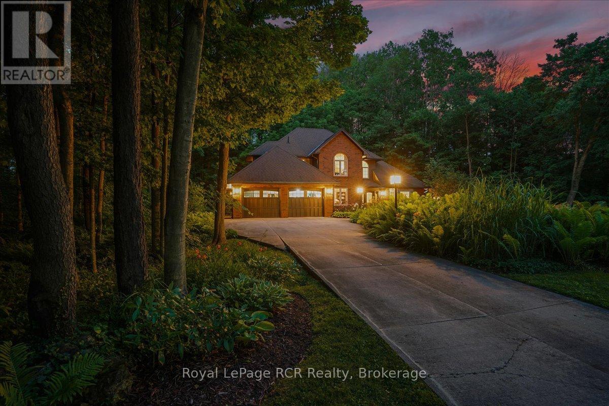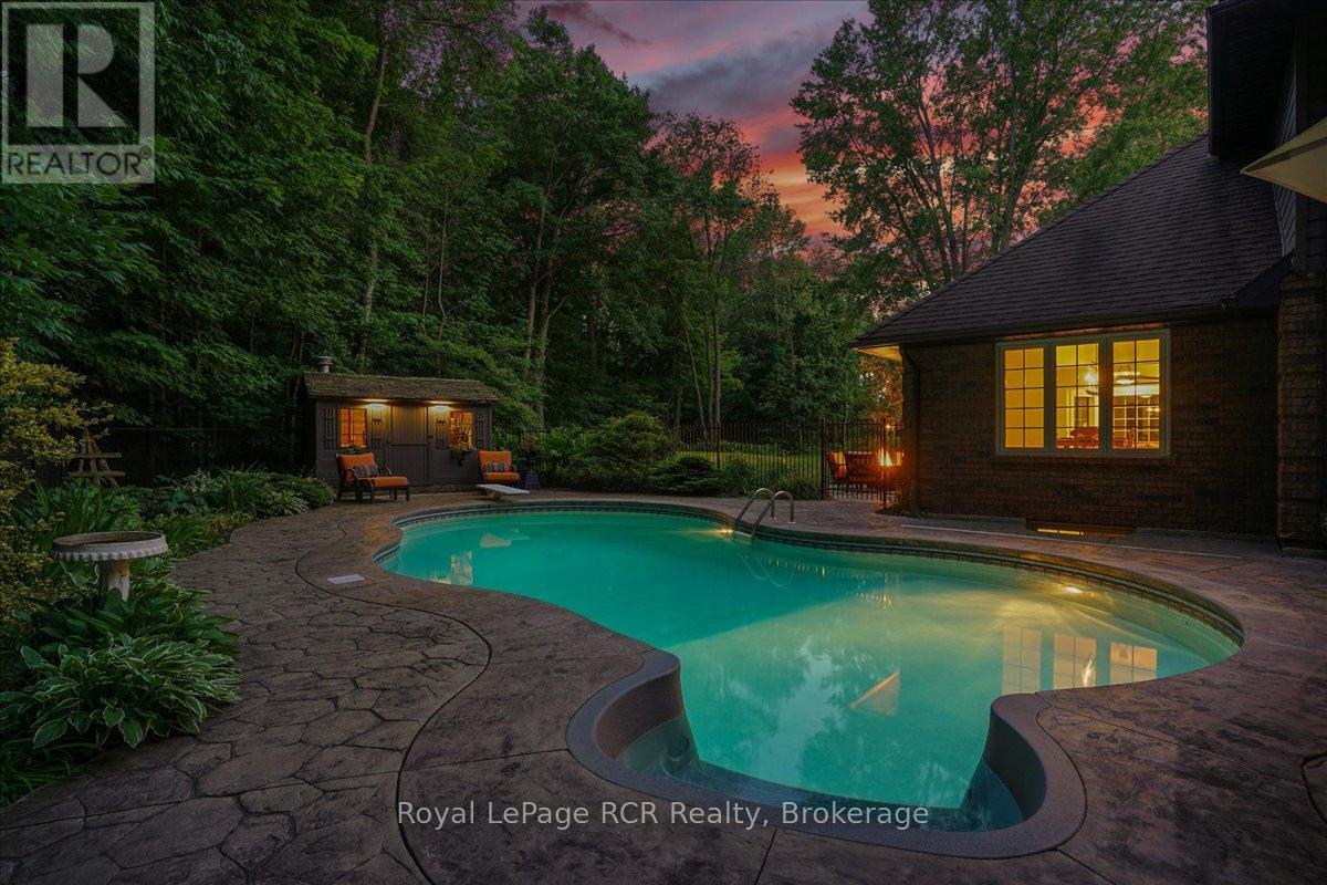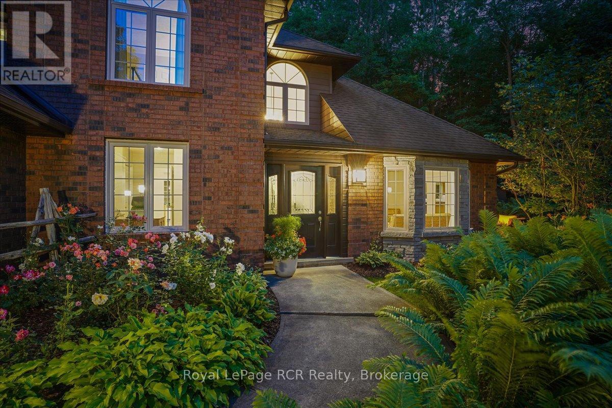Discover a sophisticated retreat in the heart of Pottawatomi Village, just minutes from Owen Sound. This stunning two-storey brick home is a true labour of love, meticulously updated by owners who have infused every corner with warmth and high-end style. The main floor balances productivity and play, featuring a bright, dedicated office alongside a showstopping Brubacher designed kitchen. With sleek quartz countertops and premium stainless steel appliances, the kitchen flows naturally into a fireside sitting room, the ultimate spot for slow mornings and cozy evenings. The luxury continues upstairs in the primary suite, a private sanctuary boasting a walk-in closet and a spa-like ensuite with a classic clawfoot tub. Two additional bedrooms and a finished basement, that's ready for movie marathons, a home gym, or even a fourth bedroom, there's plenty of room for your life to grow. Throughout the home, gleaming cherry hardwoods and slate tiles are bathed in natural light, creating an atmosphere that is both polished and incredibly inviting. The backyard is a private, ravine-backed resort designed for effortless entertaining. Spend your summers lounging by the heated inground pool or hosting alfresco dinners on the patio. As the sun sets, the pool's integrated lighting and the crackling firepit transform the yard into a chic, starlit lounge. Blending sophisticated design with a heartfelt touch, this rare gem offers an unparalleled lifestyle in one of the region's most sought-after communities. (id:64974)