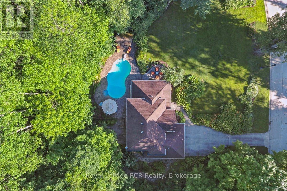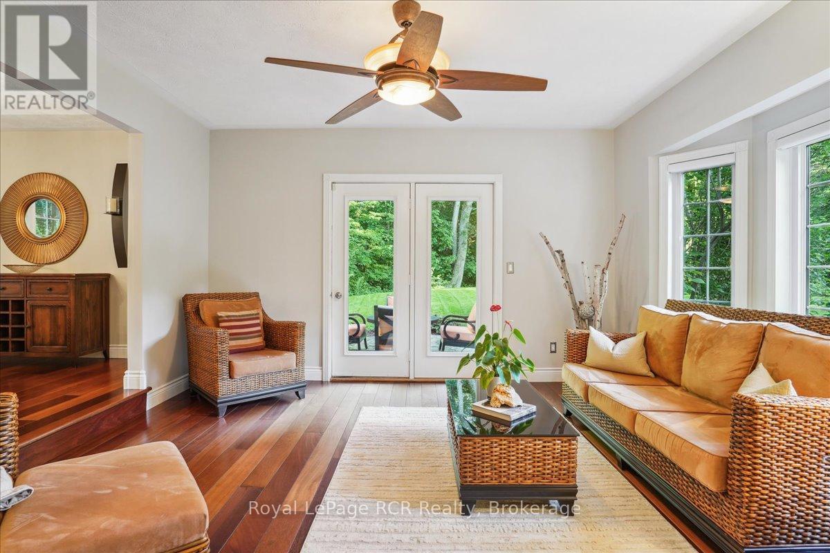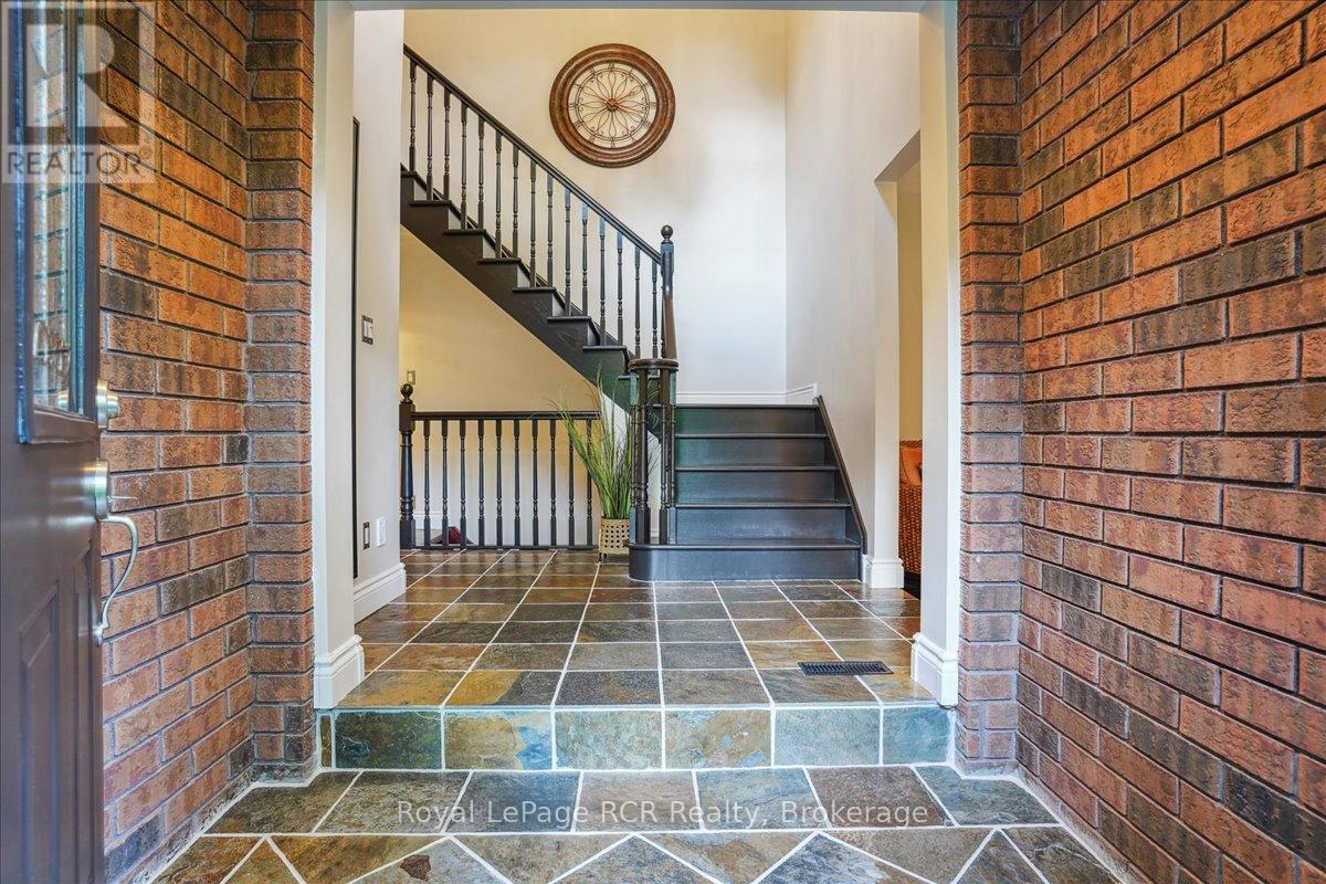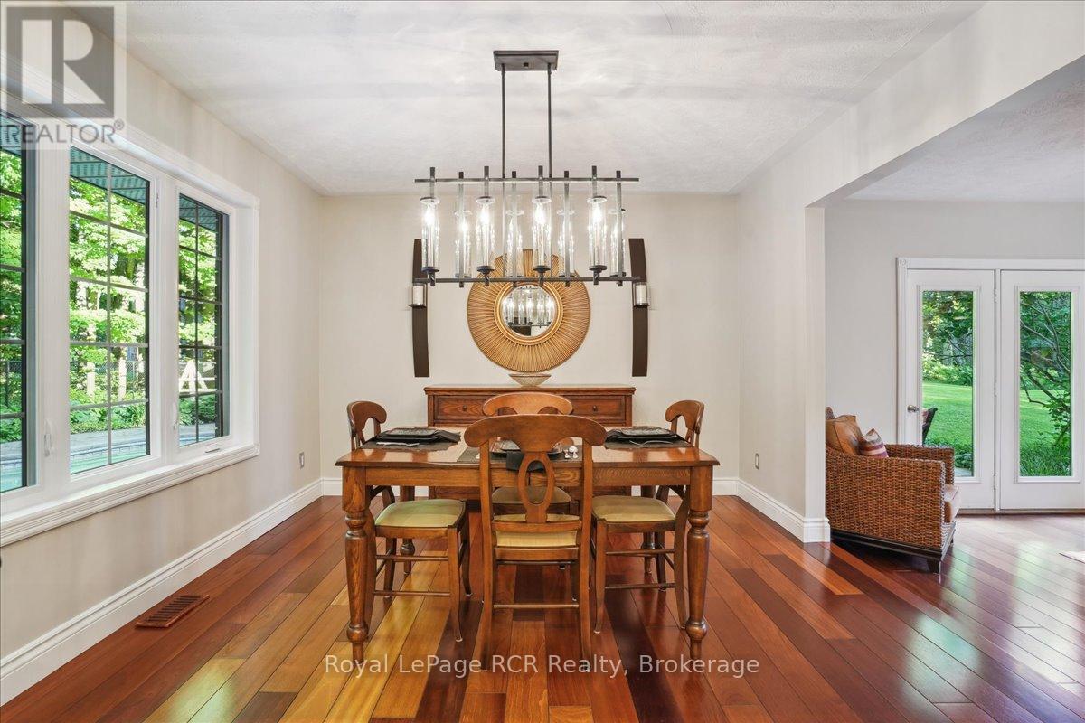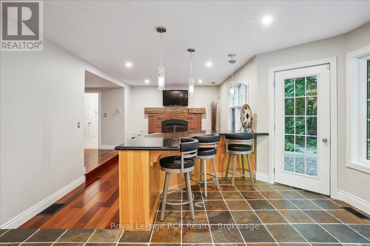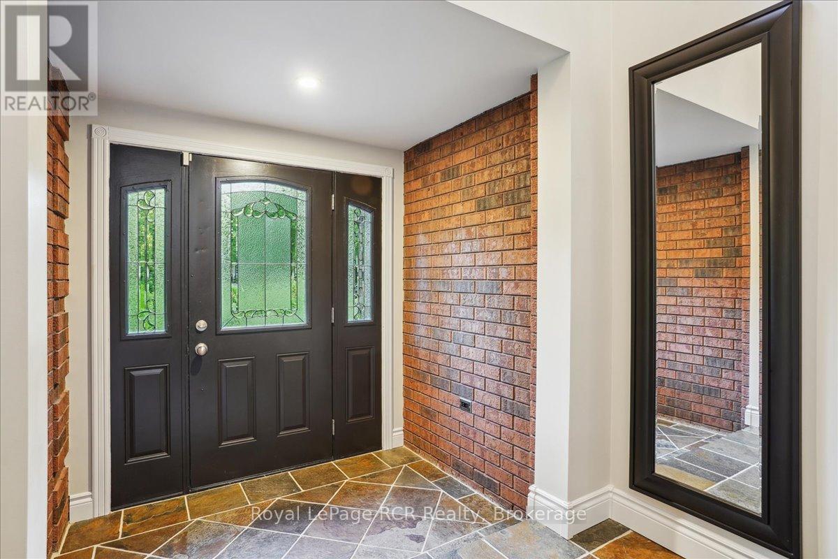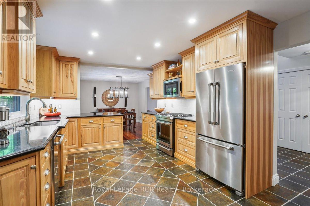 Discover a sophisticated retreat in the heart of Pottawatomi Village, just minutes from Owen Sound. This stunning two-storey brick home is a true labour of love, meticulously updated by owners who have infused every corner with warmth and high-end style. The main floor balances productivity and play, featuring a bright, dedicated office alongside a showstopping Brubacher designed kitchen. With sleek quartz countertops and premium stainless steel appliances, the kitchen flows naturally into a fireside sitting room, the ultimate spot for slow mornings and cozy evenings. The luxury continues upstairs in the primary suite, a private sanctuary boasting a walk-in closet and a spa-like ensuite with a classic clawfoot tub. Two additional bedrooms and a finished basement, that's ready for movie marathons, a home gym, or even a fourth bedroom, there's plenty of room for your life to grow. Throughout the home, gleaming cherry hardwoods and slate tiles are bathed in natural light, creating an atmosphere that is both polished and incredibly inviting. The backyard is a private, ravine-backed resort designed for effortless entertaining. Spend your summers lounging by the heated inground pool or hosting alfresco dinners on the patio. As the sun sets, the pool's integrated lighting and the crackling firepit transform the yard into a chic, starlit lounge. Blending sophisticated design with a heartfelt touch, this rare gem offers an unparalleled lifestyle in one of the region's most sought-after communities. (id:64974)