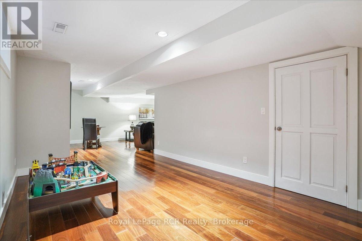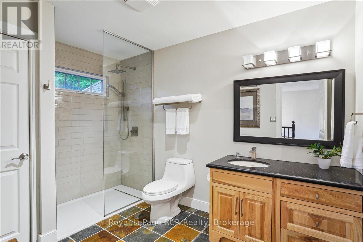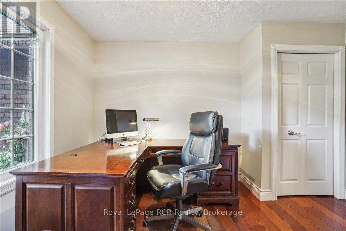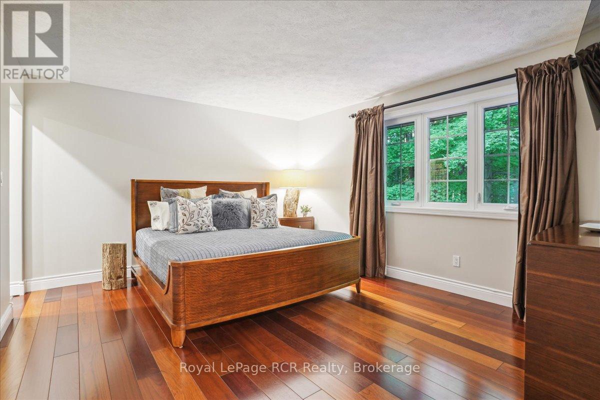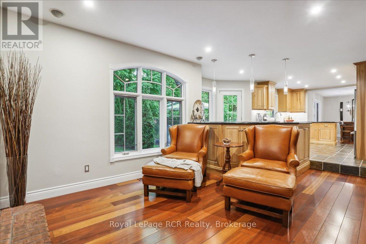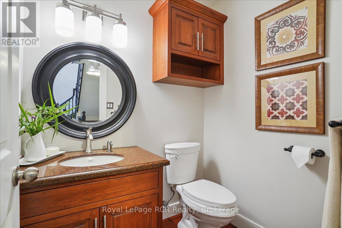 Discover a sophisticated retreat in the heart of Pottawatomi Village, just minutes from Owen Sound. This stunning two-storey brick home is a true labour of love, meticulously updated by owners who have infused every corner with warmth and high-end style. The main floor balances productivity and play, featuring a bright, dedicated office alongside a showstopping Brubacher designed kitchen. With sleek quartz countertops and premium stainless steel appliances, the kitchen flows naturally into a fireside sitting room, the ultimate spot for slow mornings and cozy evenings. The luxury continues upstairs in the primary suite, a private sanctuary boasting a walk-in closet and a spa-like ensuite with a classic clawfoot tub. Two additional bedrooms and a finished basement, that's ready for movie marathons, a home gym, or even a fourth bedroom, there's plenty of room for your life to grow. Throughout the home, gleaming cherry hardwoods and slate tiles are bathed in natural light, creating an atmosphere that is both polished and incredibly inviting. The backyard is a private, ravine-backed resort designed for effortless entertaining. Spend your summers lounging by the heated inground pool or hosting alfresco dinners on the patio. As the sun sets, the pool's integrated lighting and the crackling firepit transform the yard into a chic, starlit lounge. Blending sophisticated design with a heartfelt touch, this rare gem offers an unparalleled lifestyle in one of the region's most sought-after communities. (id:64974)