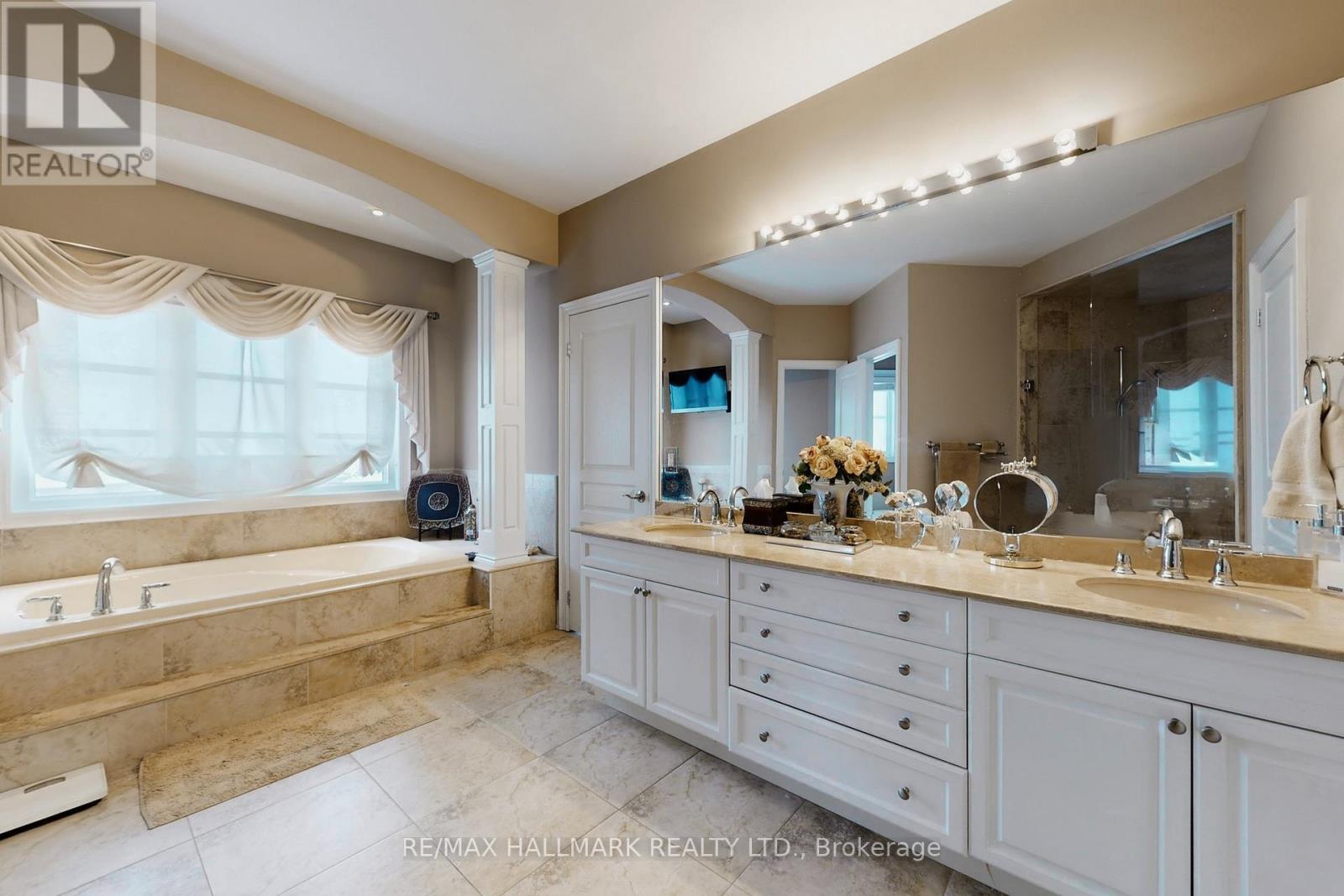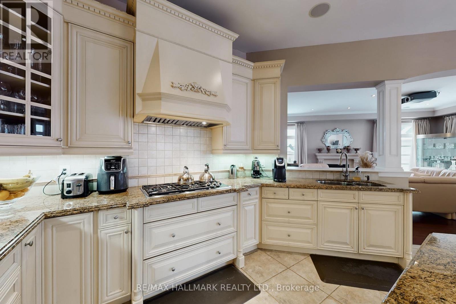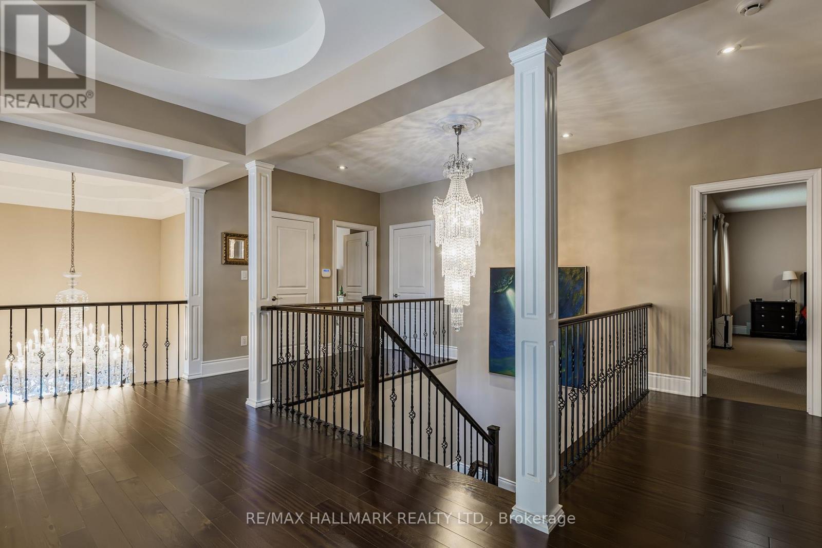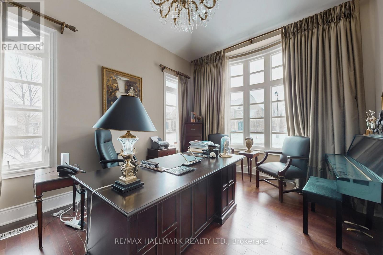Exquisite detached residence offering approx. 6,000 sqft (5,990 sqft as per Builders floorplan) of refined living space, meticulously maintained by the original owners & set on a premium corner lot in the prestigious Belfountain community. This elegant 4-bdrm home offers ensuites for every bedroom, a walk-out basement, & exceptional curb appeal. The impressive main level showcases 10' ceilings, a grand double-door entrance, rich hardwood flooring, pot lights, blt-in speakes, & detailed wainscoting in the formal living and dining rooms. The thoughtfully designed layout is ideal for both everyday living & entertaining. The gourmet kitchen is appointed with granite countertops, blt-in appliances, oversized centre island, premium custom cabinetry & opens seamlessly to the family rm. A private library with vaulted ceiling & French doors offers a quiet workspace or retreat. Iron picket railings & an oak staircase lead to the upper & lower levels, highlighting the home's craftsmanship throughout. The primary suite is not to be missed w/fireplace, sep sitting area & spa-like ensuite. Additional features incl a rare 4-car tandem garage with interior access, extended driveway parking for up to 8 vehicles, plywood subfloors, 2 cold rooms, rough-in for a 3-piece bath in bsmnt, and a separate bsmt entrance offering excellent future potential. Ideally located minutes from shopping, golf courses, Highway 404, and top-tier schools including St. Andrew's College. An exceptional property combining luxury, space, & lifestyle in a sought-after setting. (id:64974)