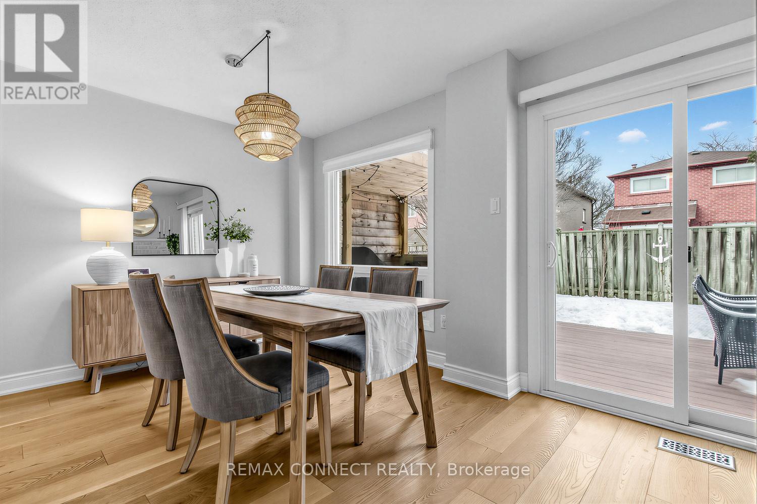 Welcome to 123 Chatfield Drive, a beautifully maintained 2-storey detached home in the highly sought-after Ajax Central West community. Surrounded by mature trees and located close to excellent schools, parks, shopping, and transit, this is a neighbourhood families love. Step inside to a bright and welcoming main floor featuring an inviting living and dining space with fireplace, perfect for everyday living and entertaining. The kitchen offers a functional layout with breakfast area and walk-out to the backyard, while a convenient mudroom provides interior access to the attached garage. Upstairs, you'll immediately notice the thoughtful updates completed in 2023, including new flooring, trim, interior doors, and modern light fixtures throughout the entire level. The spacious primary bedroom features a private ensuite, and the main bathroom was beautifully renovated in 2022 with a clean, timeless finish. The finished basement provides flexible additional living space ideal for a recreation room, home gym, office, or play area, along with an additional powder room for convenience. Outdoor living is just as impressive. The fully fenced backyard features a large deck with a pergola-covered entertaining area and custom outdoor serving station, perfect for summer evenings and family gatherings. The fence and side gate were updated in 2024, and the home's curb appeal was refreshed with a new front door installed in 2025. A new A/C unit (2023) adds modern comfort and efficiency. Located minutes to schools, parks, community centers, shopping, and major commuter routes, this home offers comfort, space, thoughtful updates, and location all in one. Move in and enjoy everything Ajax has to offer. (id:64974)