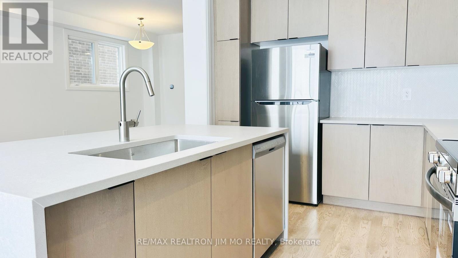 FULLY UPGRADED 4 BED, 3 BATH END-UNIT Brand New TOWNHOME For Lease. Open-concept main level with 9-ft ceilings. Modern kitchen with huge central island, stunning waterfall quartz countertops, upgraded backsplash, stainless appliances, and sleek LED pot lights. Spacious family room features a dramatic black marble surround electric fireplace as the focal point. Premium finishes throughout: stained hardwood floors and stairs (no carpet), elegant primary suite with walk-in closet and ensuite featuring double sinks. Second floor offers 9-ft ceilings and 4 generously sized bedrooms. Minutes to Hwy 404, top schools, shopping, parks, and transit. Move-in ready - modern luxury living awaits! (id:64974)