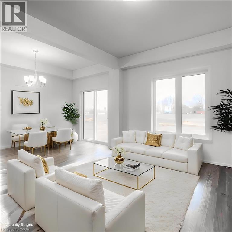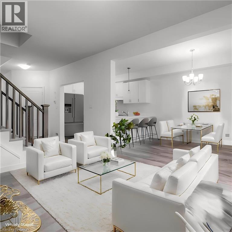 Welcome to 123 Mattingley Street, this brand new modern 3-bedroom, 3-bathroom townhome, thoughtfully designed for today’s lifestyle. Flooded with natural light from oversized windows, the main floor features light coloured laminate flooring that adds warmth and a clean, contemporary feel throughout. The stylish white kitchen is a true showstopper, complete with sleek black hardware, sparkling white quartz countertops, and a seamless flow into the open-concept living and dining areas. A patio door leads directly to the backyard, making indoor-outdoor living effortless. The main floor layout is perfectly designed for entertaining and keeping everyone connected—whether you're hosting guests or enjoying time with family. Ideally located in a family-friendly neighbourhood, everything you need is just moments away. Enjoy walking distance to schools, plus easy access to shops, restaurants, Braves Swim School, golf simulation, scenic trails, downtown, and Highway 403 for convenient commuting. This is modern living at its best—stylish, functional, and perfectly situated. (id:64974)