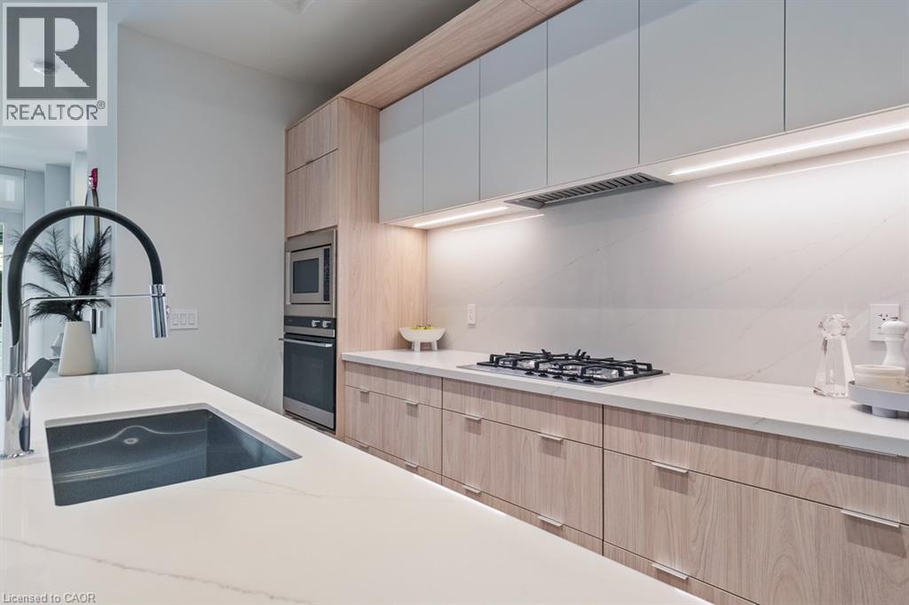 LIVE IN SOUTH OAKVILLE's NEWEST LUXURY BUILDING, THE BERKSHIRE. ONLY 7 REMAINING SUITES AVAILABLE. First class amenities including Concierge,Roof Top Oasis, Party Room, Gym with state of the art equipment,Visitor Parking.Experience luxury living in South Oakville with this stunning 2-bedroom plus den model suite at The Berkshire Residences, now move-in ready. Offering 1,637 square feet of beautifully designed space, this suite features soaring 10-foot ceilings, a spacious laundry room, and premium brushed oak hardwood flooring throughout. The modern kitchen is a chef's dream, complete with soft-close cabinetry, a large island with a waterfall edge, quartz countertops and matching backsplash, and a full 6-piece stainless steel appliance package. Additional upgrades include extended-height kitchen cabinets, upgraded vanities and tiles in all bathrooms, and a sleek Napoleon Entice Series electric fireplace with a contemporary stone surround. Enjoy the comfort of heated flooring in the bathrooms and the sophisticated, townhouse-style feel of the layout. Two parking spaces and a storage locker are also included, offering added convenience in this upscale residence. Steps to Lake Ontario, waterfront promenades and downtown Oakville's finest shops and restaurants. IMMEDIATE OCCUPANCY AVAILABLE The Berkshire Residences combines striking architecture with modern elegance, making this suite a perfect place to call home. Condo Fees approximately. no development charges (id:64974)