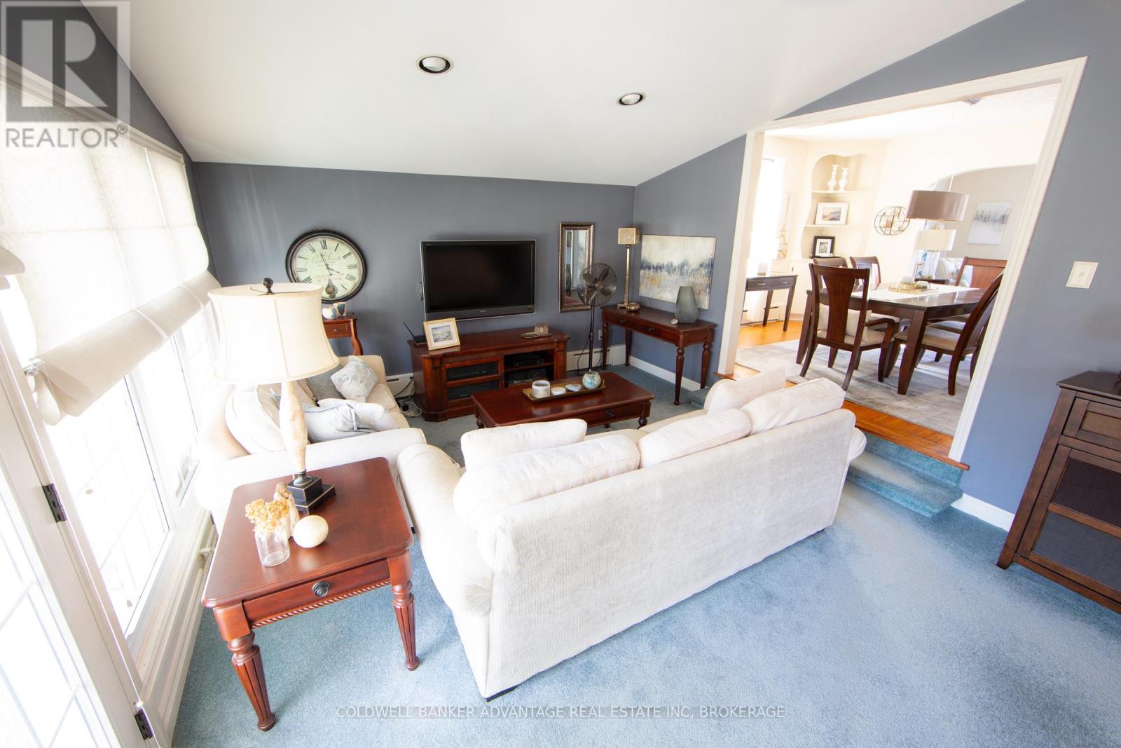 Welcome to this beautifully updated two-storey family home, ideally situated in the highly sought-after Chippawa Park neighbourhood. Offering timeless charm and modern comfort, this residence is perfect for growing families or those who love to entertain. The main level features elegant hardwood flooring and a warm, inviting formal living room complete with a cozy fireplace and custom built-ins, an ideal space to relax or gather with guests. A formal dining room provides the perfect setting for hosting, while the updated eat-in kitchen offers both style and functionality for everyday living. Just off the kitchen, the sunken living room offers a fantastic additional gathering space-perfect for family time, entertaining, or movie nights. Large windows provide an abundance of natural light and allow you to keep an eye on the kids while preparing meals. Convenient main floor laundry and a powder room add to the home's practicality. Upstairs, you'll find three well-appointed bedrooms and a tastefully updated full bathroom, creating a comfortable and private family retreat. Enjoy additional living space in the fully finished basement-perfect for a rec room, home office, or play area. Step outside to your private oasis featuring beautifully landscaped front and back yards, highlighted by a stunning stamped concrete patio-ideal for outdoor dining and summer evenings. A screened-in three-season room extends your living space and offers a peaceful retreat to enjoy the outdoors in comfort. Extensively updated throughout, renovations include floors, walls, ceilings, windows, and doors, offering peace of mind and modern appeal. Complete with a single-car attached garage and located in one of the city's most desirable communities, this home is a rare opportunity you won't want to miss! (id:64974)