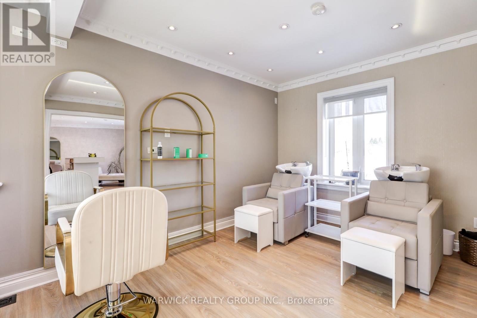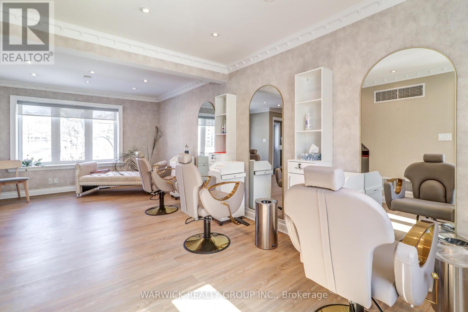 Built-out healthcare, beauty, or retail space in a prime location within walking distance of Yonge & Sheppard. The unit offers on-site parking and is fully furnished for a hair salon, featuring a reception desk, newer equipment, 5 styling chairs, 2 barber chairs, and accompanying workstations. The second floor includes 2 massage tables, plus a separate desk and office area, offering added flexibility for wellness or service-based uses. Available on a sublease term until December 30, 2027. (id:64974)
