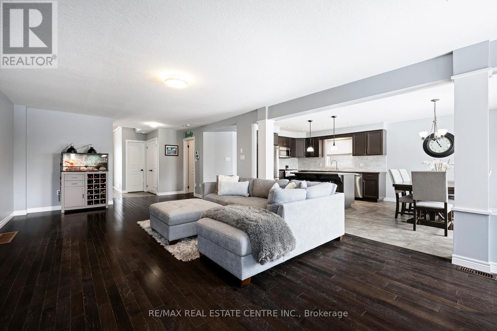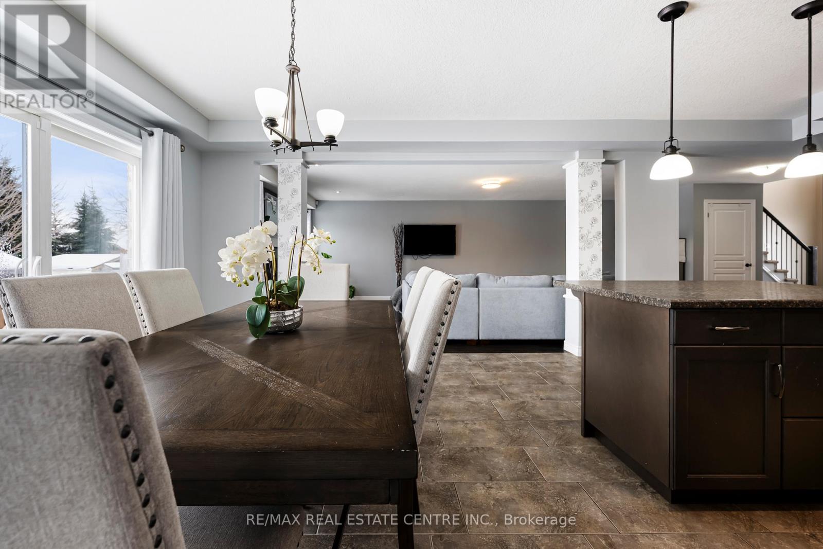 Welcome to 123 Taylor Drive in Grand Valley, a detached Thomasfield built home in the Mayberry Hill community. You get a quiet, family friendly street, a 40 foot lot, a two car garage, and a private fully fenced backyard framed by mature trees. With a gazebo and shed already in place, the yard is ready for summer dinners with family, friends, and dogs... or weekend projects. Inside, you have 2,181 square feet (per MPAC) above grade and a layout that keeps life simple. Large windows bring in natural light, the living room centres around a gas fireplace, and the kitchen offers stainless steel appliances, plenty of counter space, a large pantry, and generous cabinet storage. Main-floor laundry and direct access to the garage make day-to-day routines easier. Upstairs, three bedrooms plus a skylit den or flex space fit first-time buyers, growing families, and downsizers who still want room for work or guests. The primary suite includes two walk-in closets and a five-piece ensuite with double vanities, a spacious walk-in shower, and a soaker tub. Downstairs, the basement stays open and unfinished, ready for your plans, whether that's a rec room, home gym, extra bedroom, or a play space. You also get a bathroom rough-in and a cold room, so the practical pieces are already in place. Grand Valley offers small-town living, with multiple parks and trails nearby for a quick hike, plus countryside routes for longer rides and snowmobiling in-season. You also stay within easy reach of Orangeville, Fergus, and the GTA for commuting and bigger city errands. (id:64974)