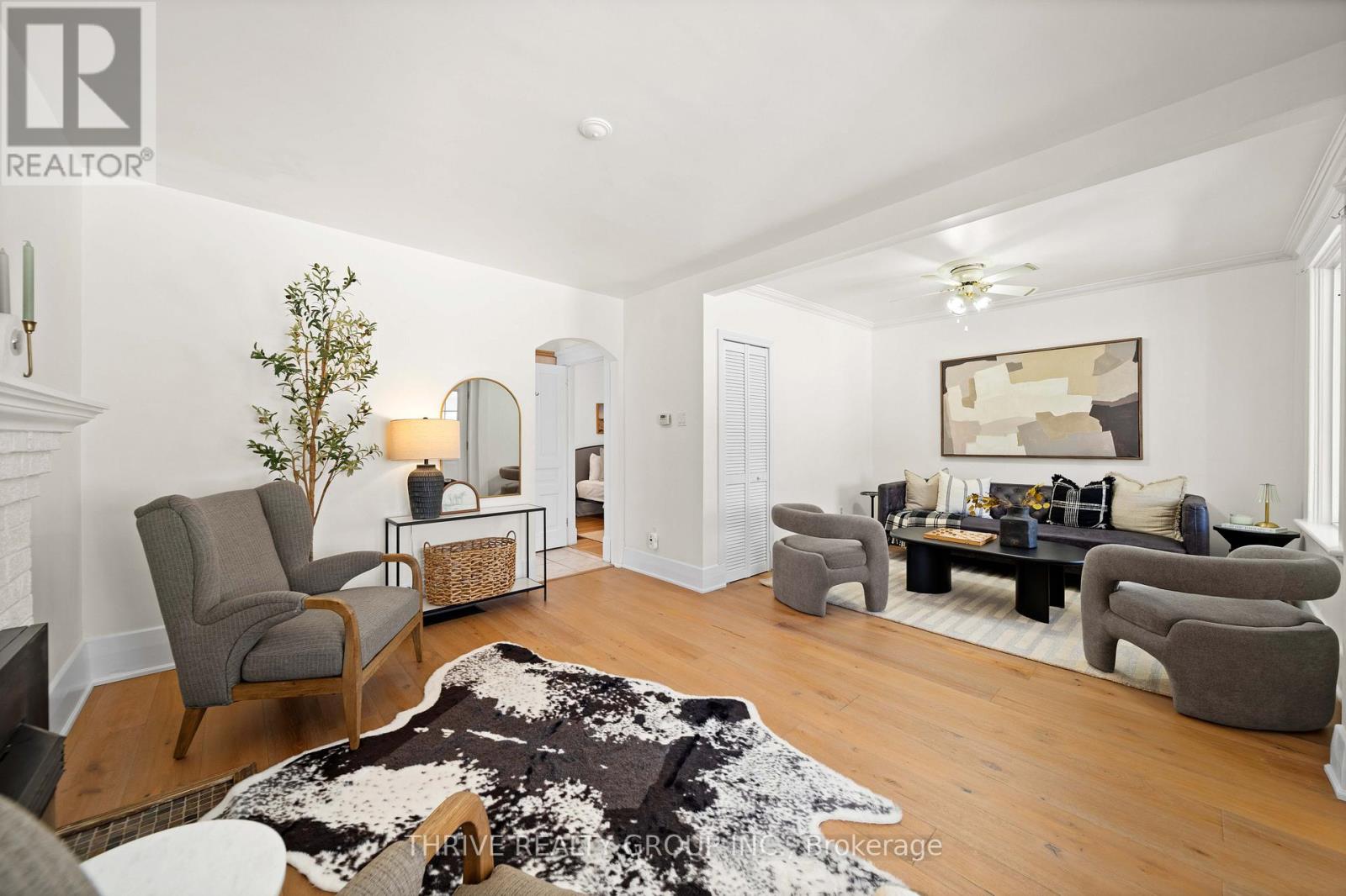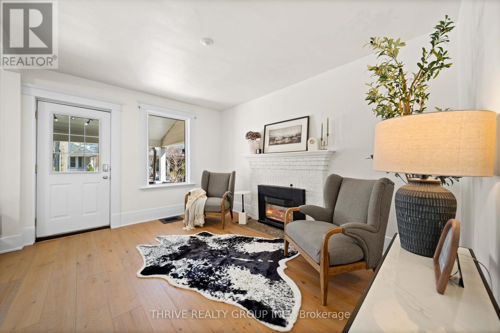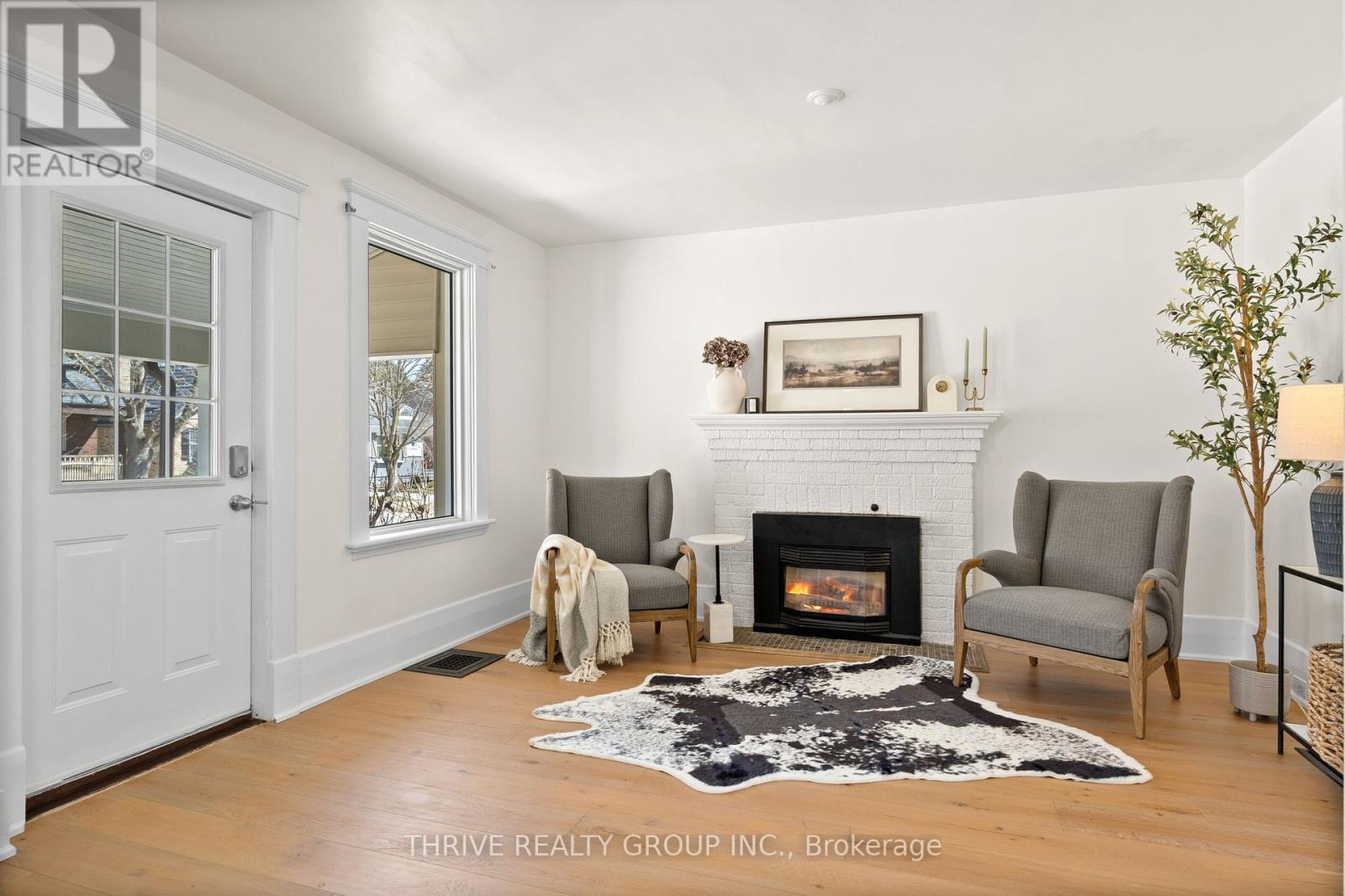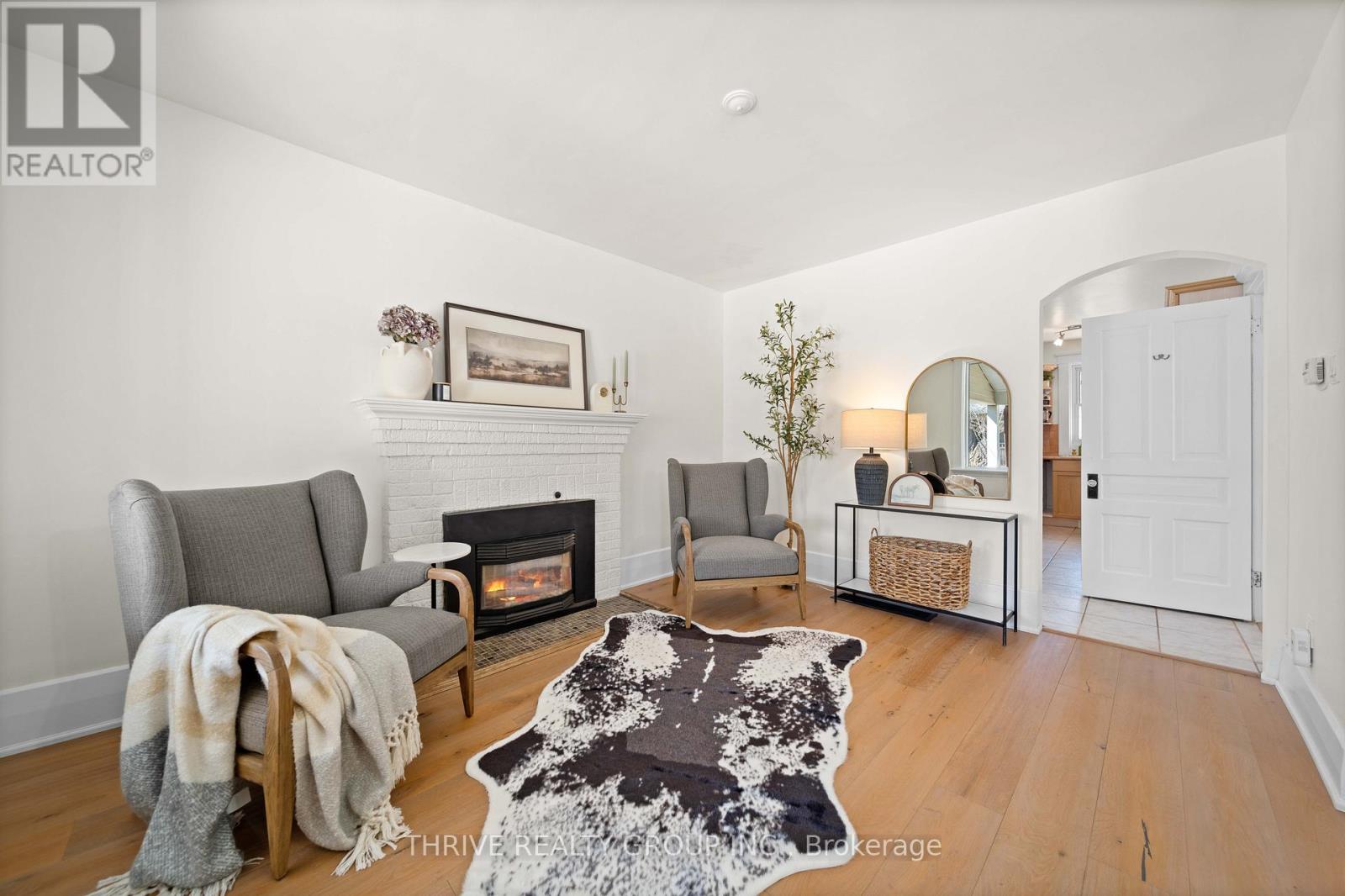 A charming bungalow in the heart of Old North, perfectly situated on a quiet street and just a short walk to local cafés, pubs, parks, and more. This inviting home offers the ideal blend of character, updates, and lifestyle. Step inside to find two separate living spaces, including a cozy front living room with a gas fireplace, perfect for relaxing evenings. The kitchen is functional and bright, featuring an eat-in dining area and views of the backyard. The main floor also includes a spacious primary bedroom with ample storage and a beautiful 4-piece bathroom. Downstairs, you'll find a finished lower level with two additional rooms and a 2-piece bathroom, offering flexibility for guests, a home office, or extra living space. Recent updates throughout the home provide peace of mind and modern comfort, including professionally installed engineered hardwood flooring (2026), updated bathroom finishes (2026), a new washer (2026), dryer (2025), and hot water heater (2026), fresh paint, new carpet, and keyless entry recently installed for your convenience. Other perks include forced/central air heating and cooling, modern windows (and lots of them), and newly installed front steps (2026). One of the best highlights: the deep 150-foot lot with fully fenced backyard - featuring a patio ideal for outdoor dining or lounging, a stunning magnolia tree, a fire pit area perfect for summer nights under the stars, and more than enough space for an addition. With parking for two cars and an unbeatable location, this home is perfect for first-time buyers, downsizers, or anyone looking to get into one of London's most sought-after neighbourhoods. Welcome home to Thornton Ave, one of the most comfortable and cozy streets in central London! (id:64974)
