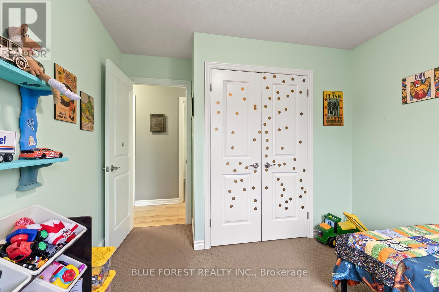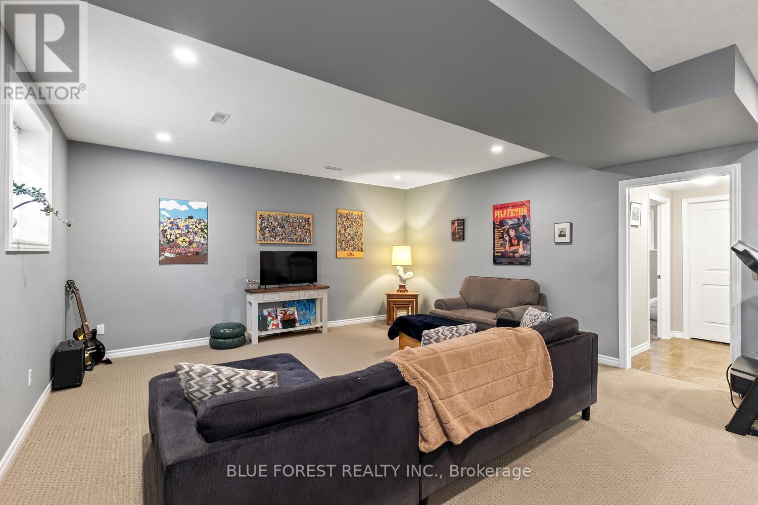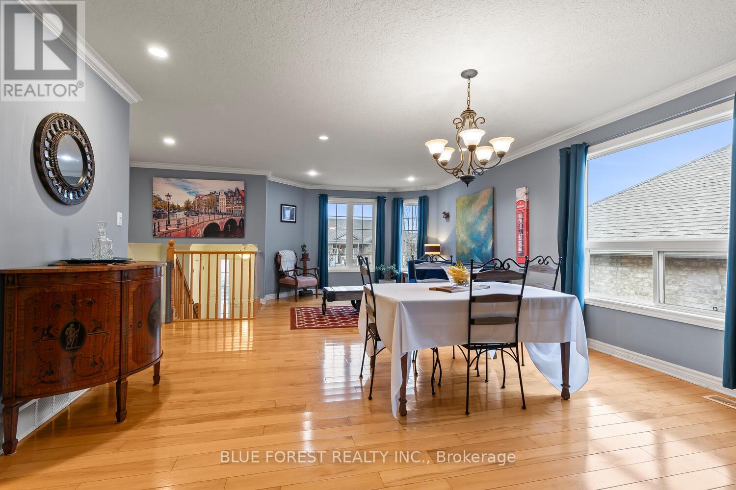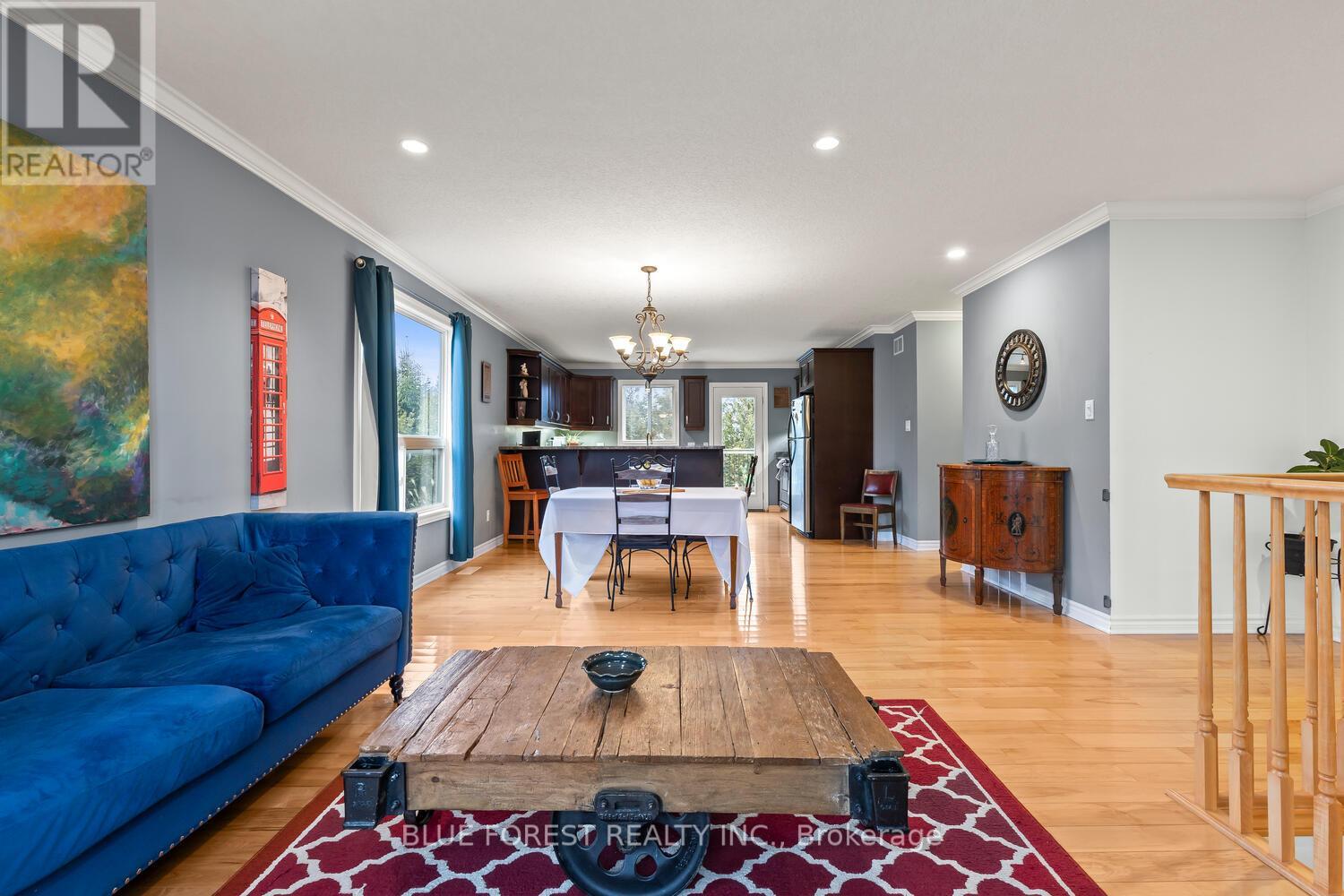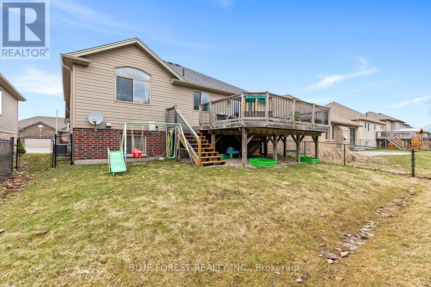 Enjoy warm summer evenings and breathtaking sunsets from your own back deck in this beautifully maintained 3+1 bedroom, 2 full bathroom home, ideally located in one of Lucan's most desirable neighbourhoods. Built in 2007, this inviting property is ready to welcome its next owner. Upon entry, you are greeted by a spacious foyer that leads into a bright, open-concept main floor. The well-appointed kitchen offers ample cabinetry, a convenient breakfast bar, and direct access to a large deck-perfect for entertaining or relaxing outdoors. The open living and dining area is highlighted by a large bay window overlooking the front yard, filling the space with natural light. The primary bedroom features cathedral ceilings and double closets, while two additional generously sized bedrooms and a four-piece bathroom complete the main level. The fully finished lower level offers a large family room wired for surround sound, a bright and functional office, a three-piece bathroom, and a spacious fourth bedroom. This wonderful home offers comfort, space, and an excellent location-an ideal opportunity to make lovely Lucan your home. (id:64974)