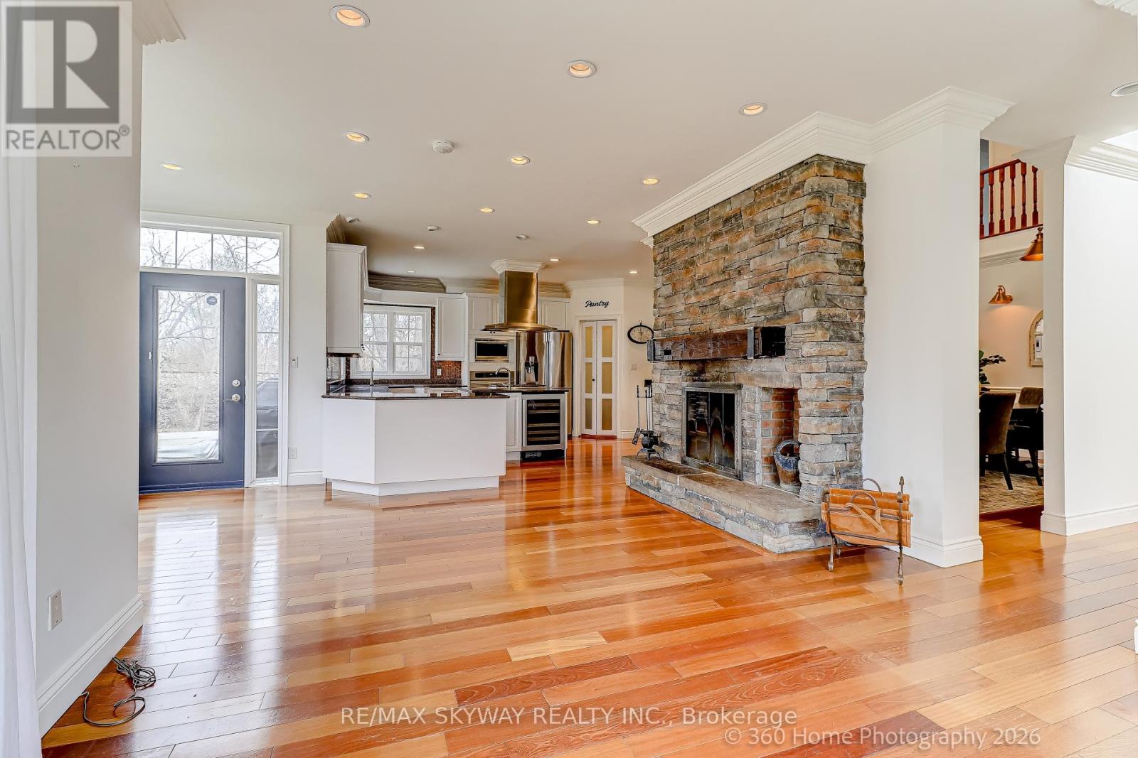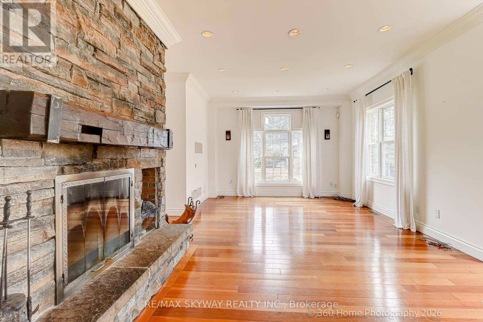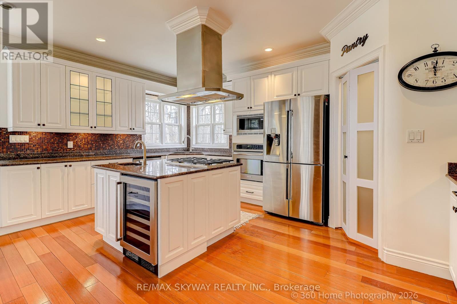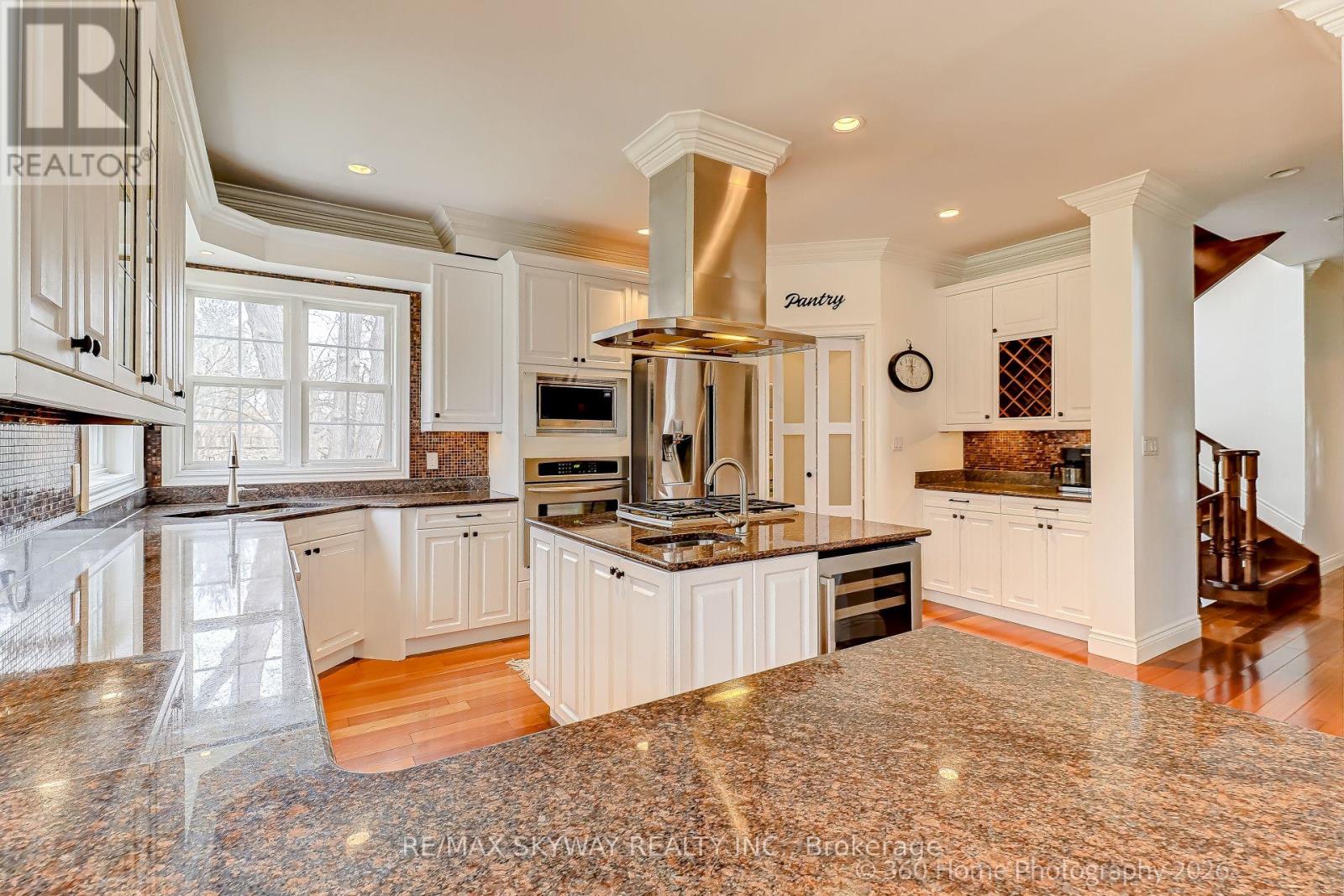 Custom Country Estate in Historic Churchville Experience the perfect blend of rural charm and modern luxury in this 4-bedroom, 4-bathroom estate. Tucked away on a quiet cul-de-sac in the scenic Credit River Valley, this home offers a peaceful sanctuary on over half an acre of private, mature land backing onto protected greenspace. Home Highlights: Grand Living: A sun-drenched, chef's kitchen with a walk-in pantry and center island overlooks a grand family room with a majestic stone fireplace. Formal Elegance: Separate dining room featuring soaring ceilings and a breathtaking two-story stone hearth. Flexible Spaces: Main-floor office with custom cabinetry and barn doors, plus a private Nanny/In-law suite with a 4-piece ensuite. Craftsman's Dream: Oversized detached double garage with a dedicated workshop area, perfect for hobbies and extra storage. The Lifestyle: Outdoor Adventure: Direct access to a "rail-to-trail" walking path and just steps from expansive local parks and the Credit River. Modern Reliability: Enjoy total peace of mind with a Generac backup generator, whole-home water filtration, heated bathroom floors, and a full security system. Prime Location: A hidden hamlet feel on the Mississauga/Brampton border, close to top-tier schools and major commuter routes. Discover the serenity of country living with all the city's conveniences. Available for lease now. (id:64974)