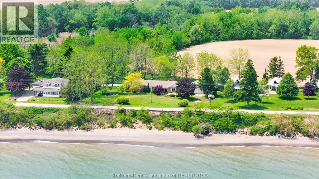 Perched on a serene vantage point overlooking the shimmering waters of Lake Erie, this sprawling custom-built brick rancher offers an unparalleled blend of space, privacy, and scenic beauty. Spanning over 2400 sq. ft. of main-floor living, this 4+1 bedroom home is designed for those who appreciate room to breathe. The interior boasts two massive living areas and a formal dining room perfect for hosting, while the primary suite serves as a private sanctuary with a full ensuite and walk-in closet. The full basement ensures you'll never run out of room to accommodate. Outside, the dual-aspect views are breathtaking: enjoy morning coffee on the rear deck overlooking lush farmland and woods (you may even be greeted by a family of deer), and spend your evenings on the front porch soaking in that ""million-dollar"" lake view. With sandy beach access nearby and a detached workshop for your hobbies, this isn't just a house - it’s a canvas waiting to become your masterpiece. Book your viewing today! (id:64974)
