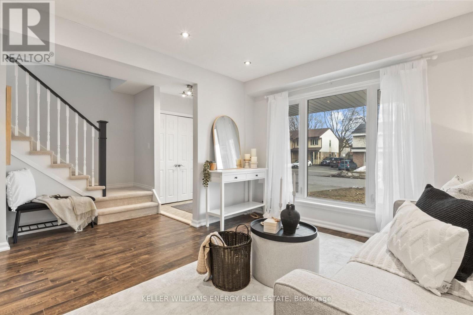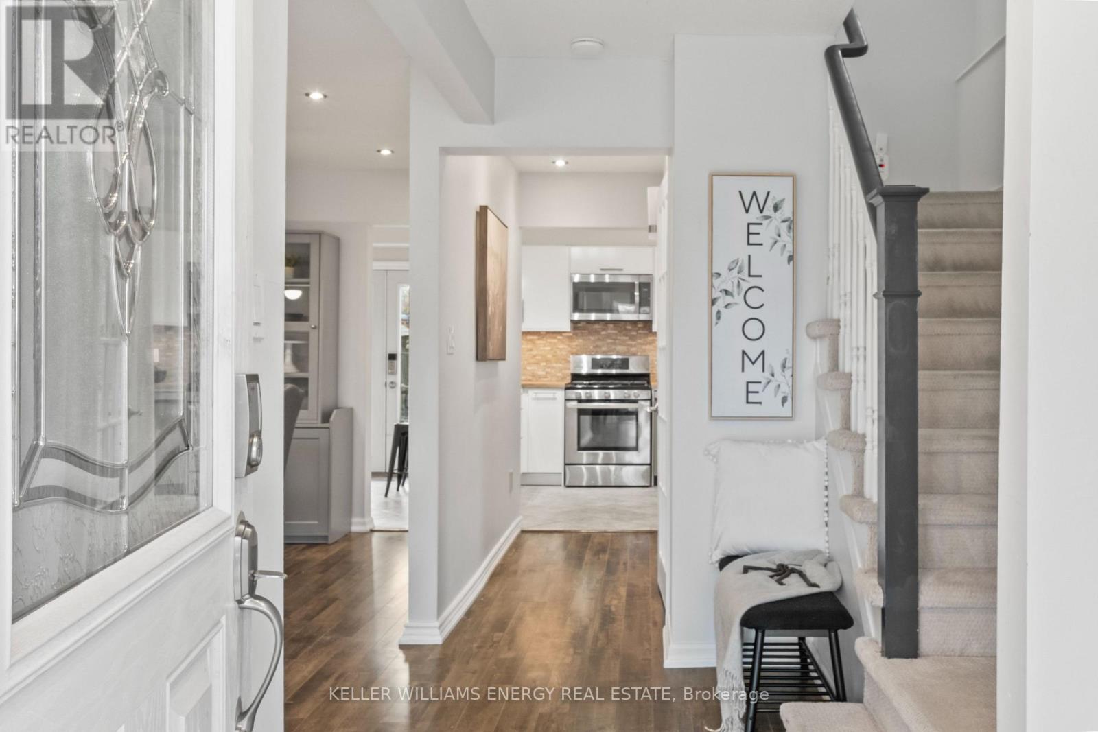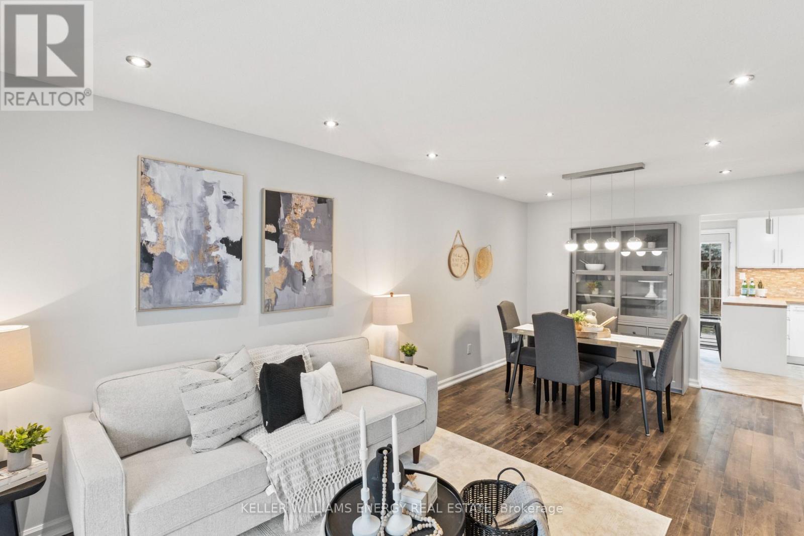 Location, location, location! This 3 bedroom, 2 Bathroom home with a finished basement is located in a family friendly neighbourhood of Eastdale. Close to all major amenities, walking distance to parks, schools, and transit, and just minutes to the 401 and 407, makes for an easy commute. The main level offers a bright living and dining area along with a fully renovated custom kitchen completed in 2026. The space features a wall to wall pantry for exceptional storage, a functional breakfast bar for casual dining, and a walkout to the backyard. The renovation also includes stainless steel appliances including a new fridge, stove, and new dishwasher installed in 2026. Pot lights throughout the main floor provide a bright and modern feel. The main floor also includes convenient laundry and a 2 piece washroom, and has been freshly painted throughout. Upstairs you will find 3 well sized bedrooms and a 4 piece bathroom. The oversized primary bedroom features a wall to wall PAX wardrobe system with built in hanging space for clothing, glass front drawers, and pull out organizers providing sleek storage and organization. The finished basement offers additional living space and a separate side entrance, creating flexible options for recreation, extended family use, or future possibilities, and has also been freshly painted. The property also offers parking for up to 4 vehicles, providing plenty of space for family and guests. A great opportunity to enjoy a well designed home with modern updates, functional living space, and a location that keeps you close to everything you need. (id:64974)