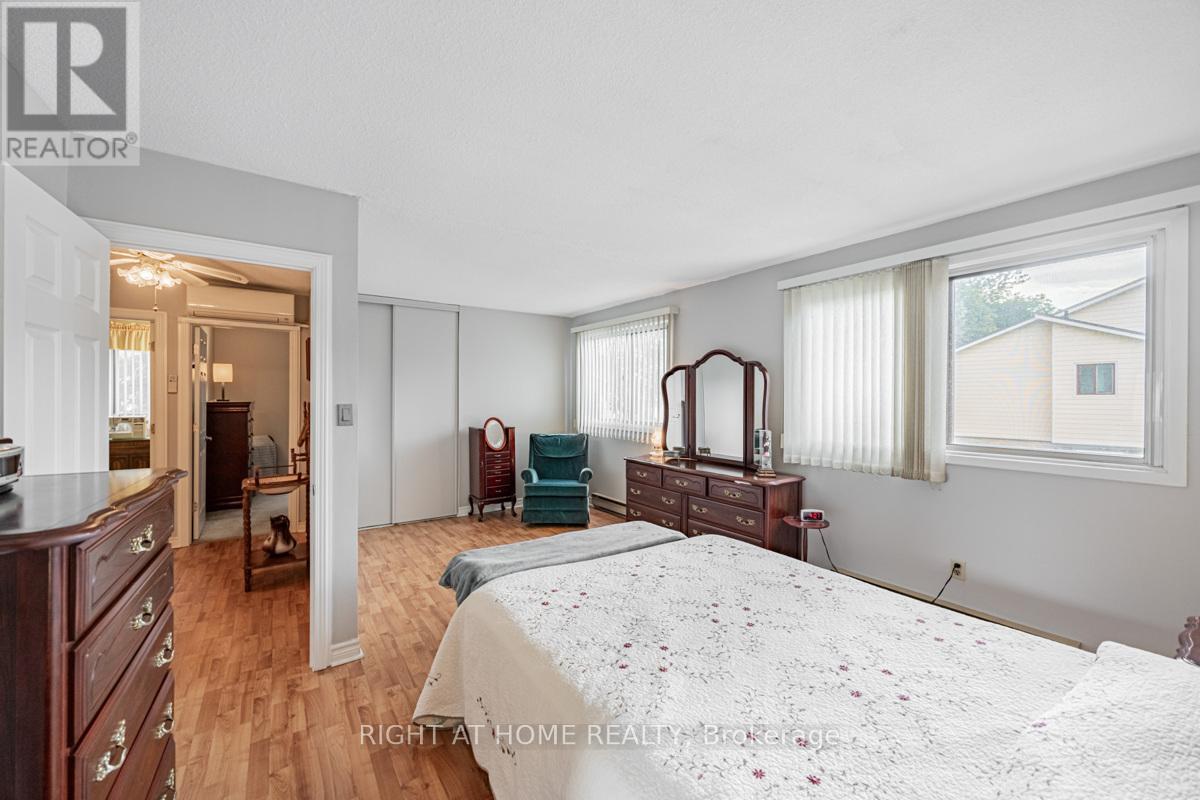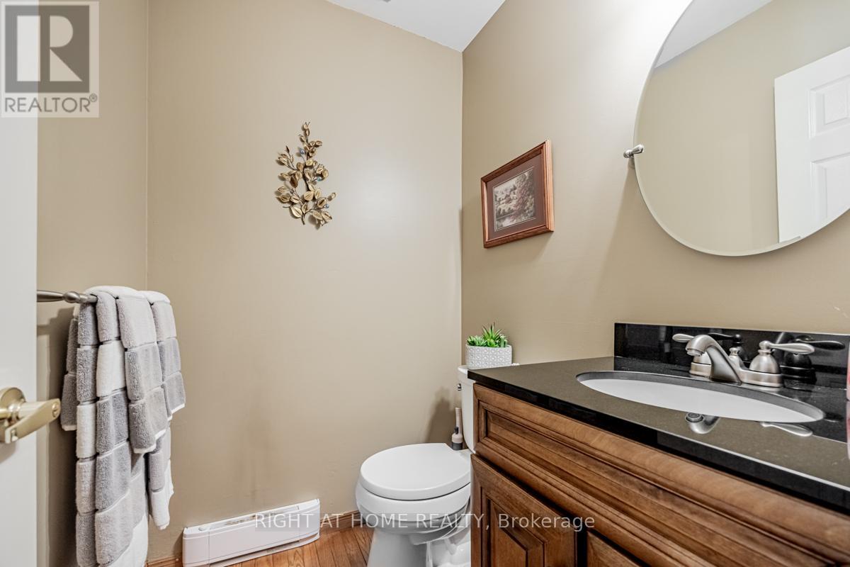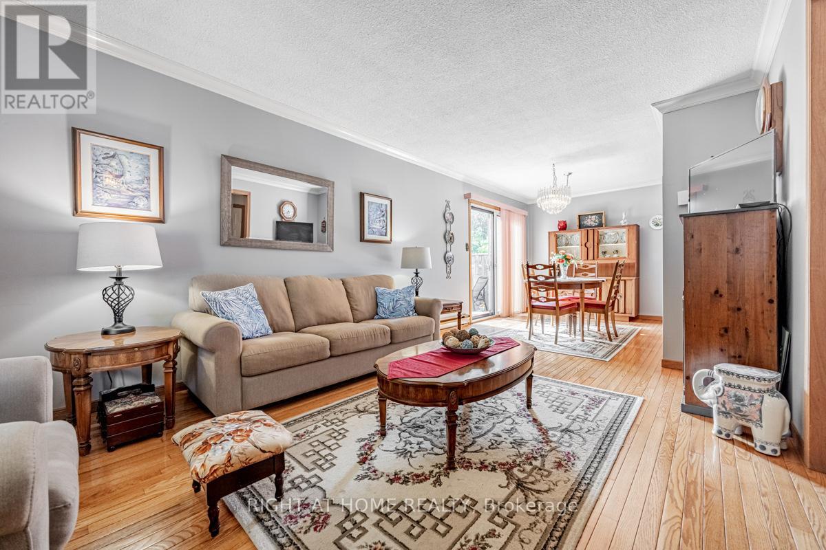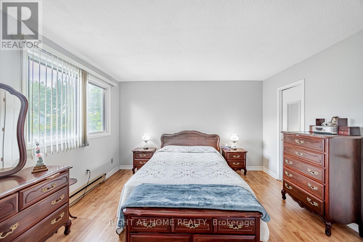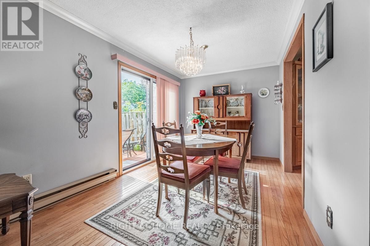 Rarely offered, End Corner Unit Townhome on Inside Quad Section, 4 bedroom model (now used as 3 with primary bedroom enlarged). Original owners, lovingly maintained, spacious layout with bright sun filled rooms, beautiful perennial gardens front and back, fenced yard, interlock front walkway, great location within complex, parking space close to unit. Main level features beautiful Hardwood Floors throughout, crown molding, walkout to sundeck from dining area through sliding glass doors, large entrance foyer with wainscoting and powder room. Updated eat-in kitchen with plenty of storage and under cupboard lighting. Oversized master bedroom with walk in closet, easy to convert back additional space to original 4th bedroom. Third bedroom features lots of built in storage for a great craft room, office or nursery. Finished basement family room with wet bar, gas fireplace as-is, large finished storage room and a pantry area with bathroom rough in. Over 2000 sq/ft of living space including basement. This 2 storey townhouse is in a wonderful family neighborhood, in the in the highly sought after Streetsville Community. Steps to Parks, Shopping, Walking Trails, Bus at your door, easy work commute close to Hwys 401 & 407, Minutes to Streetsville Go. The area complexes share Meadowvale South Rec Centre with outdoor pool, tennis/ basketball court, party room and more, lots of visitor parking. A great location for your growing family to call home. (id:64974)