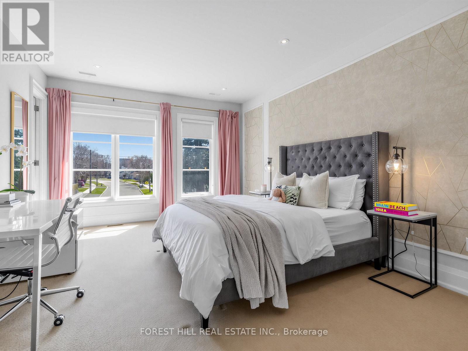 Welcome to 124 Laurelcrest Ave, exceptional custom-built residence in the highly sought-after Clanton Park community. Showcasing a timeless transitional design and impeccable craftsmanship, this sun-drenched home offers a highly functional layout with no expense spared. Striking brick exterior and thoughtfully designed interiors throughout.Featuring top-of-the-line Wolf and Sub-Zero appliances, eat-in kitchen table nook, oversized island, walk-in butlers pantry and servery, the chef's kitchen seamlessly integrates with the living spaces - complete with garden doors leading to an oversized deck, perfect for both everyday living and entertaining. Elegant combined living and dining area, main floor office, and a spacious mudroom with garage access plus a convenient side entrance.Upstairs offers 4 generously oversized bedrooms, each with ample storage. Primary bedroom complete with massive walk-in closet, luxurious spa-like ensuite, and beautiful vaulted ceilings. The fully finished walk-out basement includes an additional bedroom, 2 full bathrooms, large recreation room, gym area, and a private theatre room. Total of 6 luxurious bathrooms throughout.Set on a premium 50 x 120 ft lot, this home is filled with natural light, enhanced by a beautiful skylight. A rare offering combining sophistication, functionality, and modern comfort in a prime location close to amazing public schools, easy access to transit and minutes from shopping, dining and entertainment. (id:64974)