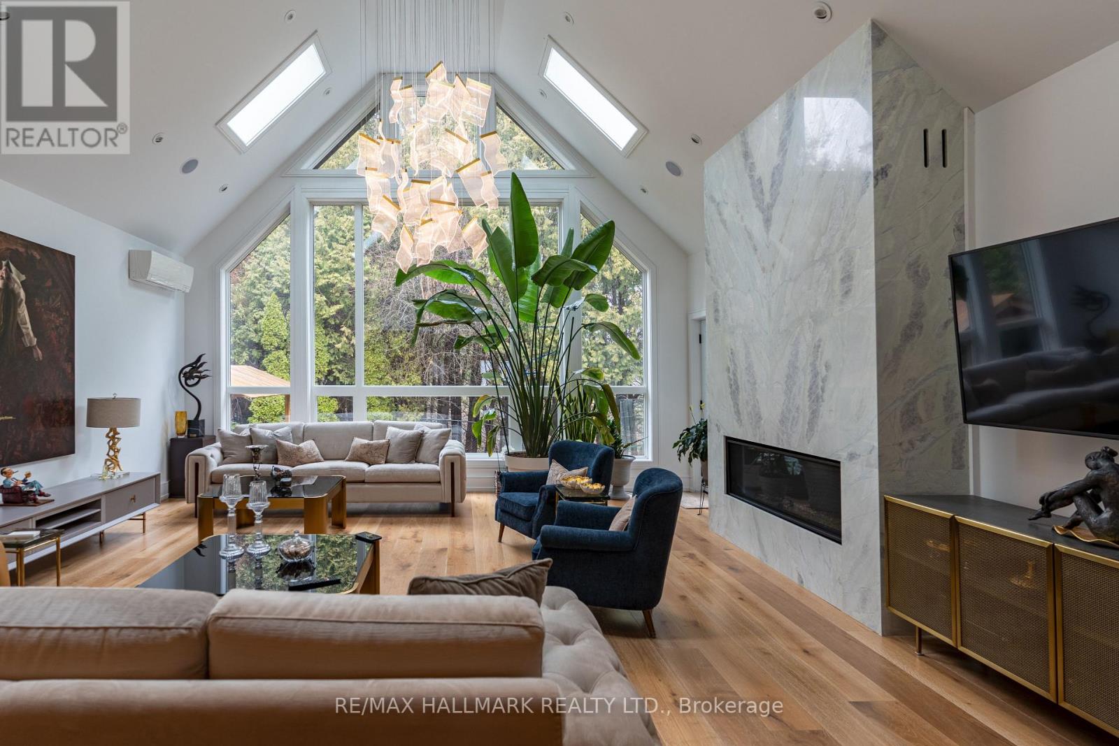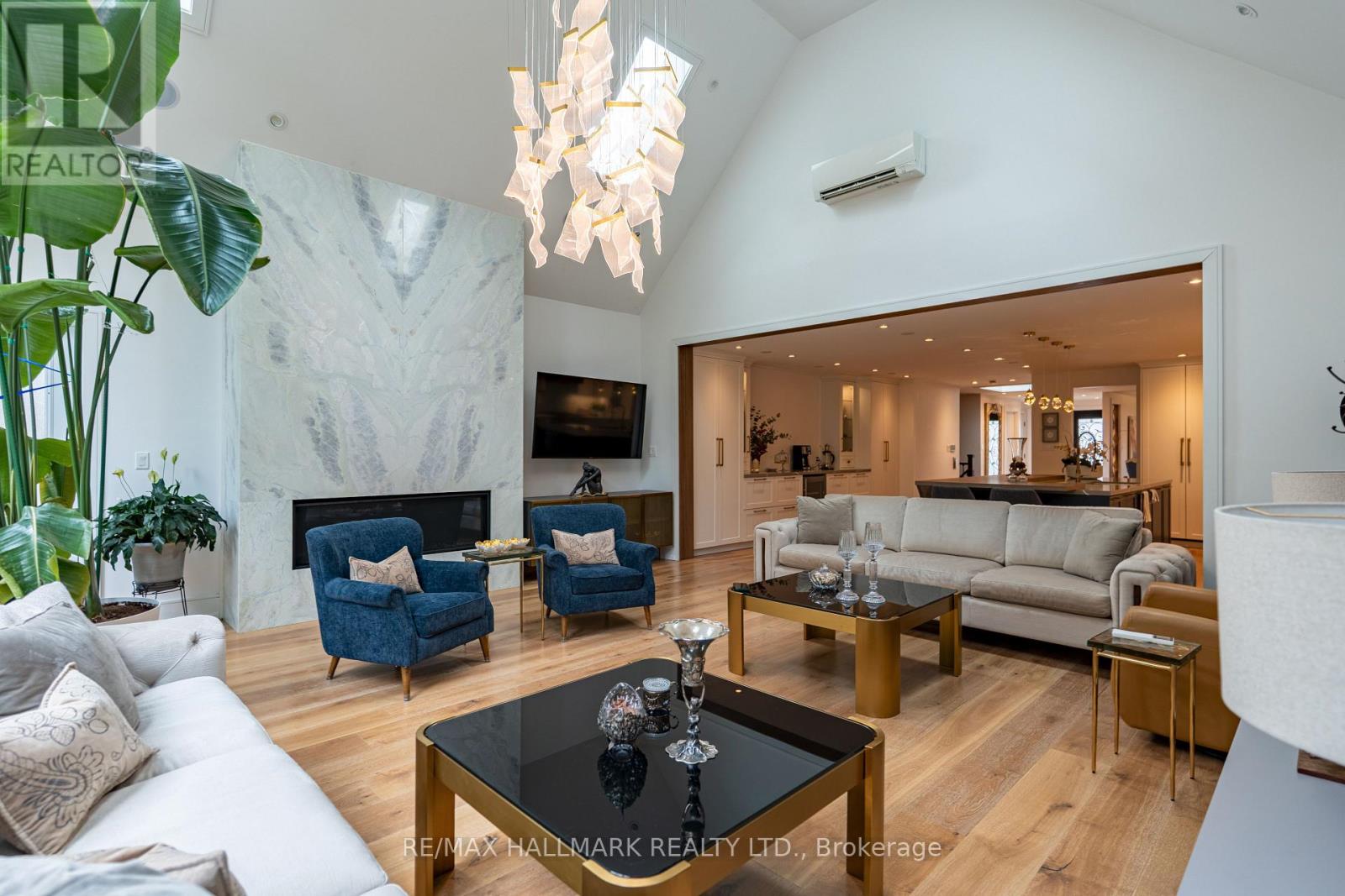 Stunning fully renovated bungalow on a premium ravine lot in one of Aurora's most sought-after neighbourhoods! Offering approx. 2,500 sq ft of open-concept living on the main floor, this home combines modern luxury with a peaceful natural setting.Featuring soaring ceilings in the family room with 5 skylights, filling the space with natural light. A recent addition expands both the family room and the primary bedroom, creating a bright, airy layout ideal for everyday living and entertaining. Extensively upgraded with high-quality finishes throughout, including Canadian-made engineered flooring. Gourmet kitchen equipped with built-in appliances, featuring 2 built-in fridges and 2 built-in dishwashers on the main floor-perfect for large families or hosting-plus an additional fridge and dishwasher in the finished basement. Major system upgrades include brand new electrical wiring, plumbing, spray foam insulation, drains, roof, flashing, doors, windows, stairs, and railings, offering peace of mind and true turnkey living. Home is equipped with a built-in sound system and multiple heat pump units (2 in family room, 1 in primary bedroom) for efficient climate control. Over $30K invested in solar panel system, providing energy efficiency and long-term savings.Enjoy ultimate privacy with a beautiful ravine backyard-wake up to the soothing sounds of nature every morning. Ideally located close to top-rated schools, parks, trails, and all amenities. A rare turnkey opportunity offering space, quality upgrades, and an unbeatable location! (id:64974)
