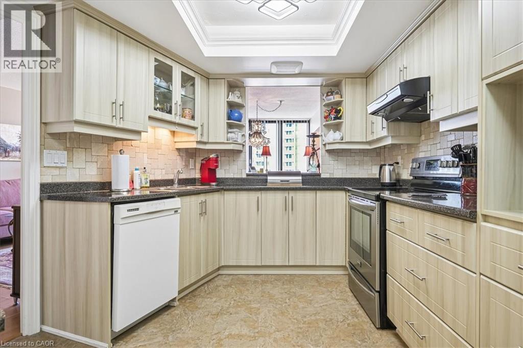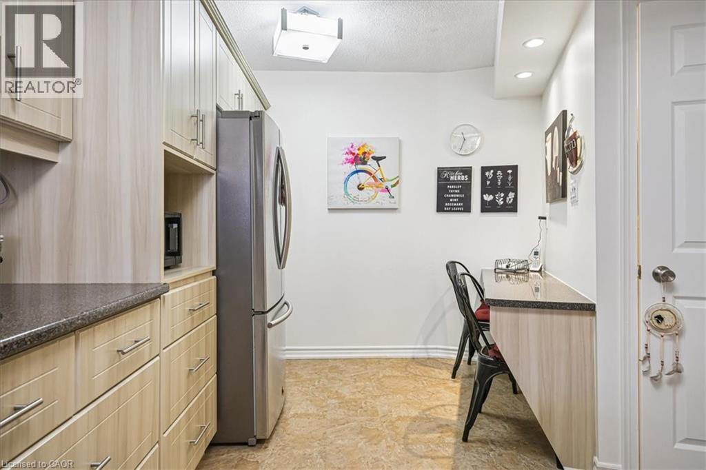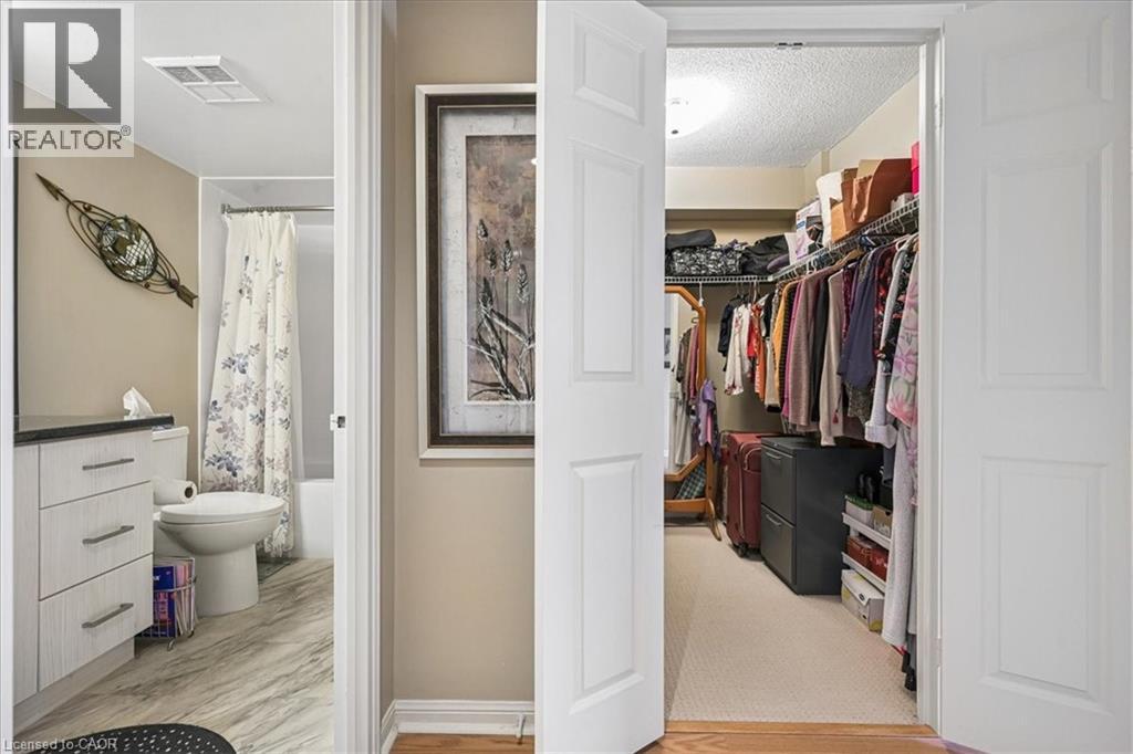 Welcome to Sovereign II Condos, a quiet and well-maintained building nestled on a serene cul-de-sac in the highly sought-after College Park neighbourhood of Oakville. Surrounded by nature, with Oakville Park and the scenic McCraney Valley Trail just steps away, this location offers the perfect blend of peaceful living and everyday convenience. Enjoy walking distance to Sheridan College and Oakville Place, with easy access to major highways and the Oakville GO Station-ideal for commuters. The nearby Uptown Core offers an abundance of shopping, dining and essential amenities.Residents enjoy a full suite of premium amenities including an indoor pool, fitness centre, sauna, hot tub and a stylish party room.This spacious and sun-filled Countess model offers approximately 1,231 sq. ft. of beautifully updated living space, featuring 2 bedrooms, 2 bathrooms and a versatile den. A wall of west-facing windows fills the suite with natural light, creating a bright and inviting atmosphere. The thoughtfully updated interior includes modern flooring, renovated bathrooms and a refined kitchen complete with under-cabinet lighting, melamine countertops, pot drawers, a pantry, breakfast bar and stainless steel appliances.The generous living and dining areas are perfect for both everyday living and entertaining, while the glass-enclosed den provides an ideal space for a home office or cozy retreat. The spacious primary bedroom features a walk-in closet and a stylish 4-piece ensuite, complemented by a second bedroom and updated 3-piece bath.Complete with in-suite laundry, underground parking and a storage locker, this exceptional condo offers comfort, style and an unbeatable Oakville lifestyle. (id:64974)