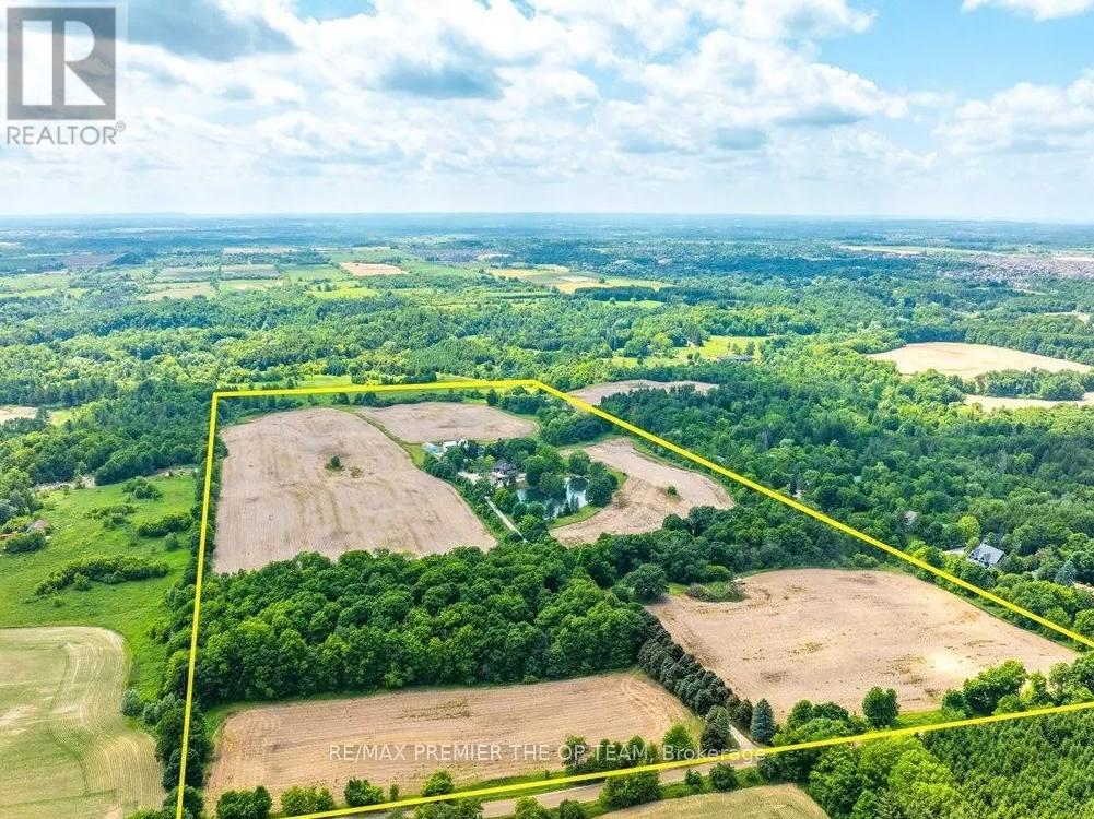 Welcome to the ultra rare opportunity at 12490 Mill Road in King City. This magnificent estate offers 86.4 spectacular acres on the prestigious boundary of Vaughan, just south of King Road. This property unfolds a distinguished estate masterclass in privacy and scale. A Grand gated entrance with a tree-lined drive to a 4-bedroom brick home overlooking a pond & pool. Farmed acreage for Favourable tax status. Large barn, steel-sided driveshed, and 5-car garages. Mill Road paving planned this year (2026) Large, contiguous parcels of this caliber, particularly along the Vaughan boundary-rarely seldom become available. 1 Acre aeriated pond. (id:64974)