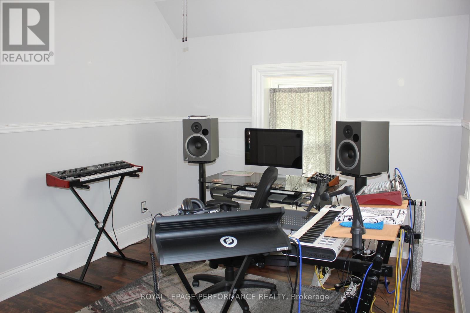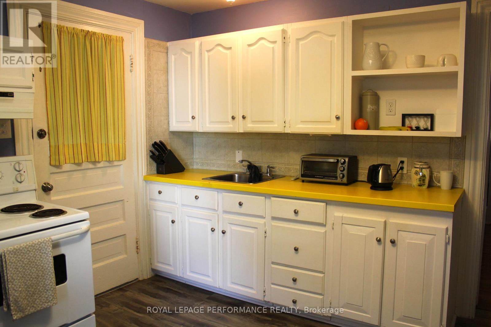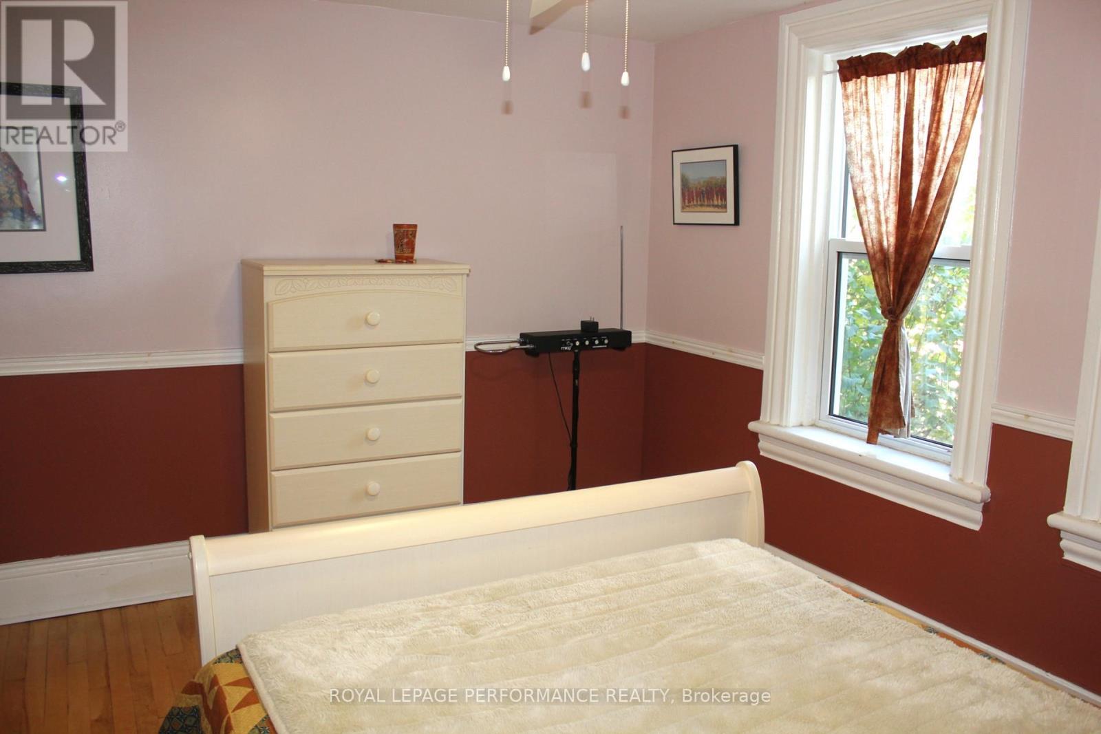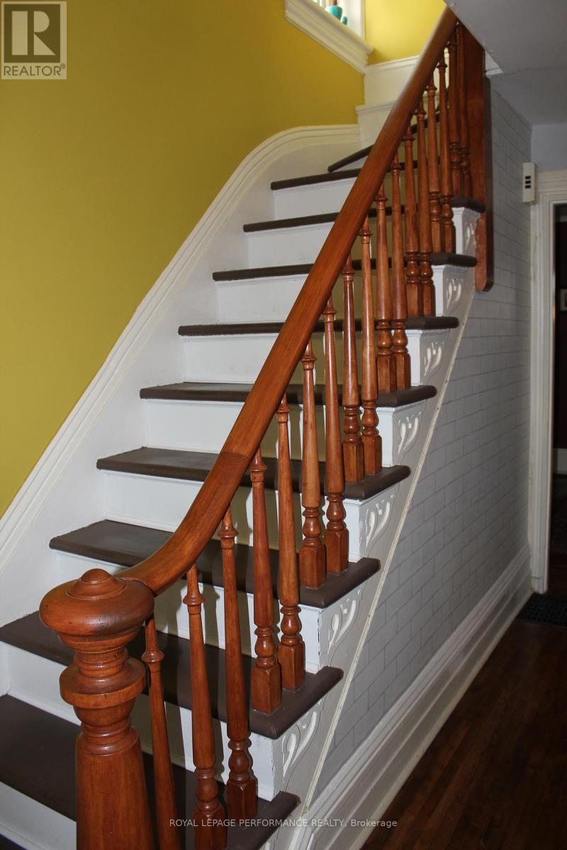 This well-maintained, two-story home is filled with charm and history. Enjoy downtown living with all its amenities in this affordable family home. As you enter, you're greeted by a generous, enclosed front porch, perfect for removing coats and boots. The bright living room features a large window and ornate details, including a division between the living room and dining room. The home boasts original and beautifully inlaid hardwood floors throughout both levels. The sunny kitchen includes laundry facilities and a door leading to the back porch and backyard. Upstairs, a refinished and stunning staircase leads to the second level, which offers three bedrooms with ample windows and a four-piece bathroom. The private lot is fully fenced and includes a detached garage, as well as a quaint side and backyard. (id:64974)