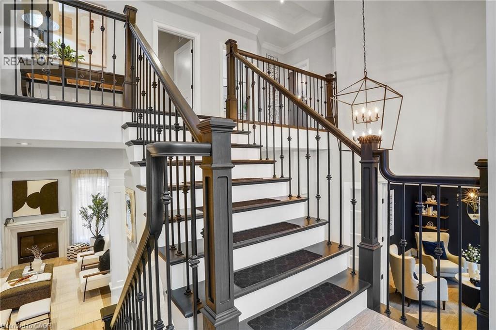Custom. Expansive. Elevated. Welcome to 125 Central Drive — custom-built in 2017, set on a 60 x 117 ft lot in one of Ancaster’s most desirable neighbourhoods. Spanning over 3,200 sq. ft., this home has been extensively enhanced and now offers 6 bedrooms and 5 bathrooms. The open-concept main floor is anchored by a gas fireplace, coffered ceilings, and rich hardwood flooring. A welcoming foyer and den flow seamlessly into the kitchen, complete with oversized porcelain tile, premium appliances, ample storage and a pantry. A mudroom with garage access and a powder room add convenience, while sliding doors extend the living space to a private backyard setting. Upstairs, the primary suite features a spa-inspired 5-piece ensuite. Three additional bedrooms, a 5-piece bathroom, a 3-piece bath, and laundry complete the upper level. The professionally finished basement adds two additional bedrooms, a full bathroom, and three egress windows, — ideal for large families or multigenerational living. This home is moments from top-rated schools, parks, trails, and everyday amenities — offering a lifestyle that is both connected and refined. (id:64974)