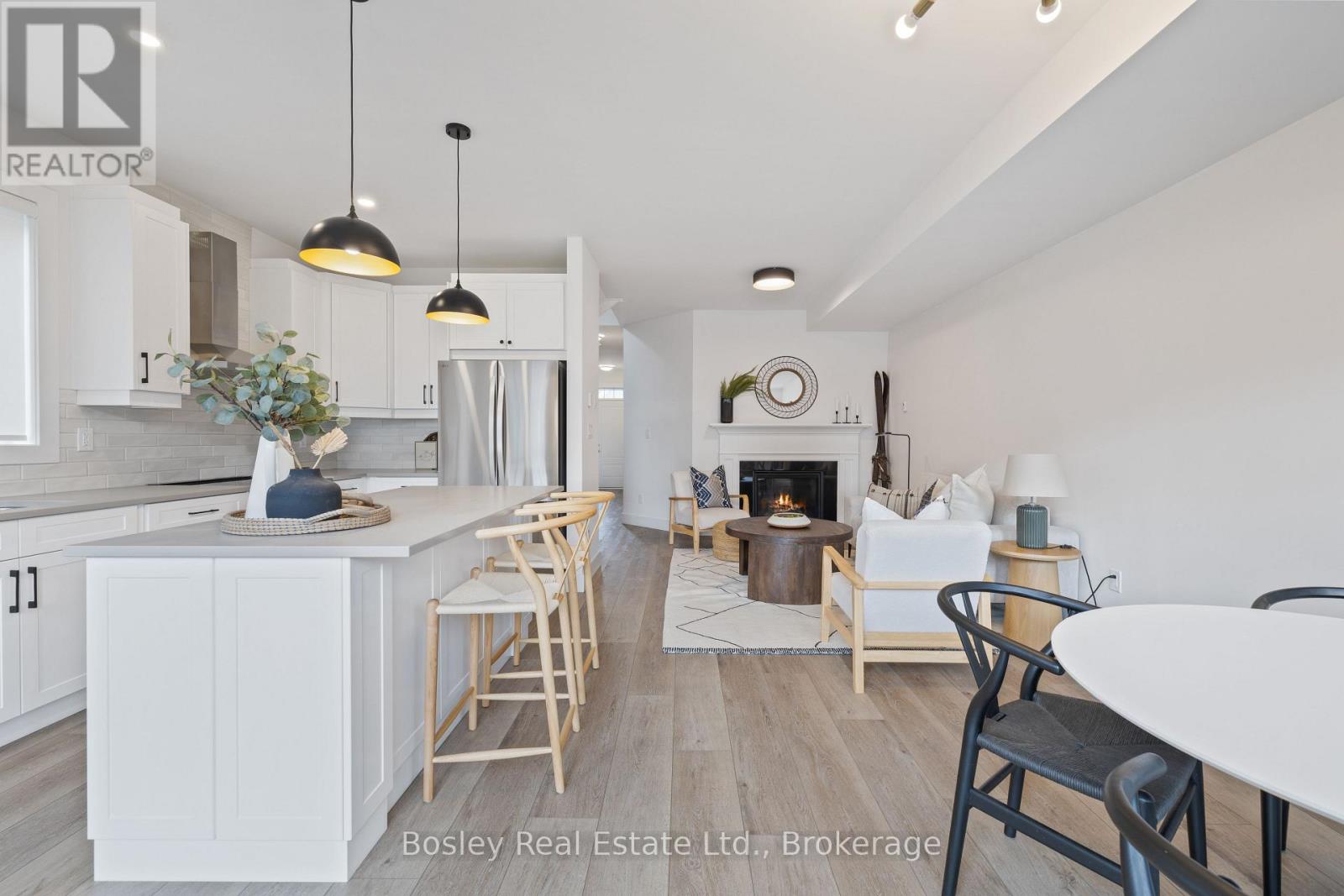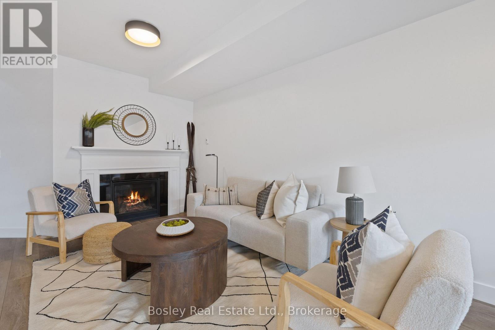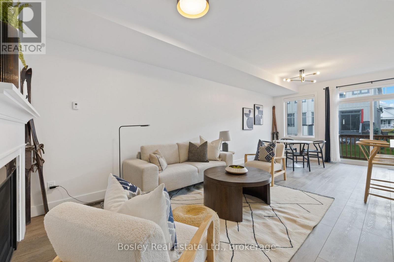 Experience the breathtaking panoramic views of the mountain landscape as you approach, and let the stresses of the day dissipate. The main floor boasts an open-concept design flooded with natural light streaming through expansive windows, revealing captivating mountain vistas for sunset enjoyment. The kitchen, a haven for entertainers, features a generously sized custom island, pendant lighting, and exquisite cabinetry offering ample storage.As daylight gives way to evening, the ambiance transforms into a bright and inviting atmosphere, enhanced by potlights and the warmth of a gas fireplace. Upstairs, discover three bedrooms, a laundry room, and two bathrooms, including a stunning owner's suite with a 4-piece ensuite. The finished basement adds convenience with an additional 3-piece bathroom and showcases quality craftsmanship. Immerse yourself in a community that embraces the diverse offerings of the four-season playground, with easy access to a private clubhouse featuring an outdoor pool, hot tub, sauna, gym, and a lodge with an outdoor fireplace. A short stroll to Blue Mountain Village and a quick drive to downtown Collingwood and Georgian Bay make 125 Courtland the ideal home for those seeking a vibrant community surrounded by the beauty of nature. (id:64974)