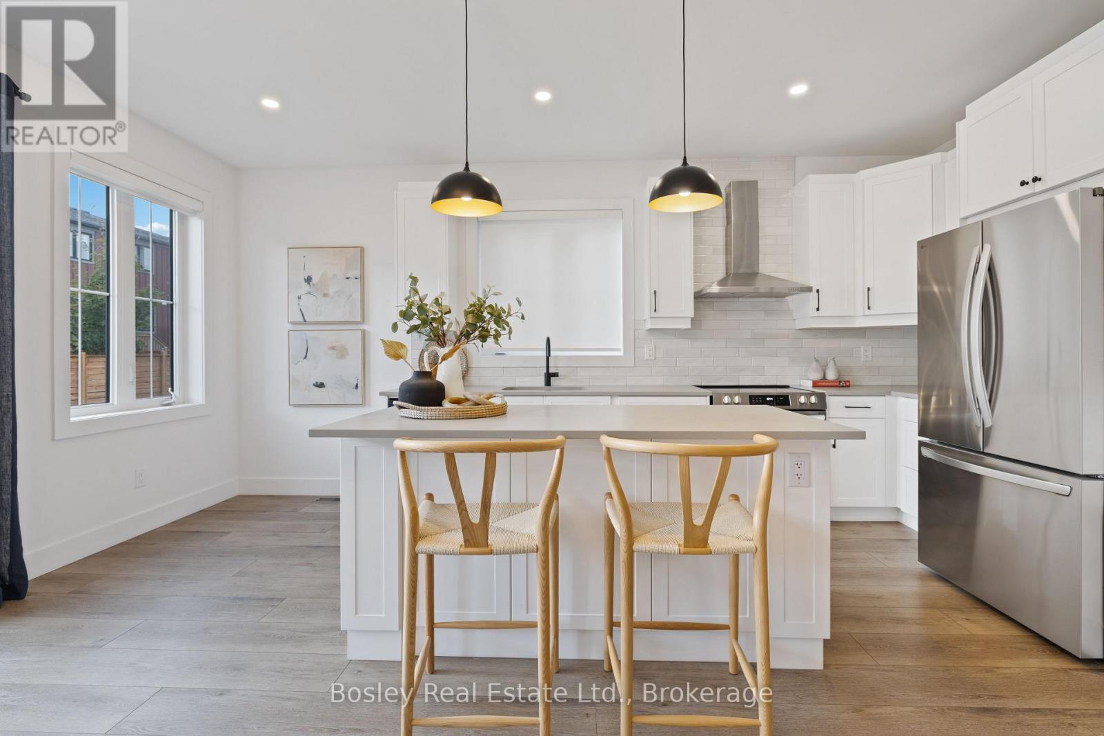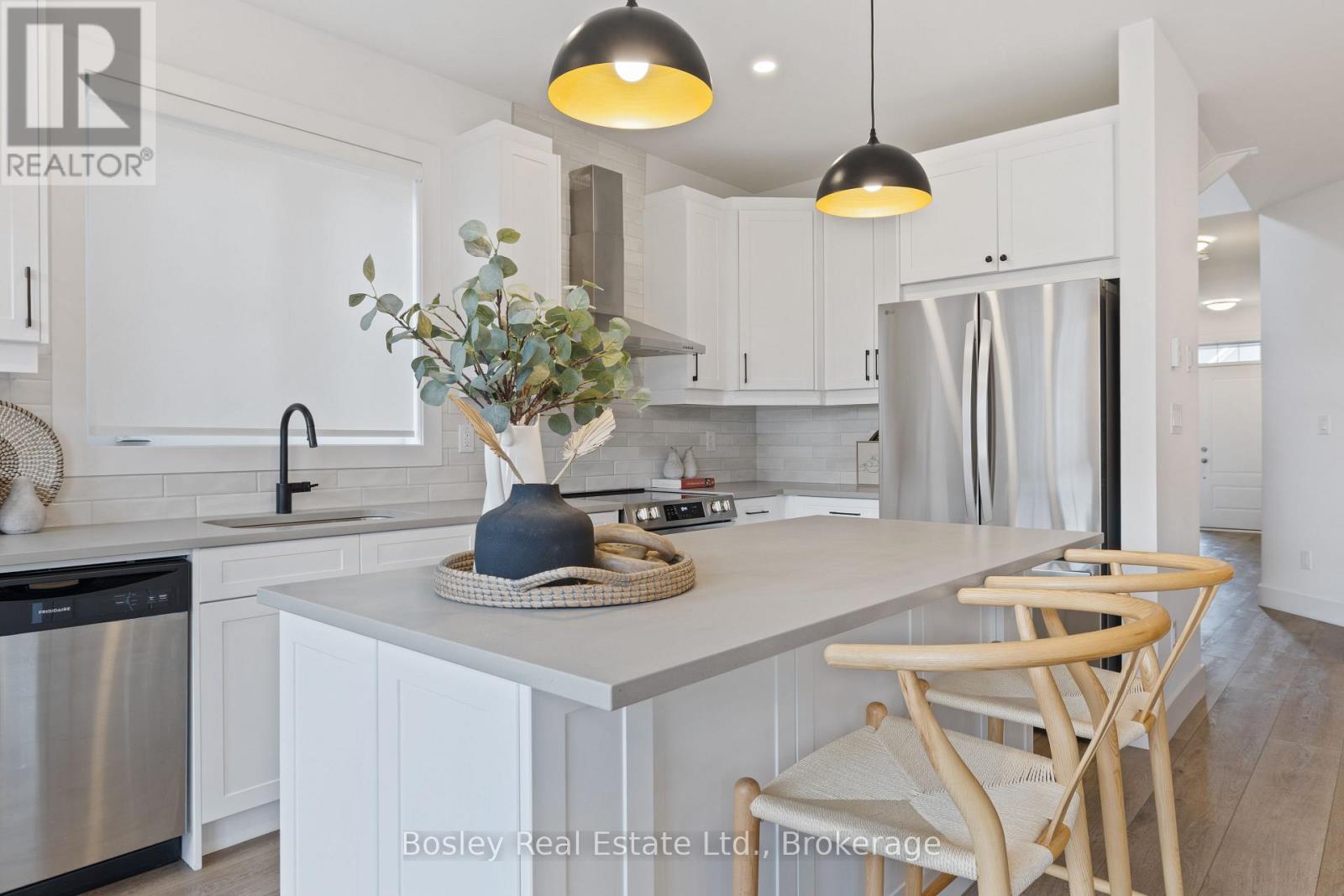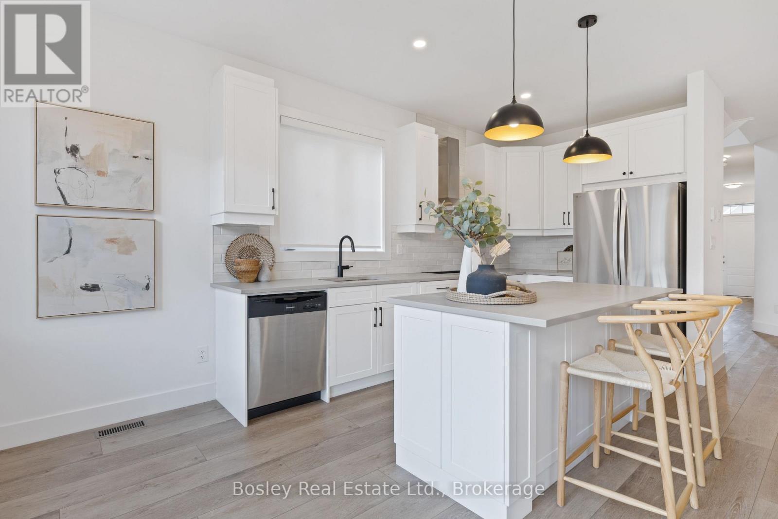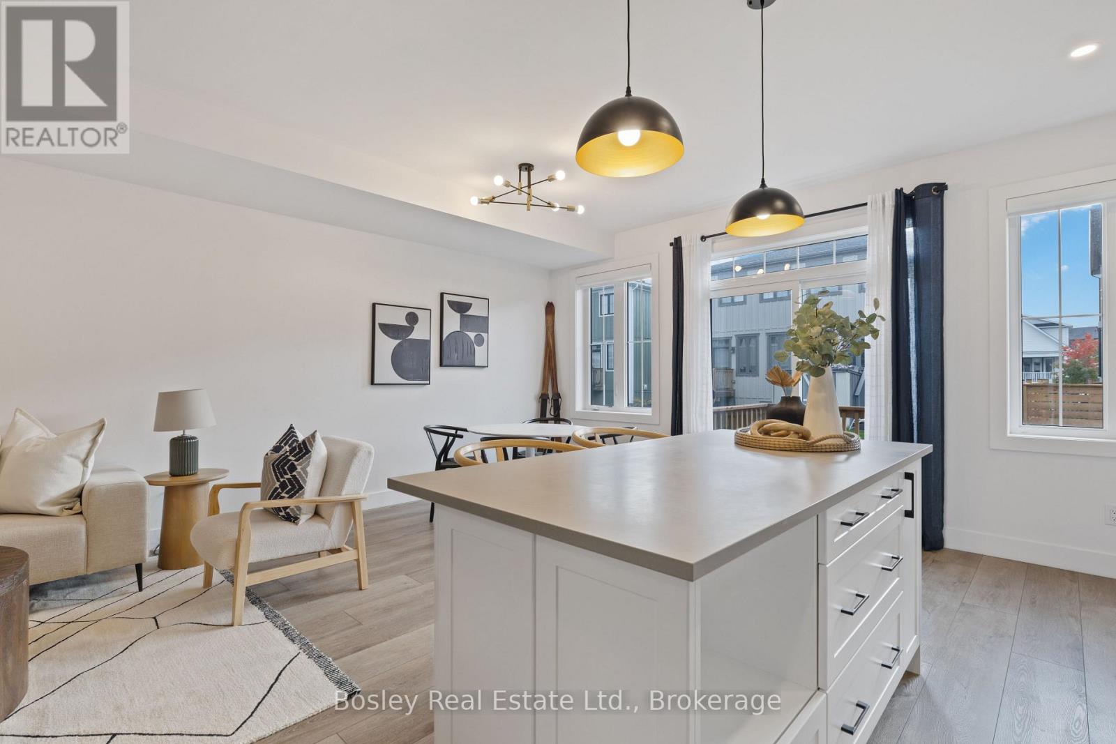 Experience the breathtaking panoramic views of the mountain landscape as you approach, and let the stresses of the day dissipate. The main floor boasts an open-concept design flooded with natural light streaming through expansive windows, revealing captivating mountain vistas for sunset enjoyment. The kitchen, a haven for entertainers, features a generously sized custom island, pendant lighting, and exquisite cabinetry offering ample storage.As daylight gives way to evening, the ambiance transforms into a bright and inviting atmosphere, enhanced by potlights and the warmth of a gas fireplace. Upstairs, discover three bedrooms, a laundry room, and two bathrooms, including a stunning owner's suite with a 4-piece ensuite. The finished basement adds convenience with an additional 3-piece bathroom and showcases quality craftsmanship. Immerse yourself in a community that embraces the diverse offerings of the four-season playground, with easy access to a private clubhouse featuring an outdoor pool, hot tub, sauna, gym, and a lodge with an outdoor fireplace. A short stroll to Blue Mountain Village and a quick drive to downtown Collingwood and Georgian Bay make 125 Courtland the ideal home for those seeking a vibrant community surrounded by the beauty of nature. (id:64974)