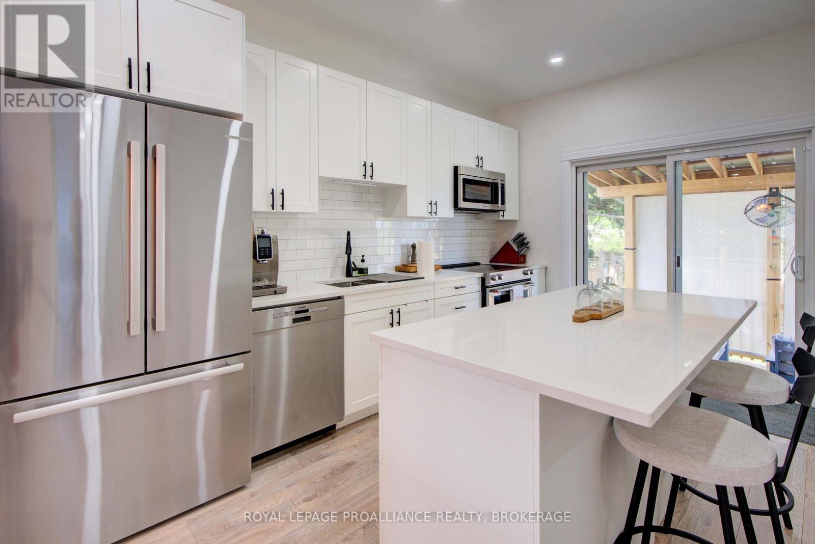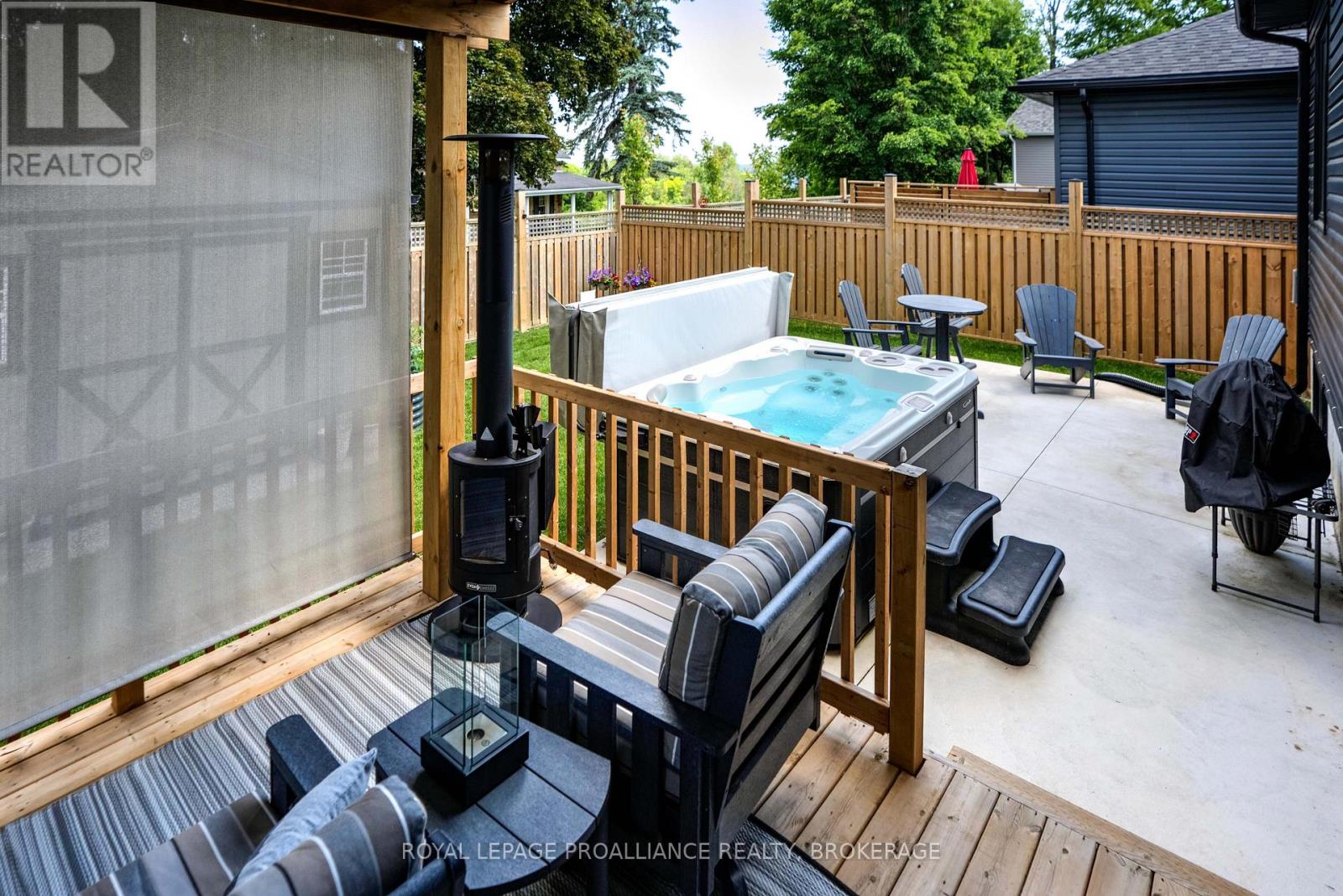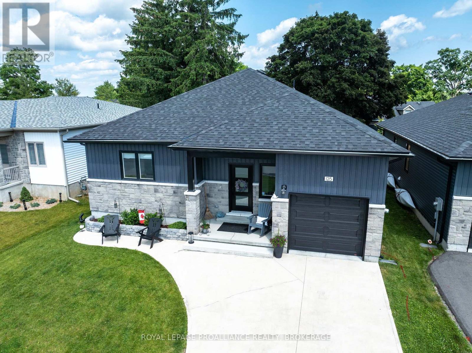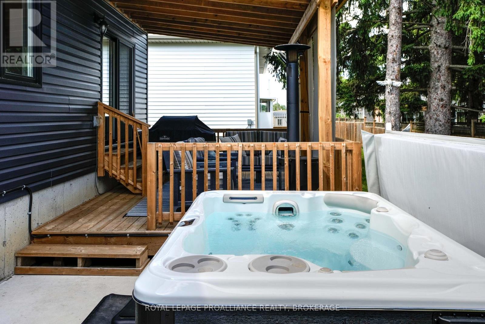 Welcome to 125 Maplecroft Court! This beautiful rare find in Gananoque is 3 years young, with 2800 sqft of fully finished living space on 2 levels and loaded with upgrades and features that are sure to impress. Upon entry, the spacious foyer with porcelain floors is a warm welcome and leads to an open concept living room, dining room and kitchen with centre island. 3 generous sized bedrooms, 2 full baths (primary bedroom has a gorgeous ensuite and walk-in closet) and a convenient laundry area complete the main floor. Downstairs offers a 850 sqft rec room, 3rd full bath, utility room and loads of storage. A patio door off the kitchen leads to a private deck covered by a hard top roof and features privacy screens, cooling fans and heaters for colder weather enjoyment. The deck leads to a grade level patio with a hot tub. Views of the St. Lawrence River from the rear yard. Many wonderful features like quality flooring (carpet free home), quartz countertops, high end stainless kitchen appliances, high efficient gas heating, central air, garage is insulated and dry walled, double wide concrete drive, new front flower gardens, and also offers further coverage under the Tarion New Home Warranty that will be transferred to the new owner. Located in the east end of Gananoque and is walking distance to all amenities this lovely community has to offer. An easy 30 minute commute to CFB Kingston, downtown Kingston and Brockville. Nothing to do but enjoy and now is the time to spoil yourself! (id:64974)