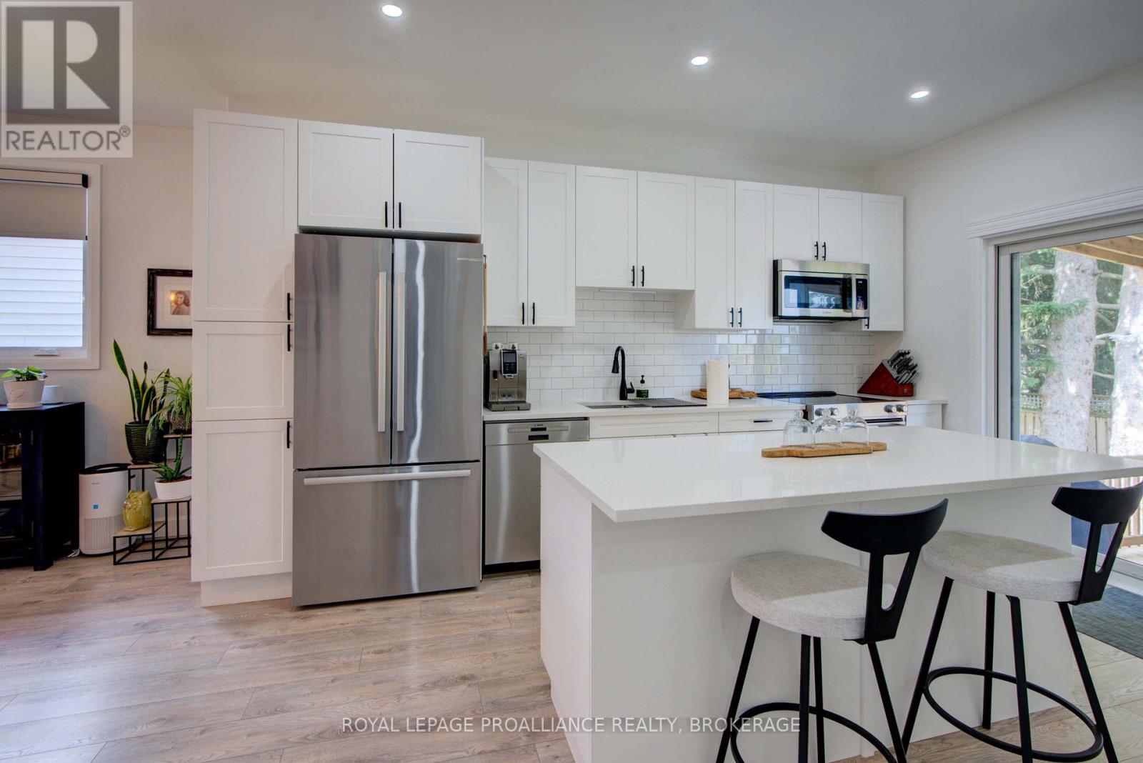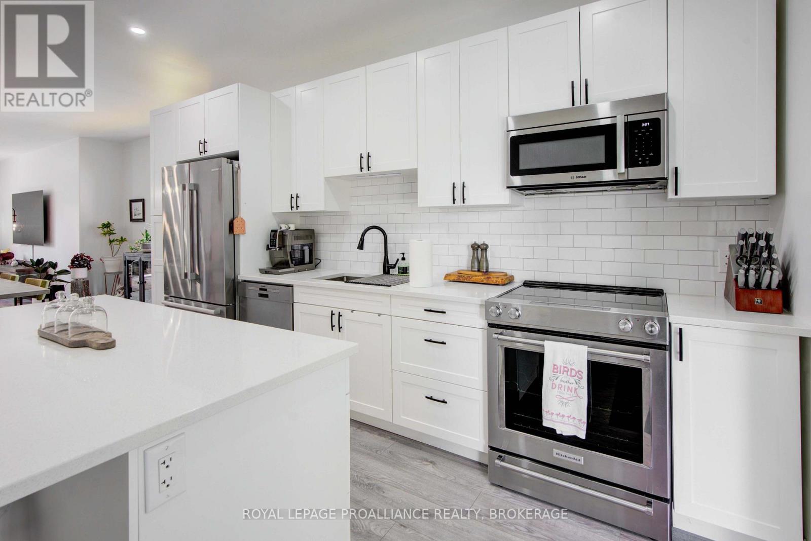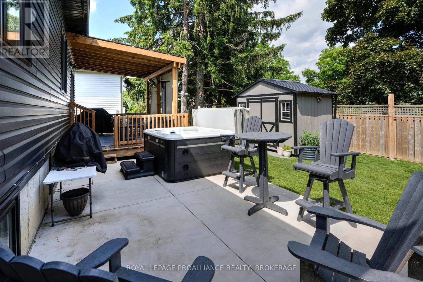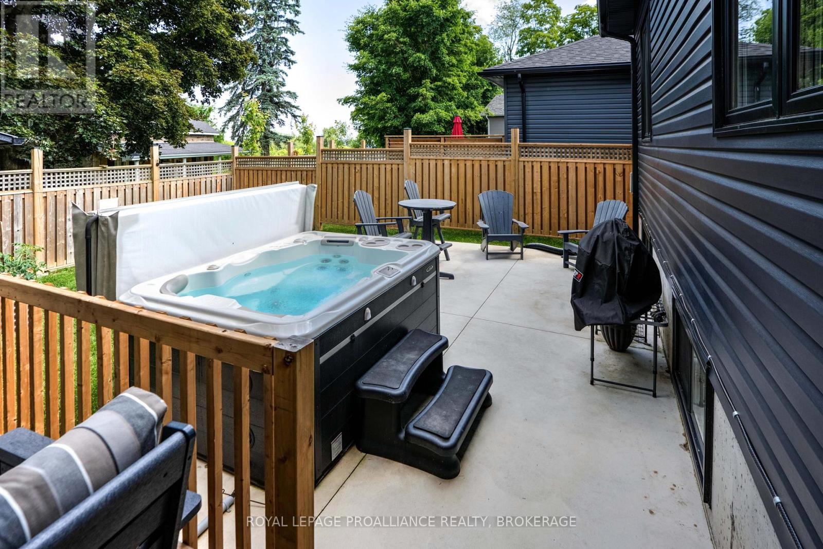 Welcome to 125 Maplecroft Court! This beautiful rare find in Gananoque is 3 years young, with 2800 sqft of fully finished living space on 2 levels and loaded with upgrades and features that are sure to impress. Upon entry, the spacious foyer with porcelain floors is a warm welcome and leads to an open concept living room, dining room and kitchen with centre island. 3 generous sized bedrooms, 2 full baths (primary bedroom has a gorgeous ensuite and walk-in closet) and a convenient laundry area complete the main floor. Downstairs offers a 850 sqft rec room, 3rd full bath, utility room and loads of storage. A patio door off the kitchen leads to a private deck covered by a hard top roof and features privacy screens, cooling fans and heaters for colder weather enjoyment. The deck leads to a grade level patio with a hot tub. Views of the St. Lawrence River from the rear yard. Many wonderful features like quality flooring (carpet free home), quartz countertops, high end stainless kitchen appliances, high efficient gas heating, central air, garage is insulated and dry walled, double wide concrete drive, new front flower gardens, and also offers further coverage under the Tarion New Home Warranty that will be transferred to the new owner. Located in the east end of Gananoque and is walking distance to all amenities this lovely community has to offer. An easy 30 minute commute to CFB Kingston, downtown Kingston and Brockville. Nothing to do but enjoy and now is the time to spoil yourself! (id:64974)