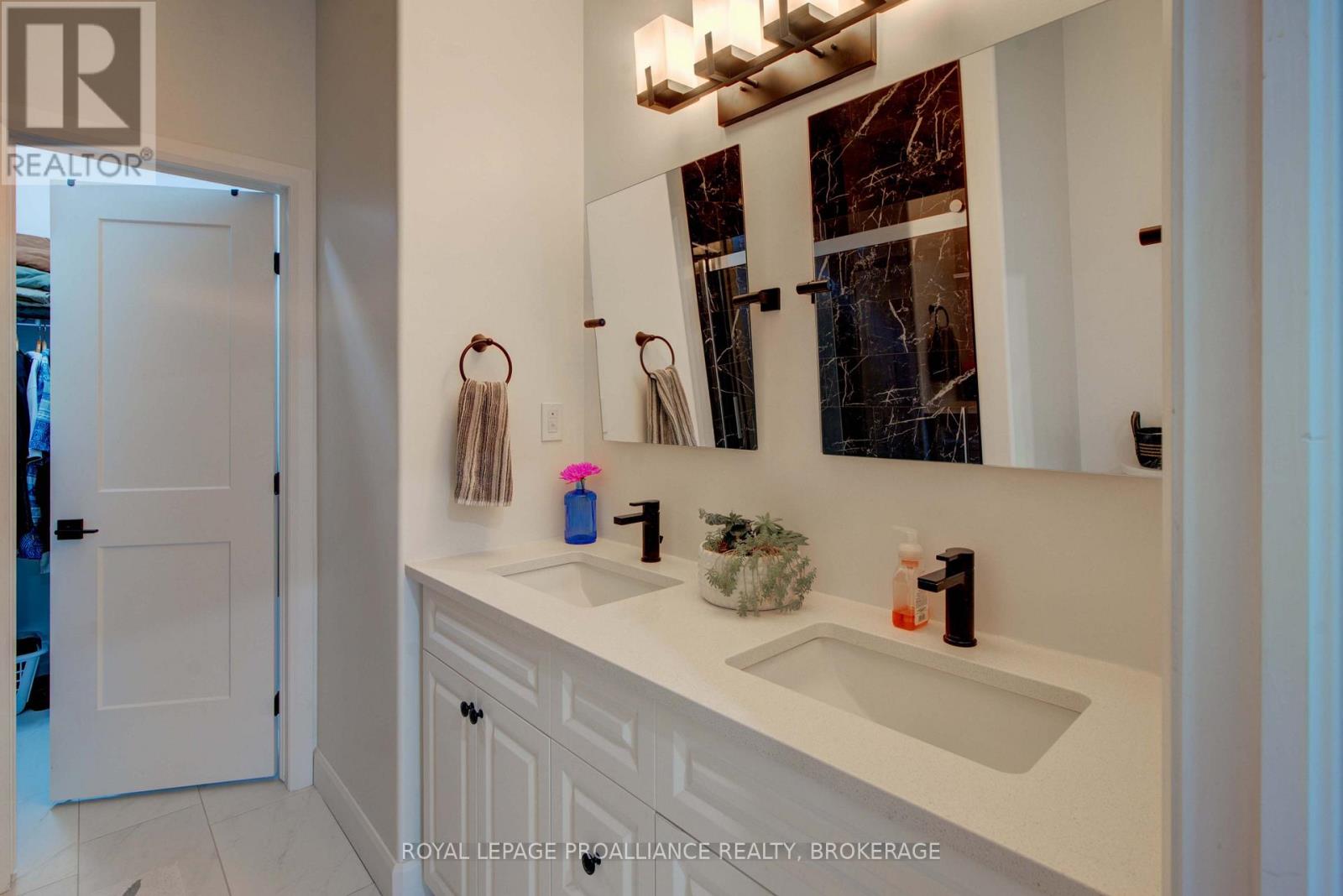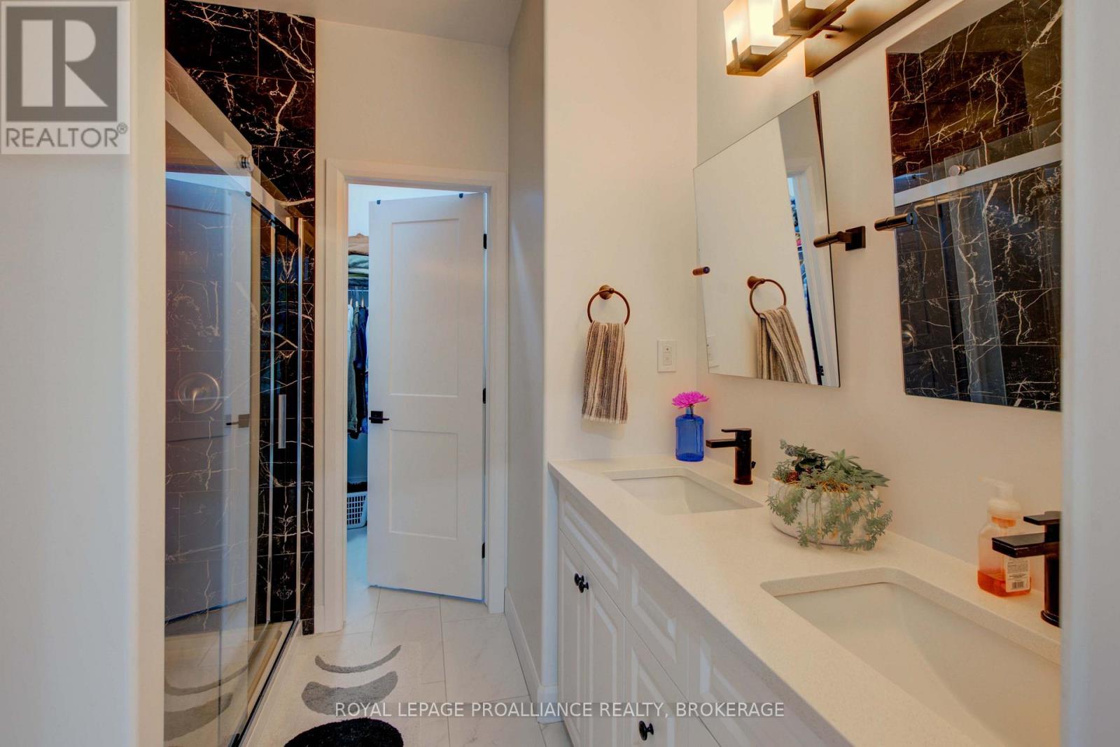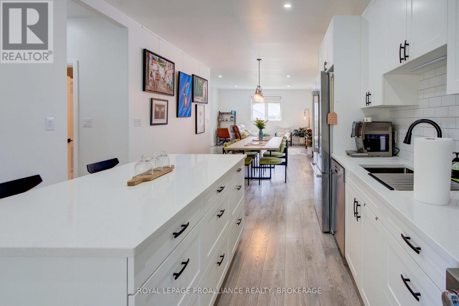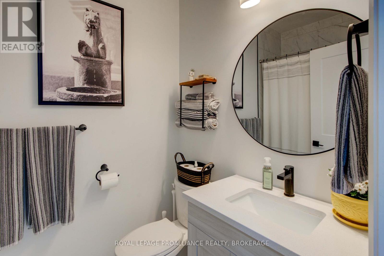 Welcome to 125 Maplecroft Court! This beautiful rare find in Gananoque is 3 years young, with 2800 sqft of fully finished living space on 2 levels and loaded with upgrades and features that are sure to impress. Upon entry, the spacious foyer with porcelain floors is a warm welcome and leads to an open concept living room, dining room and kitchen with centre island. 3 generous sized bedrooms, 2 full baths (primary bedroom has a gorgeous ensuite and walk-in closet) and a convenient laundry area complete the main floor. Downstairs offers a 850 sqft rec room, 3rd full bath, utility room and loads of storage. A patio door off the kitchen leads to a private deck covered by a hard top roof and features privacy screens, cooling fans and heaters for colder weather enjoyment. The deck leads to a grade level patio with a hot tub. Views of the St. Lawrence River from the rear yard. Many wonderful features like quality flooring (carpet free home), quartz countertops, high end stainless kitchen appliances, high efficient gas heating, central air, garage is insulated and dry walled, double wide concrete drive, new front flower gardens, and also offers further coverage under the Tarion New Home Warranty that will be transferred to the new owner. Located in the east end of Gananoque and is walking distance to all amenities this lovely community has to offer. An easy 30 minute commute to CFB Kingston, downtown Kingston and Brockville. Nothing to do but enjoy and now is the time to spoil yourself! (id:64974)
