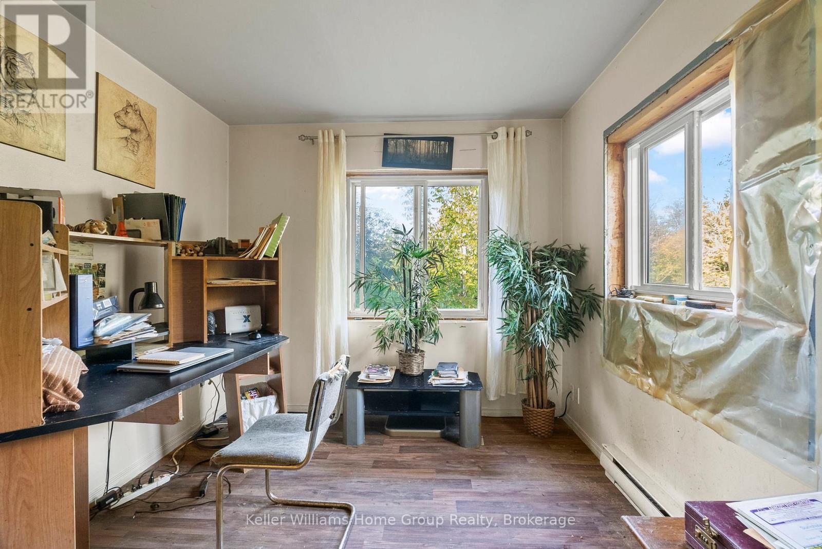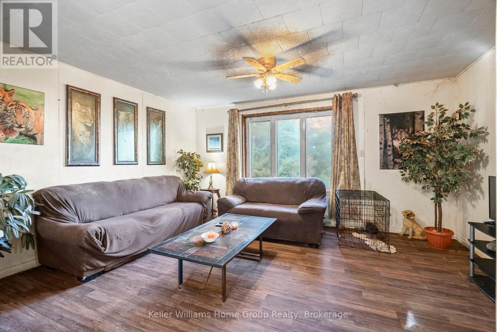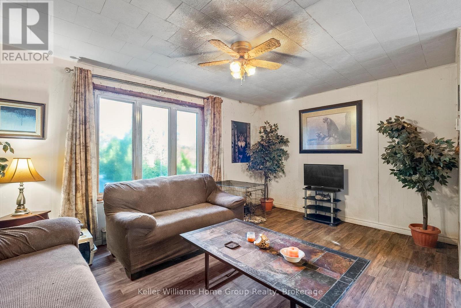 Country Home or Cottage Retreat on 25 Beautiful Acres. Embrace the tranquility of nature in this raised bungalow, set on 25 acres featuring a mix of open land and mature trees. Follow the trail to a secluded meadow that extends to the back of the property to more trails, perfect for family gatherings or a quiet escape from the bustle of town. With a barn, garage, and even a sugar shack, there's plenty of space for storage, hobbies or outdoor adventures. Garden lovers will enjoy apple and pear trees, strawberries, and mor, an ideal canvas to cultivate your green thumb. Inside, the spacious foyer welcomes you to the lower level, complete with recreation room, den, 2 piece bath, and convenient main level laundry. Upstairs the open concept kitchen, dining and living areas showcase peaceful treed views. Step out onto the balcony for BBQs and entertaining. This home offers great potential for families or anyone looking to add their person touch. Recent updates include new exterior siding, Roxul insulation on both levels, some new doors and windows, new woodstove, and basement drywall. Ideally located close to Wiarton, Sauble Beach, and Owen Sound. (id:64974)